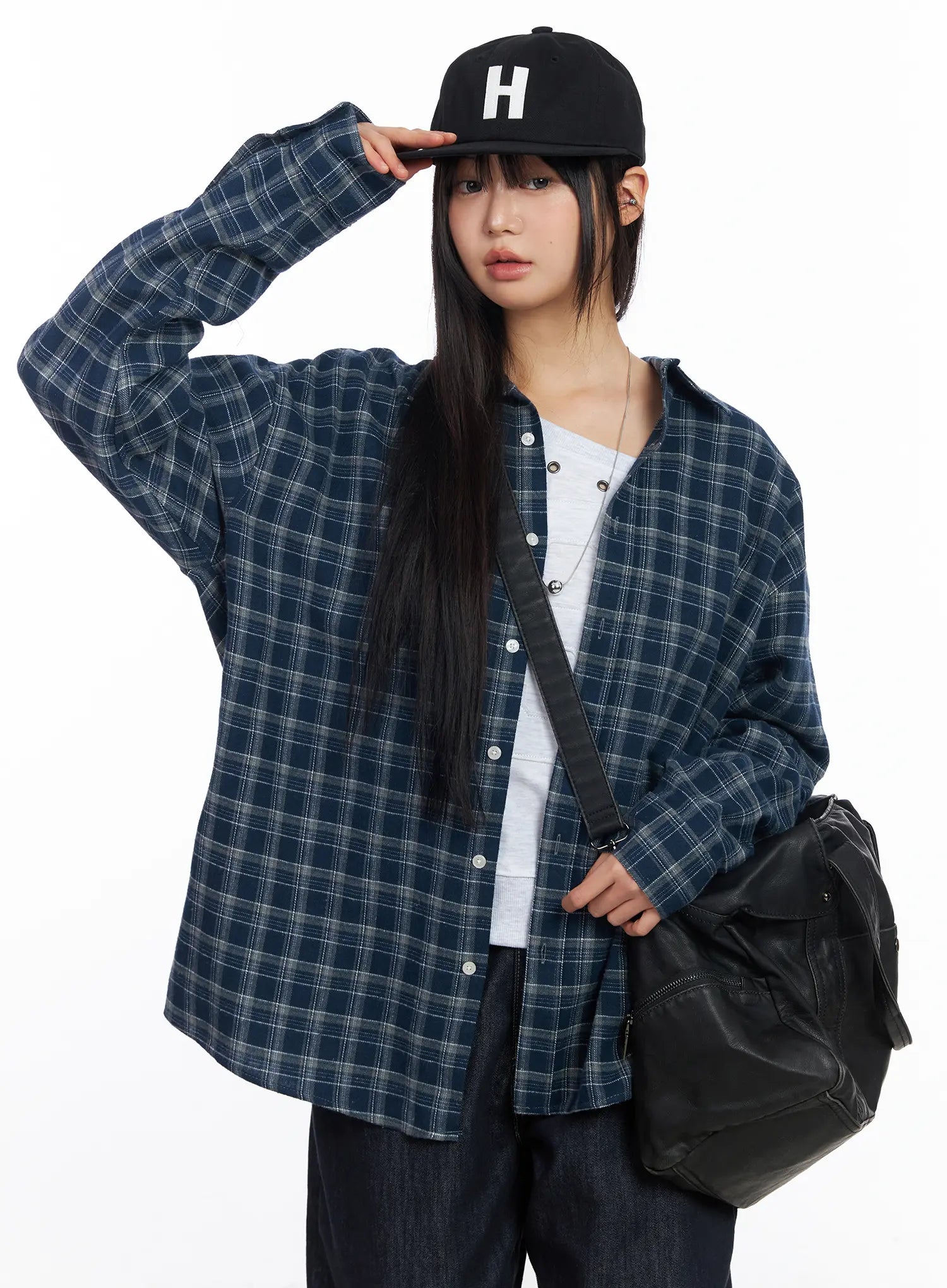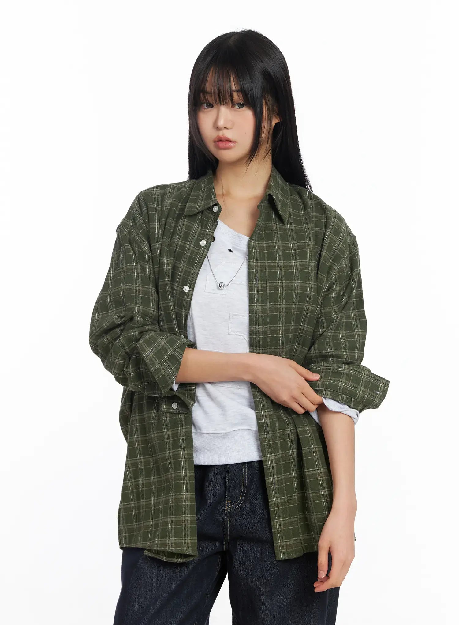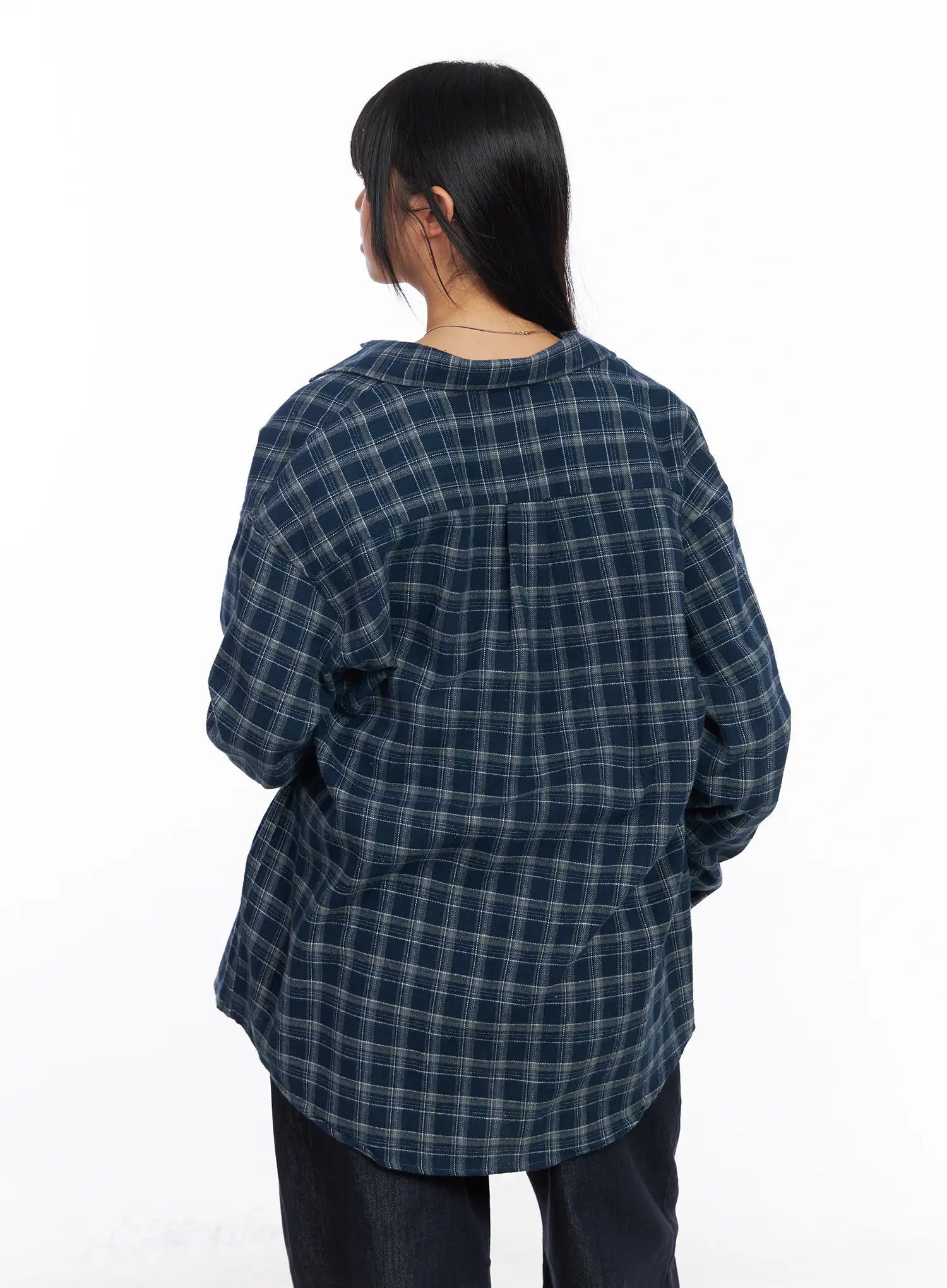 Oversized Plaid Flannel Button-Up Shirt CF504