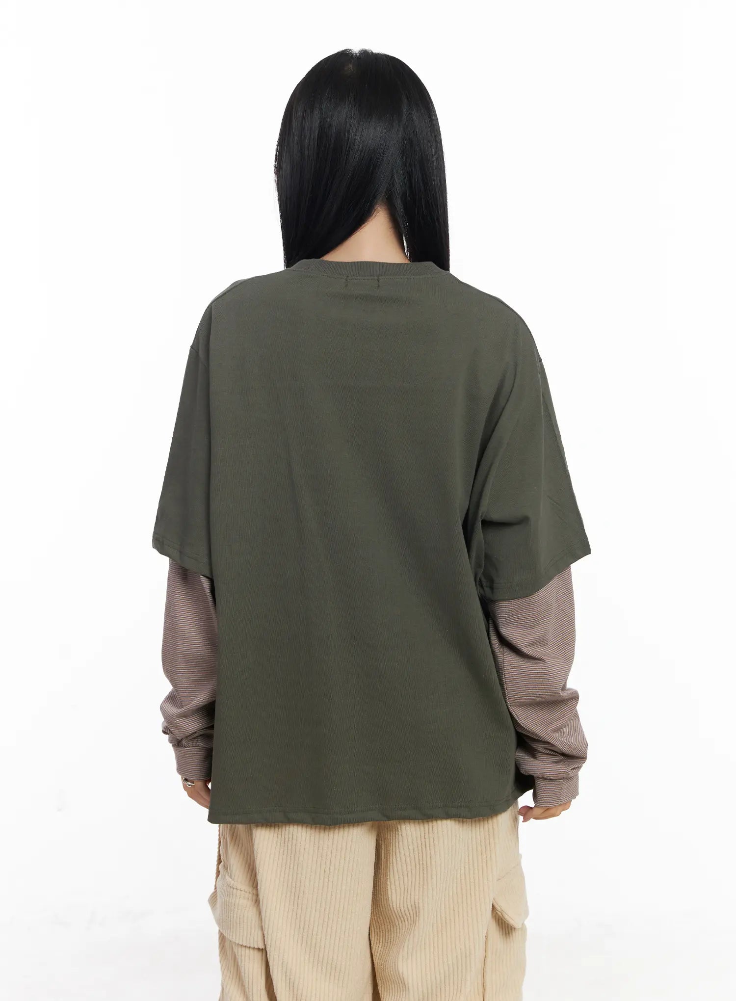 Oversized Star Print Layered Long Sleeve Tee CJ514