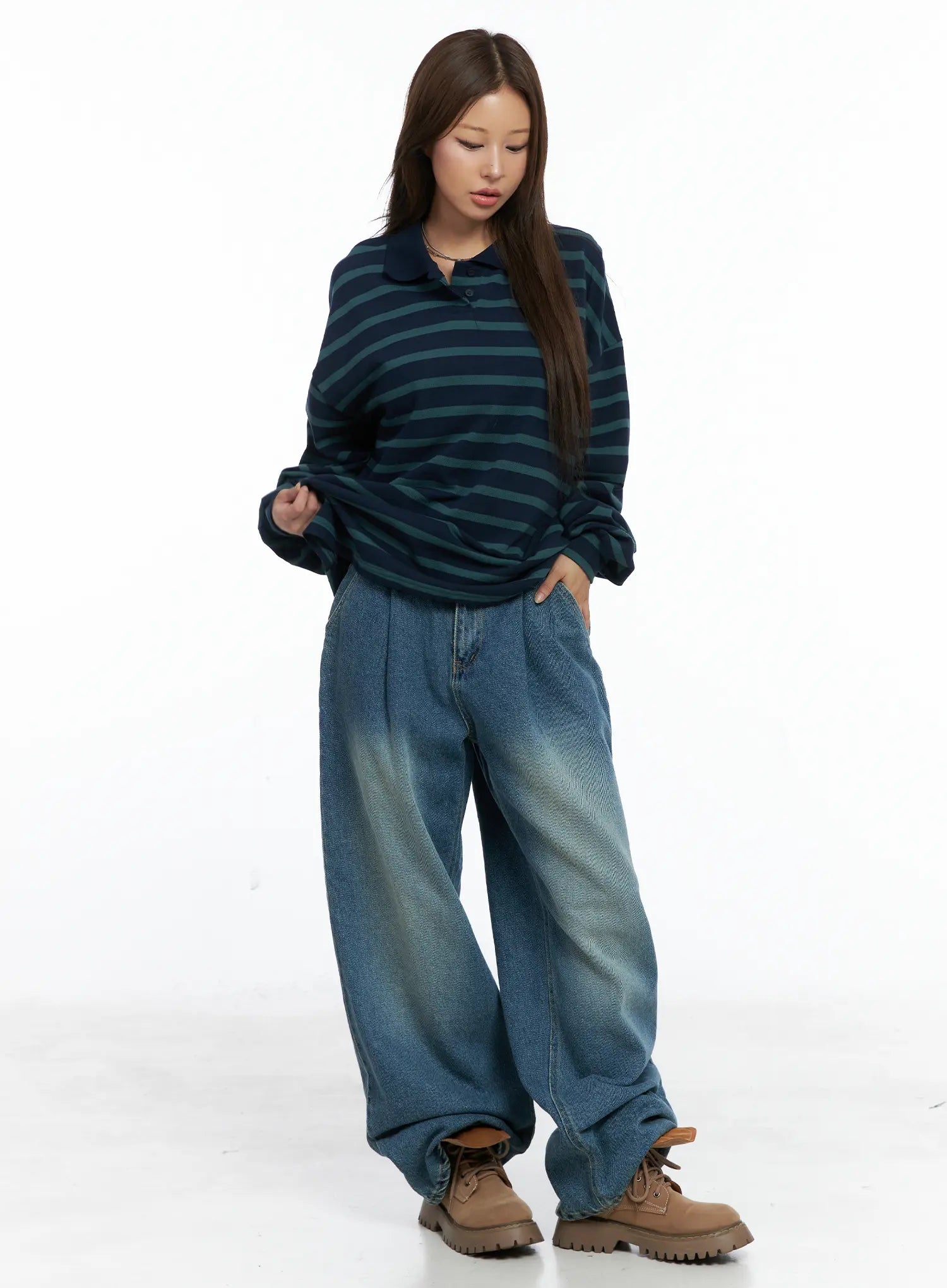 Oversized Striped Collar Long-Sleeve Tee CS504