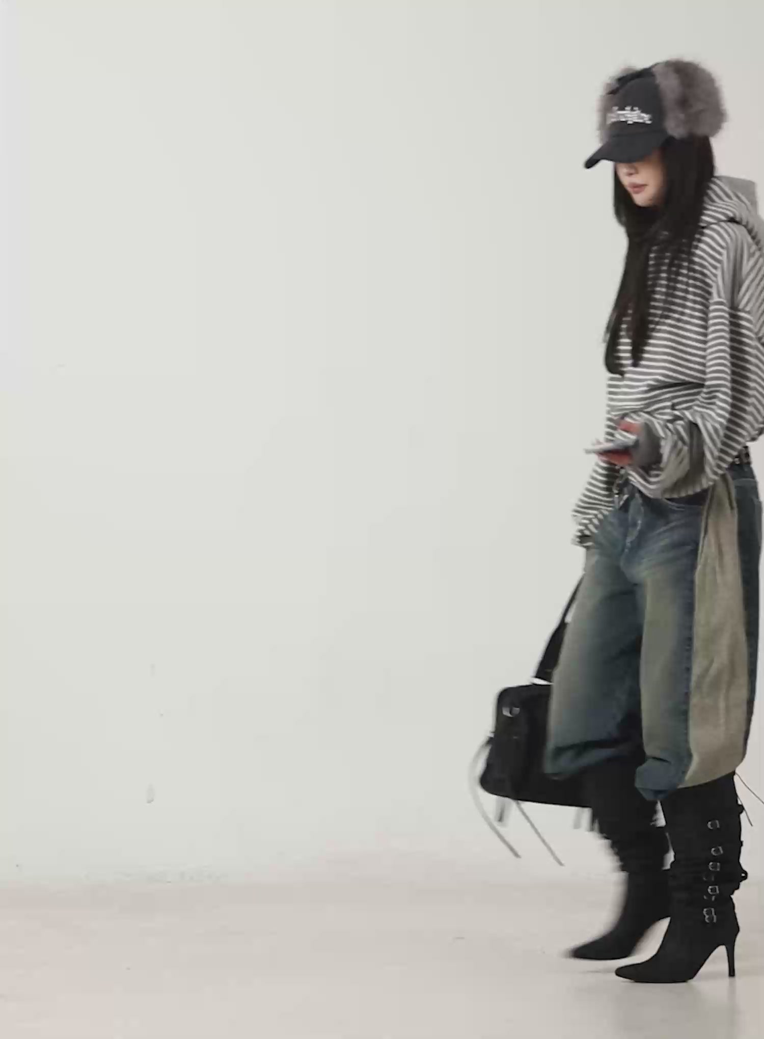 Oversized Striped Fleece Hoodie CD505