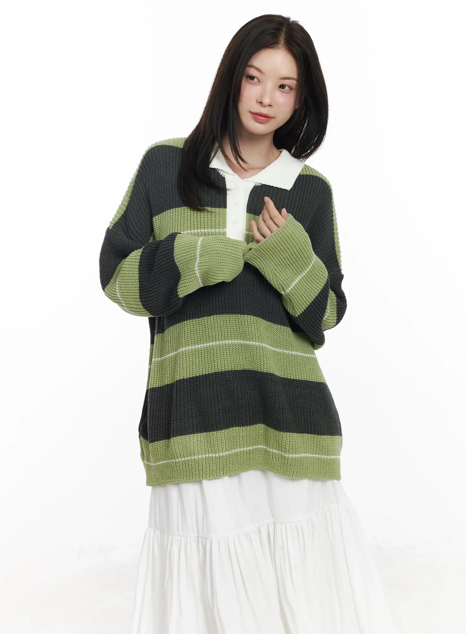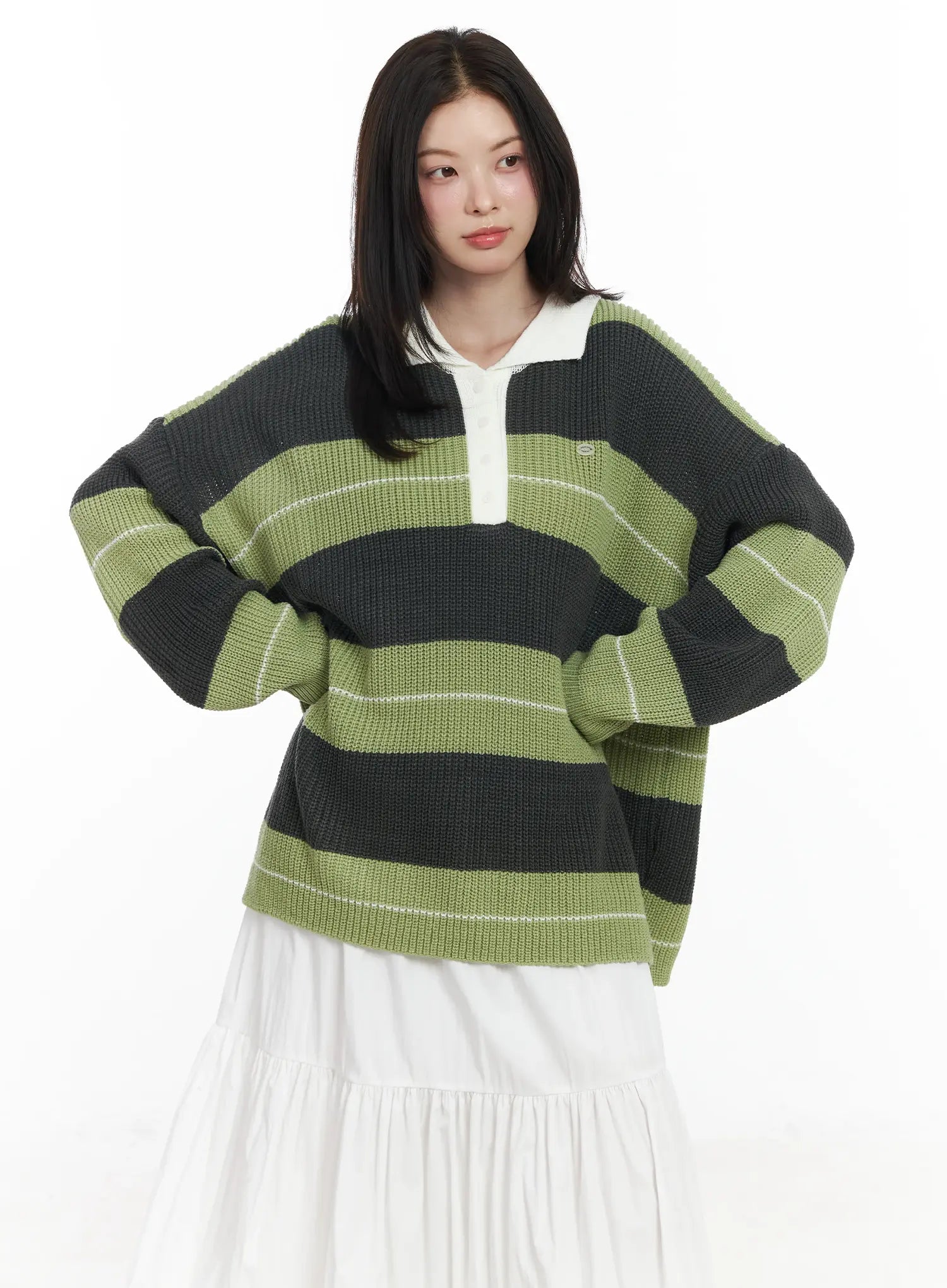 Oversized Striped Knit Pullover Sweater IF520