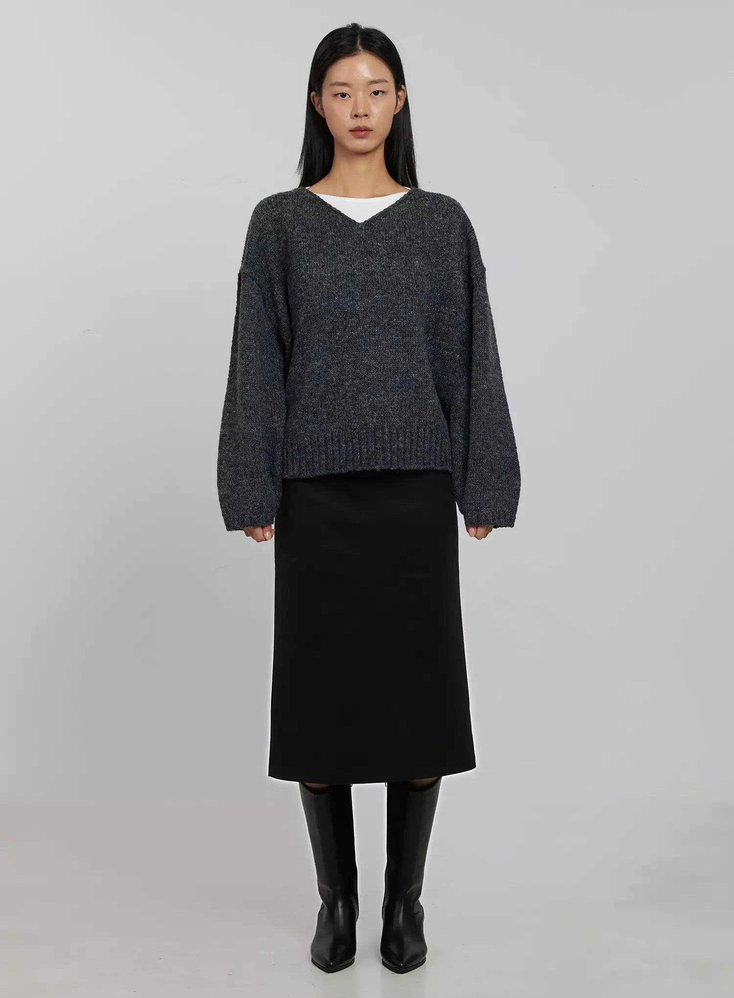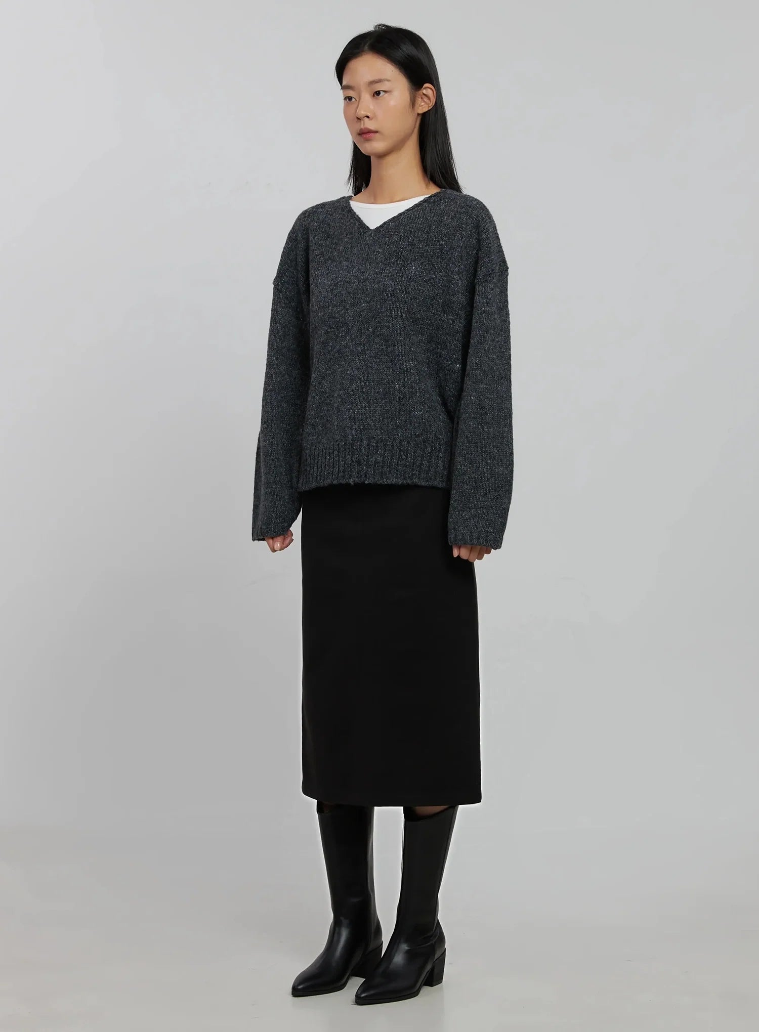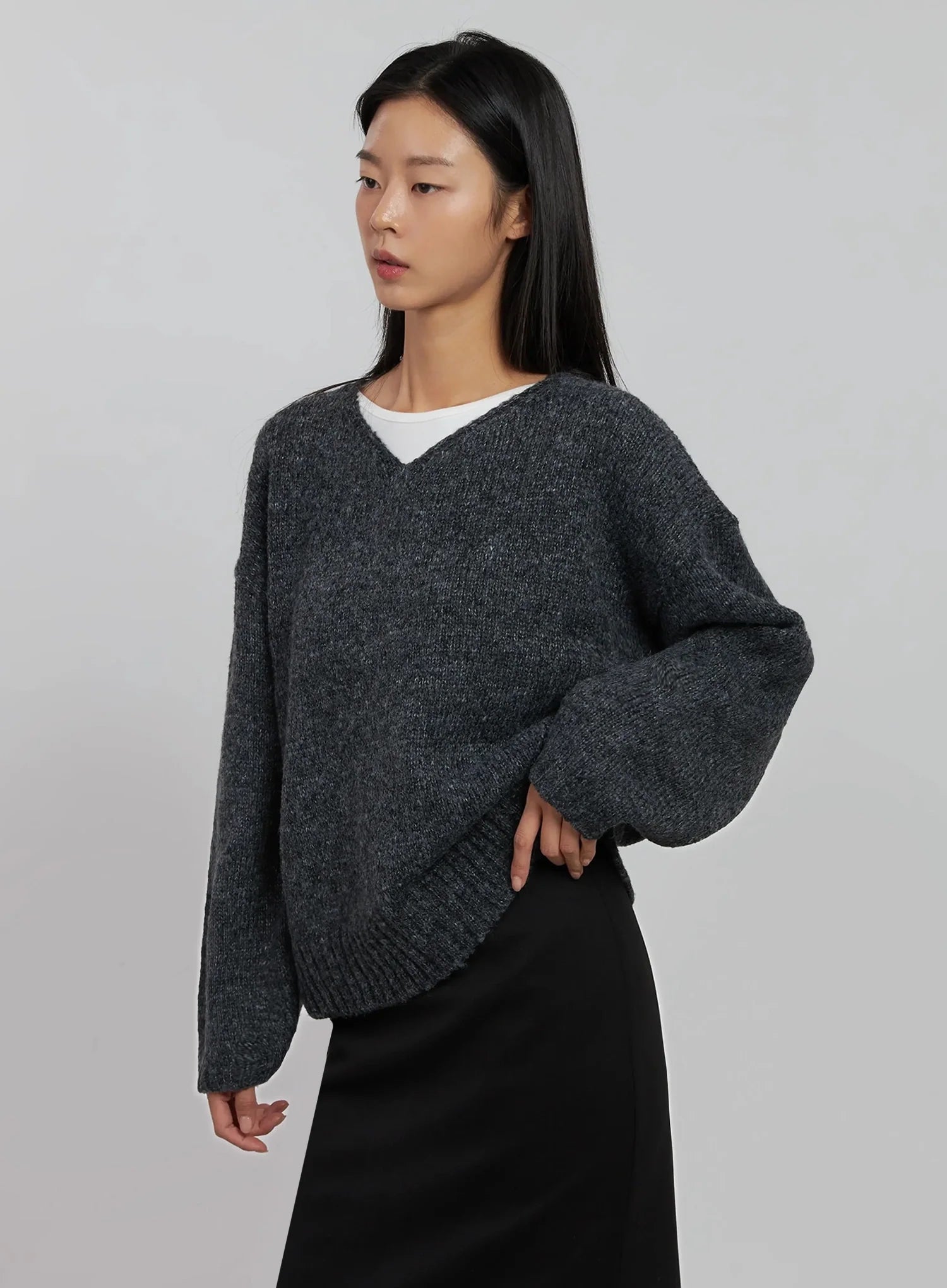 Oversized V-Neck Knit Top IJ508