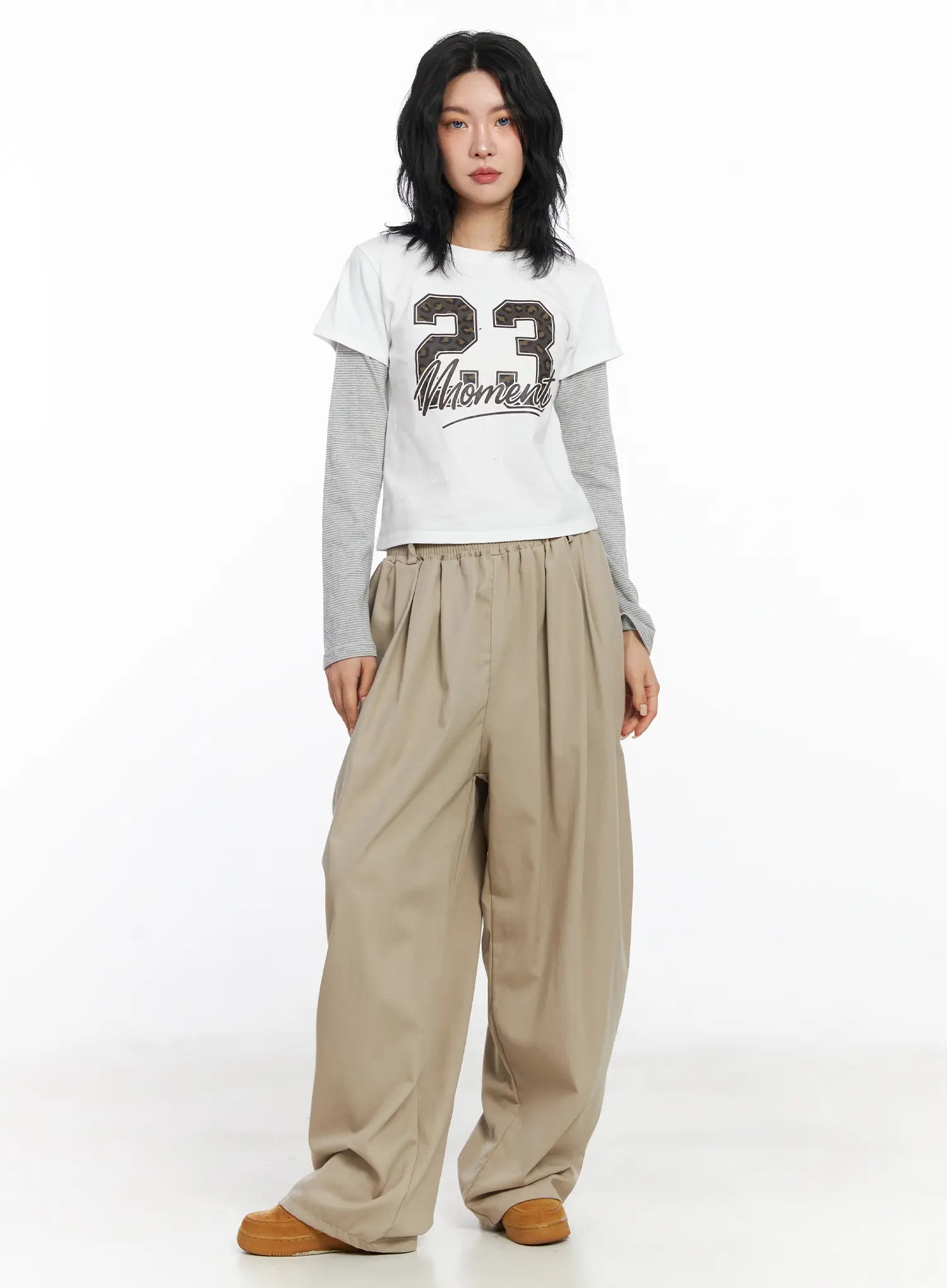 Pin Tuck Wide Leg Balloon Pants CJ523
