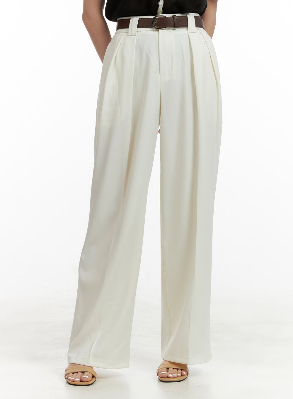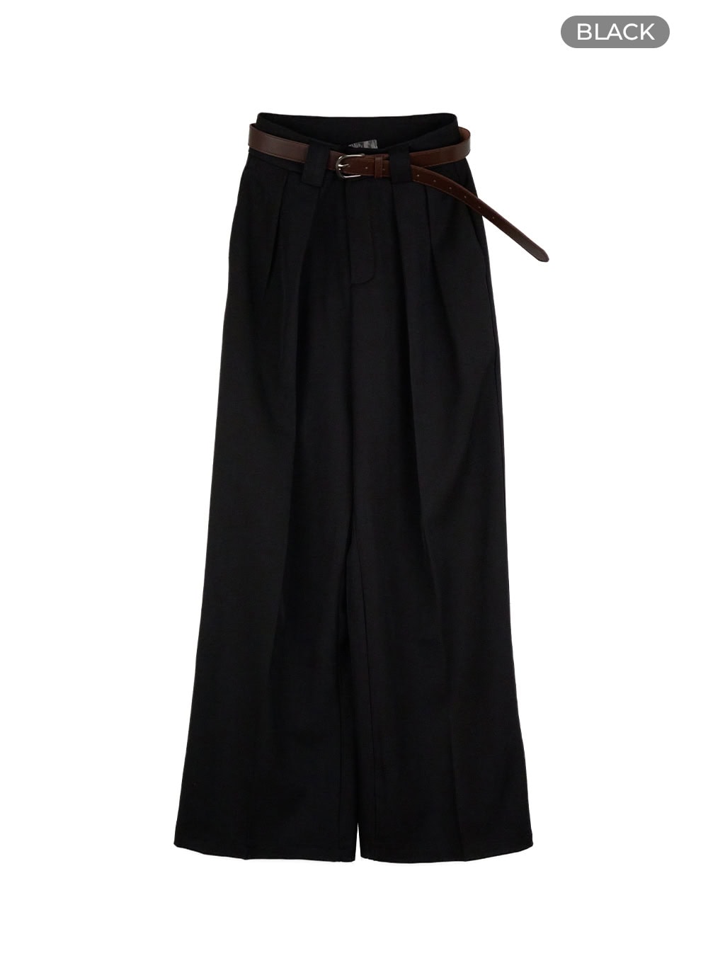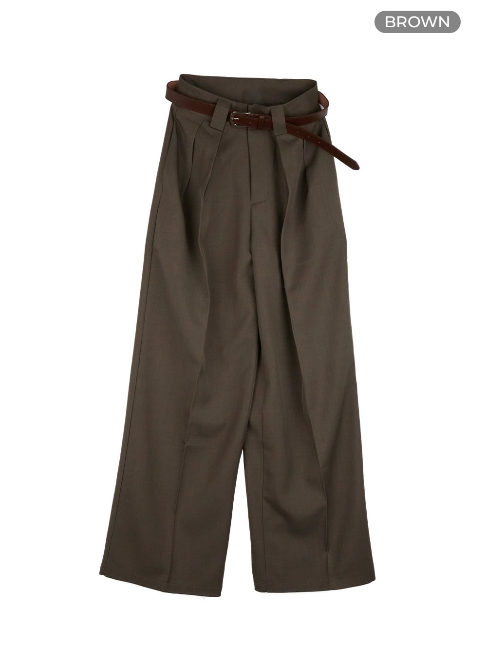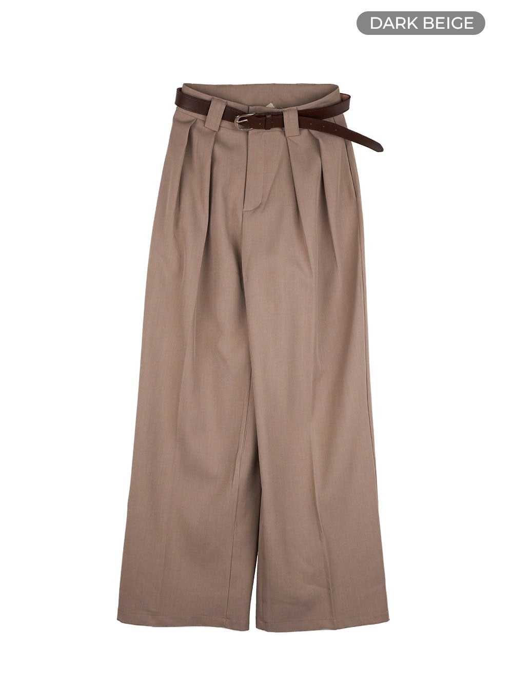 Pintuck Belted Wide Leg Tailored Pants OU411