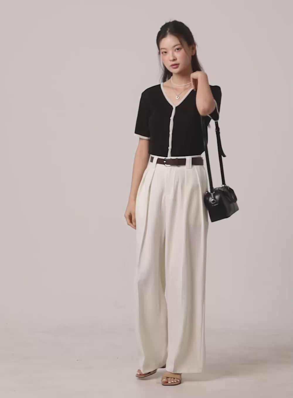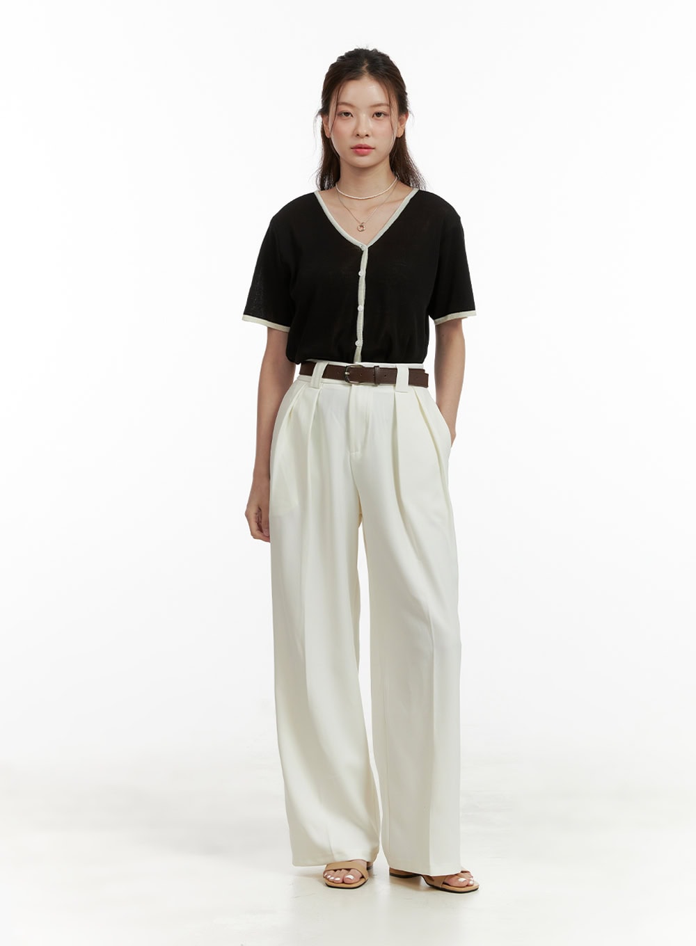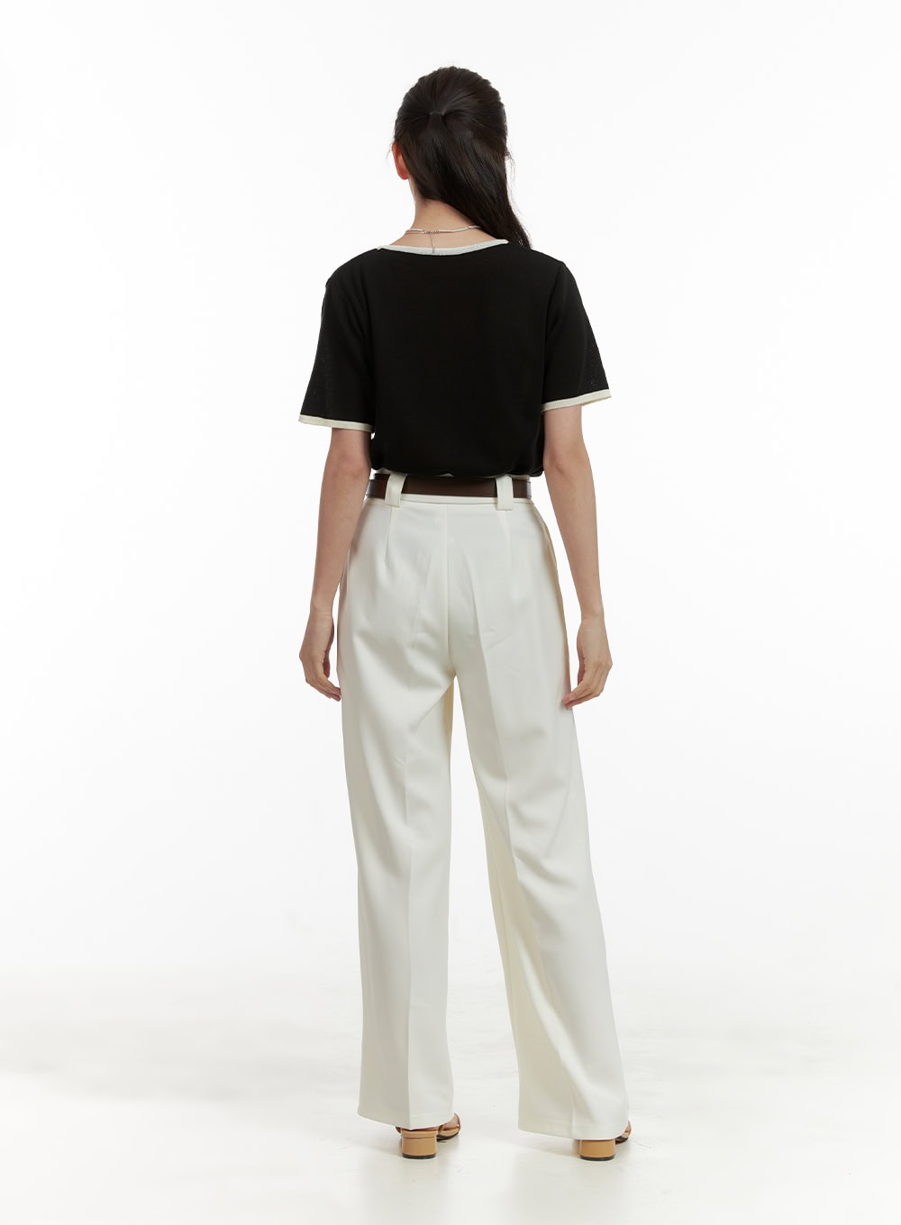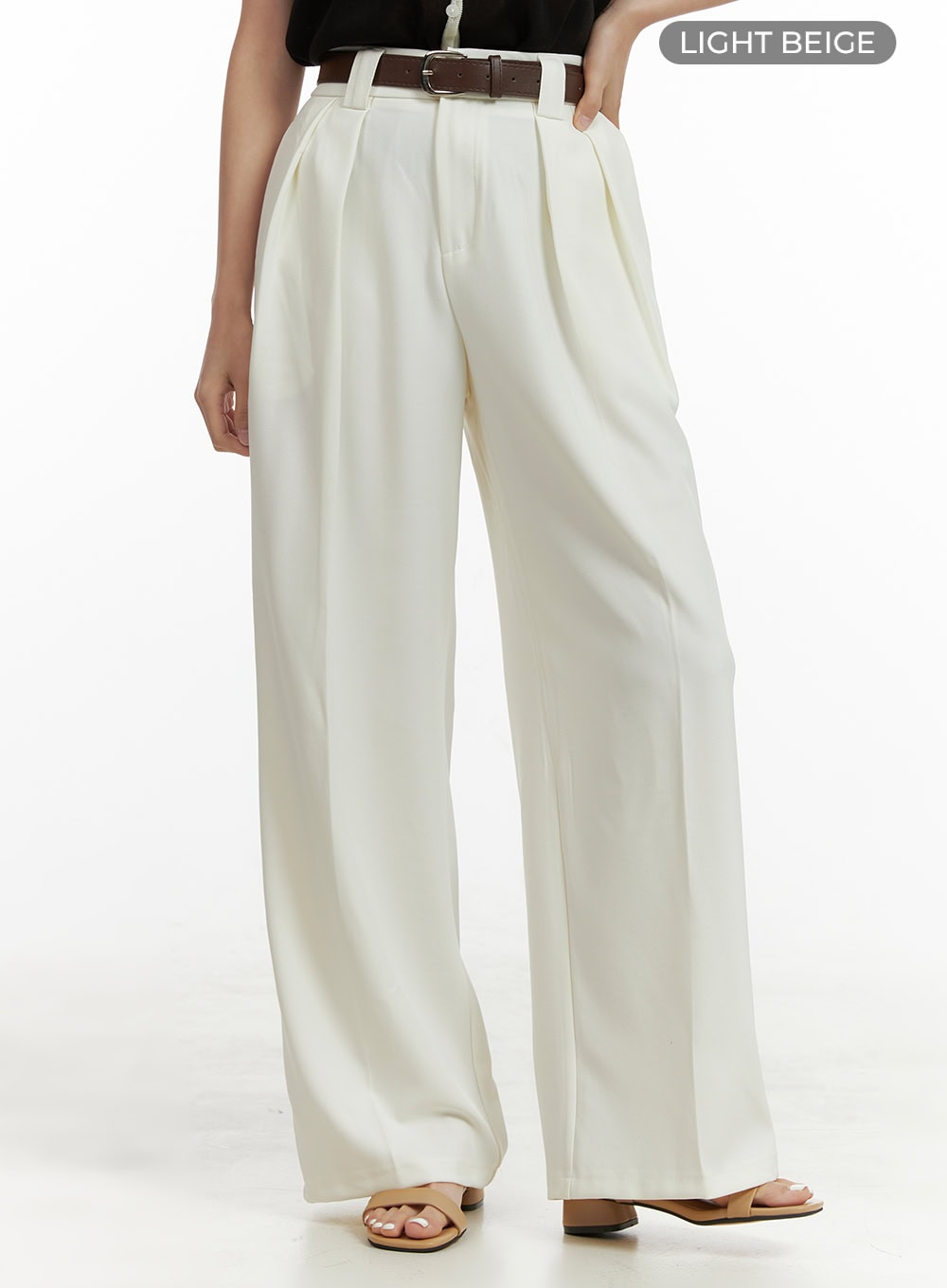 Pintuck Belted Wide Leg Tailored Pants OU411