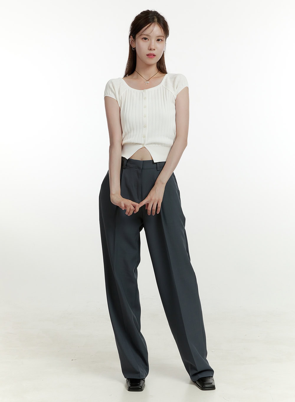 Pintuck Wide Fit Tailored Pants OU427
