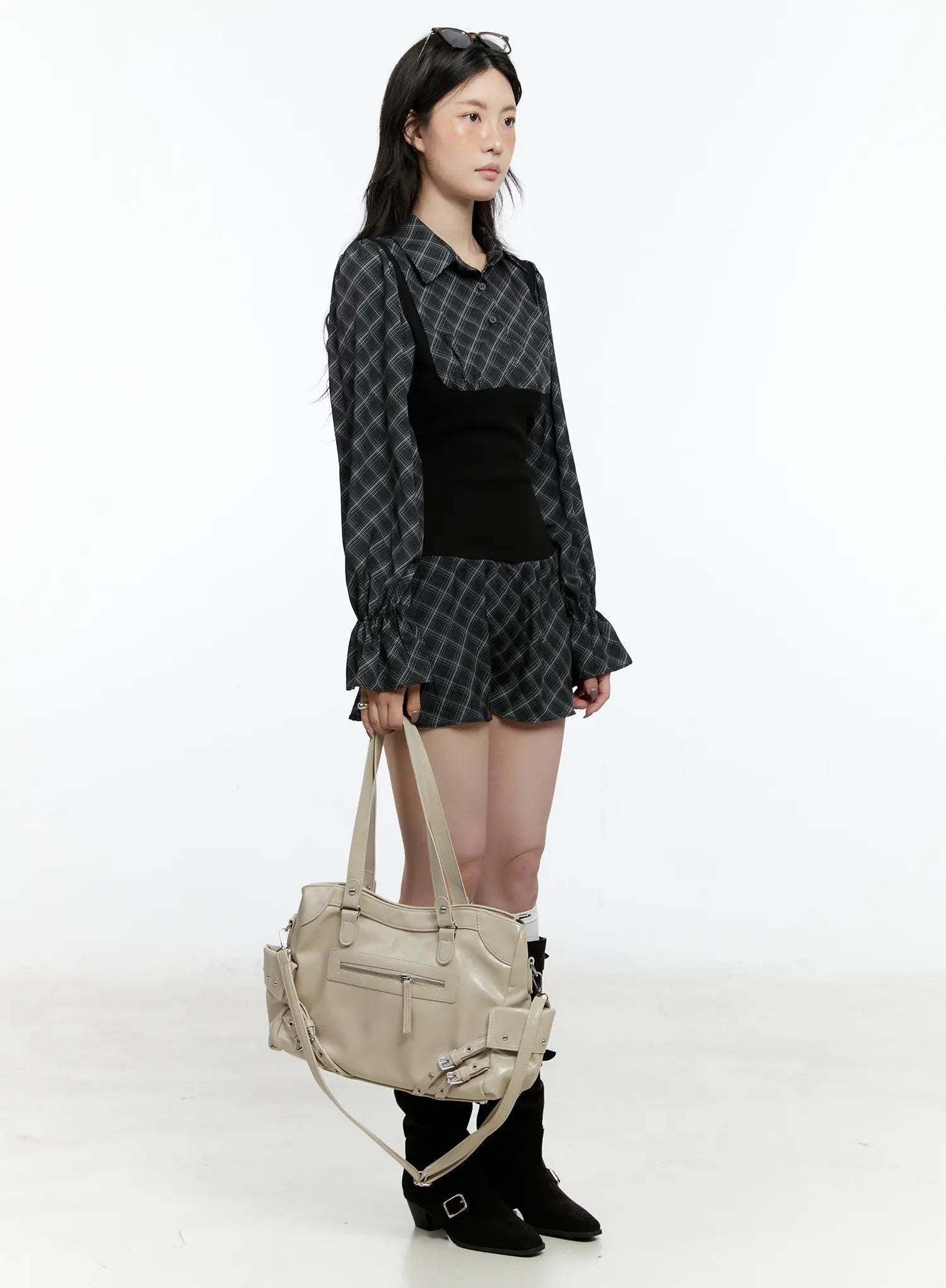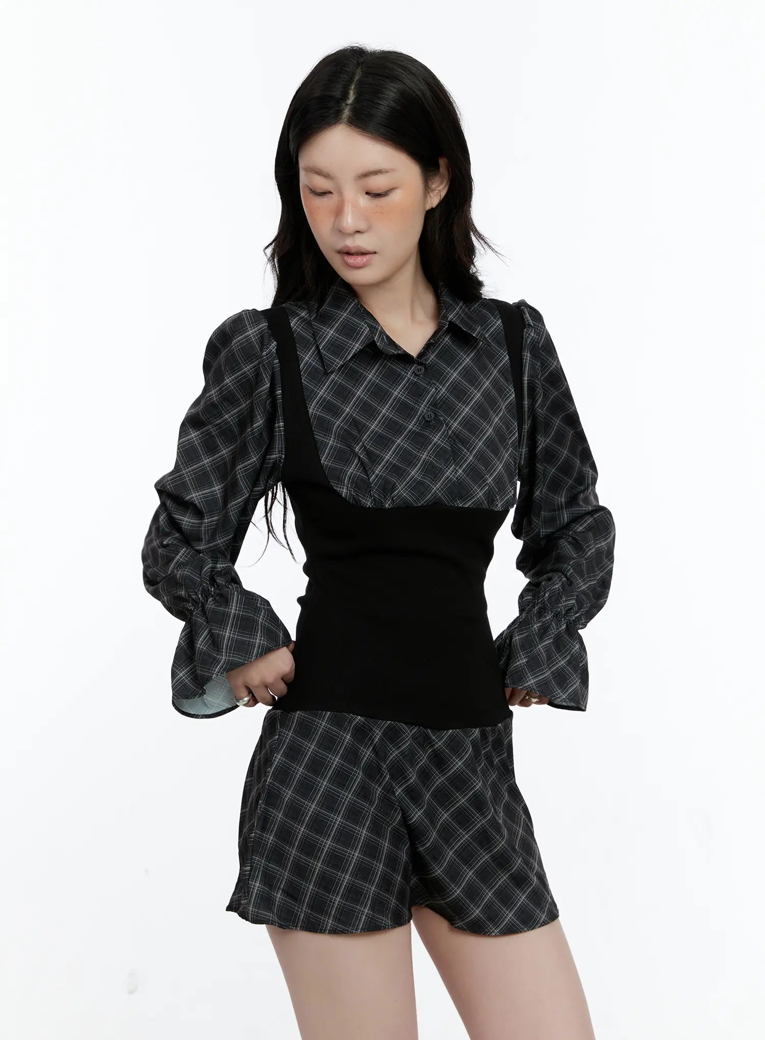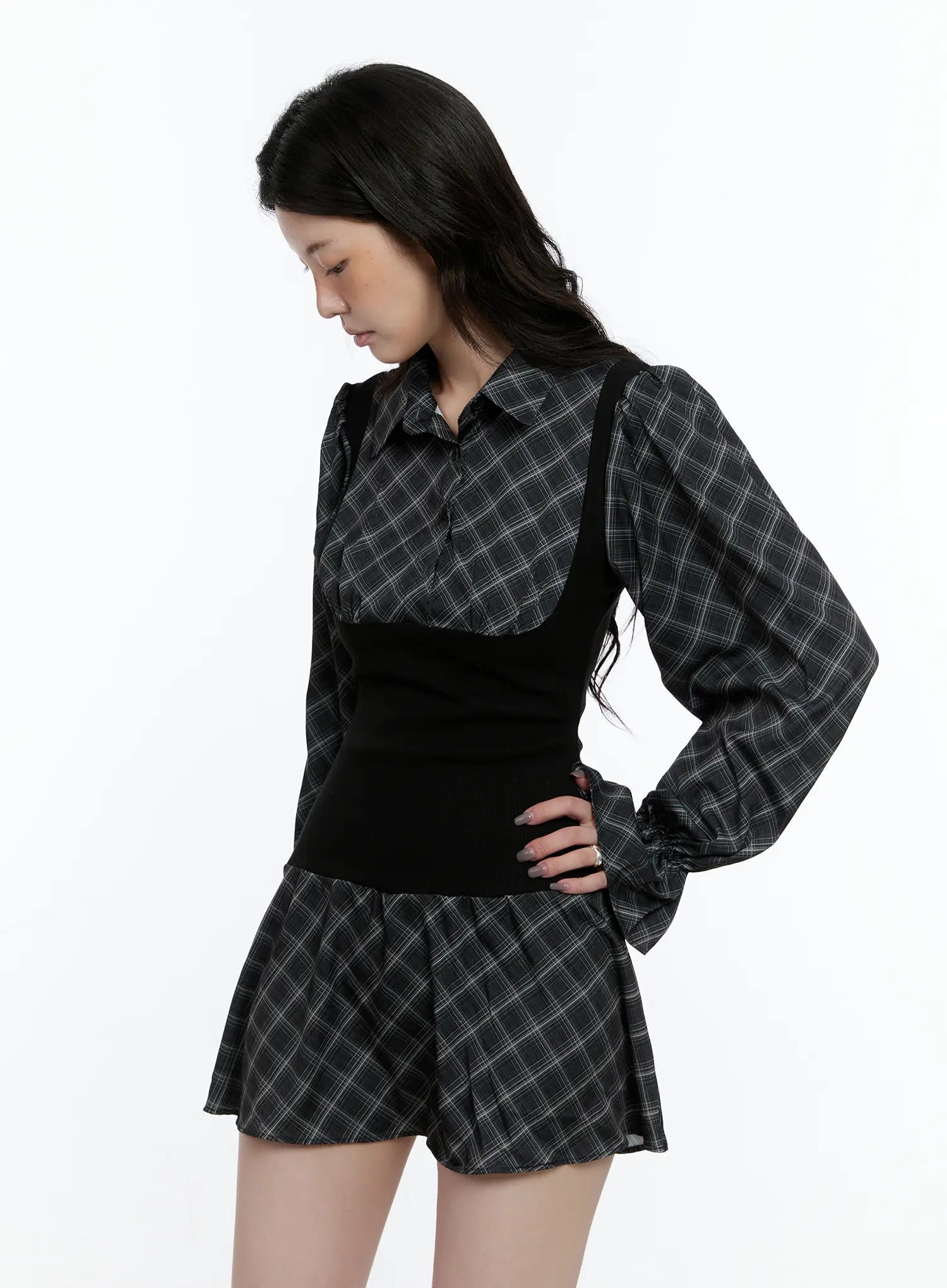 Plaid Long Sleeve Mini Dress CN517