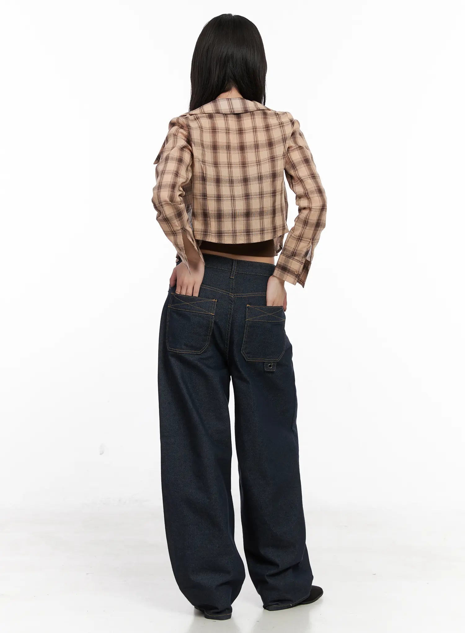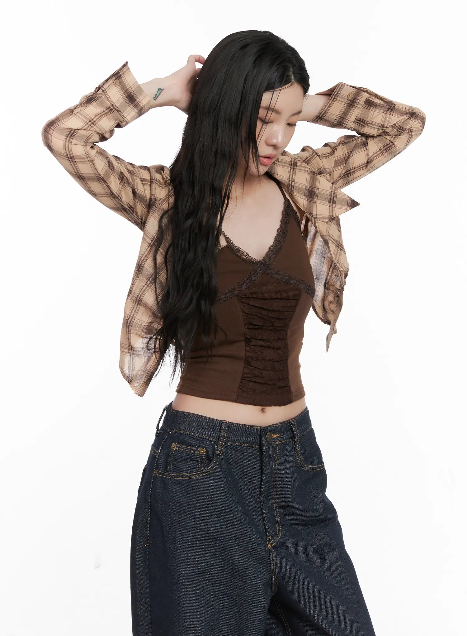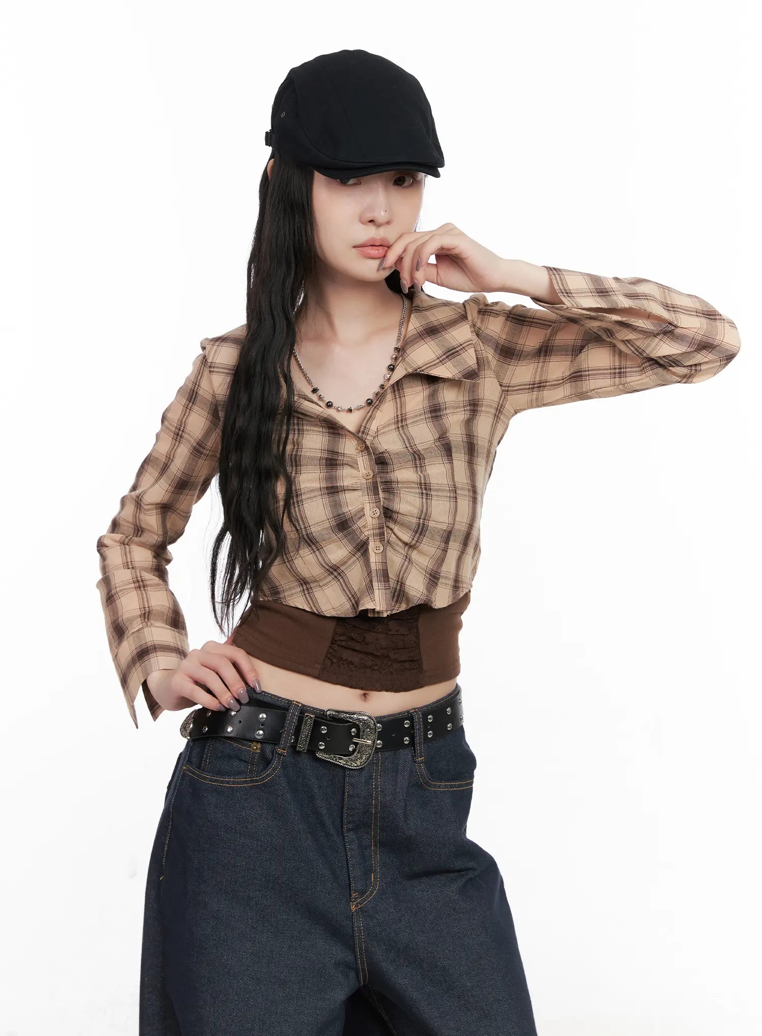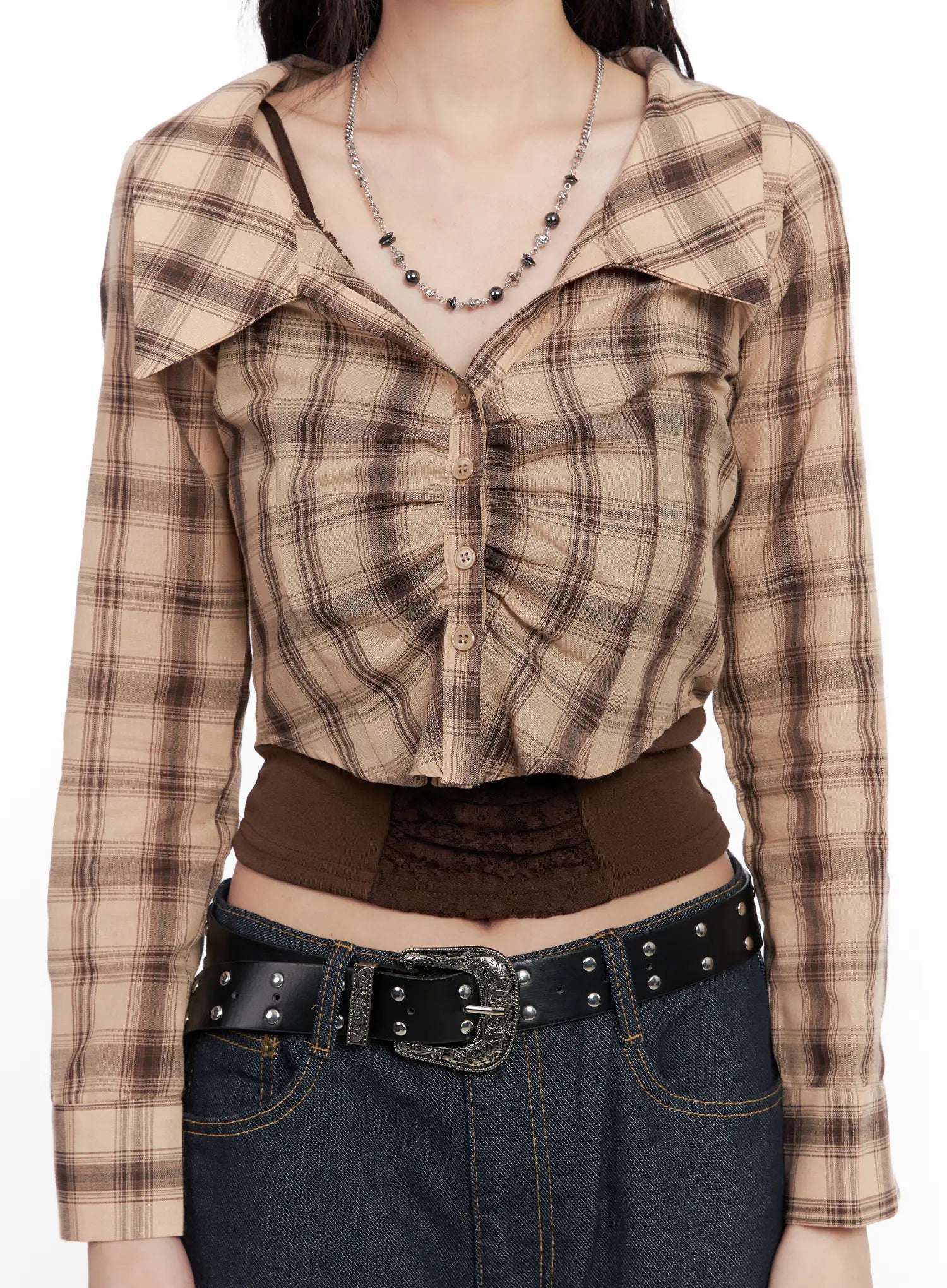 Plaid Shirred Crop Long Sleeve Shirt CN513