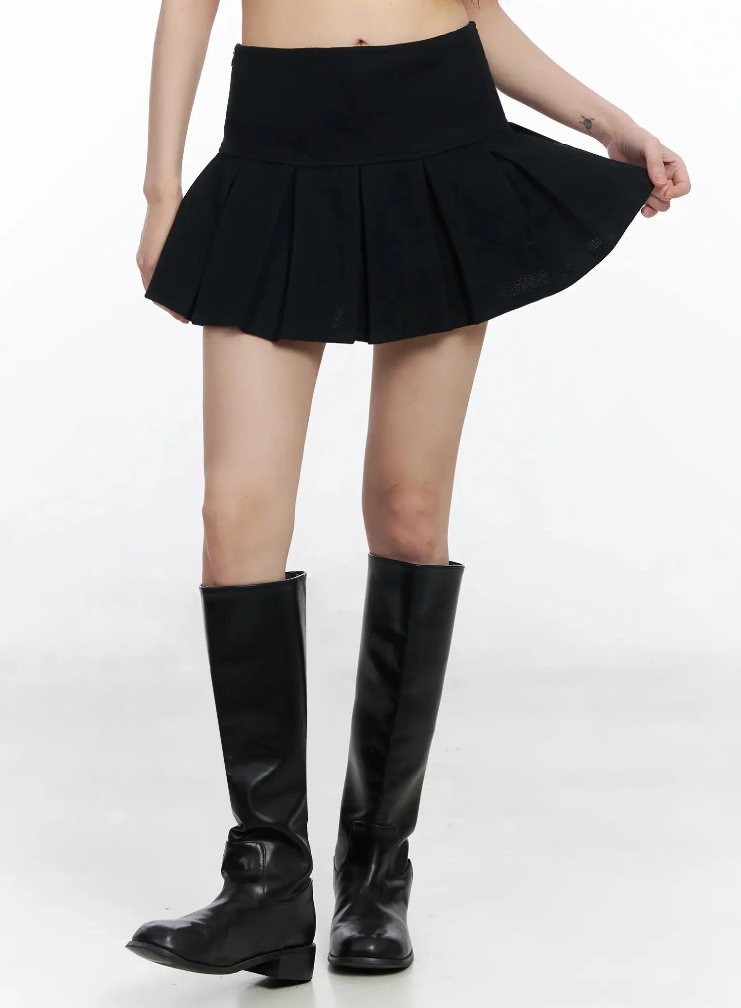 Pleated Wool Mini Skirt F517