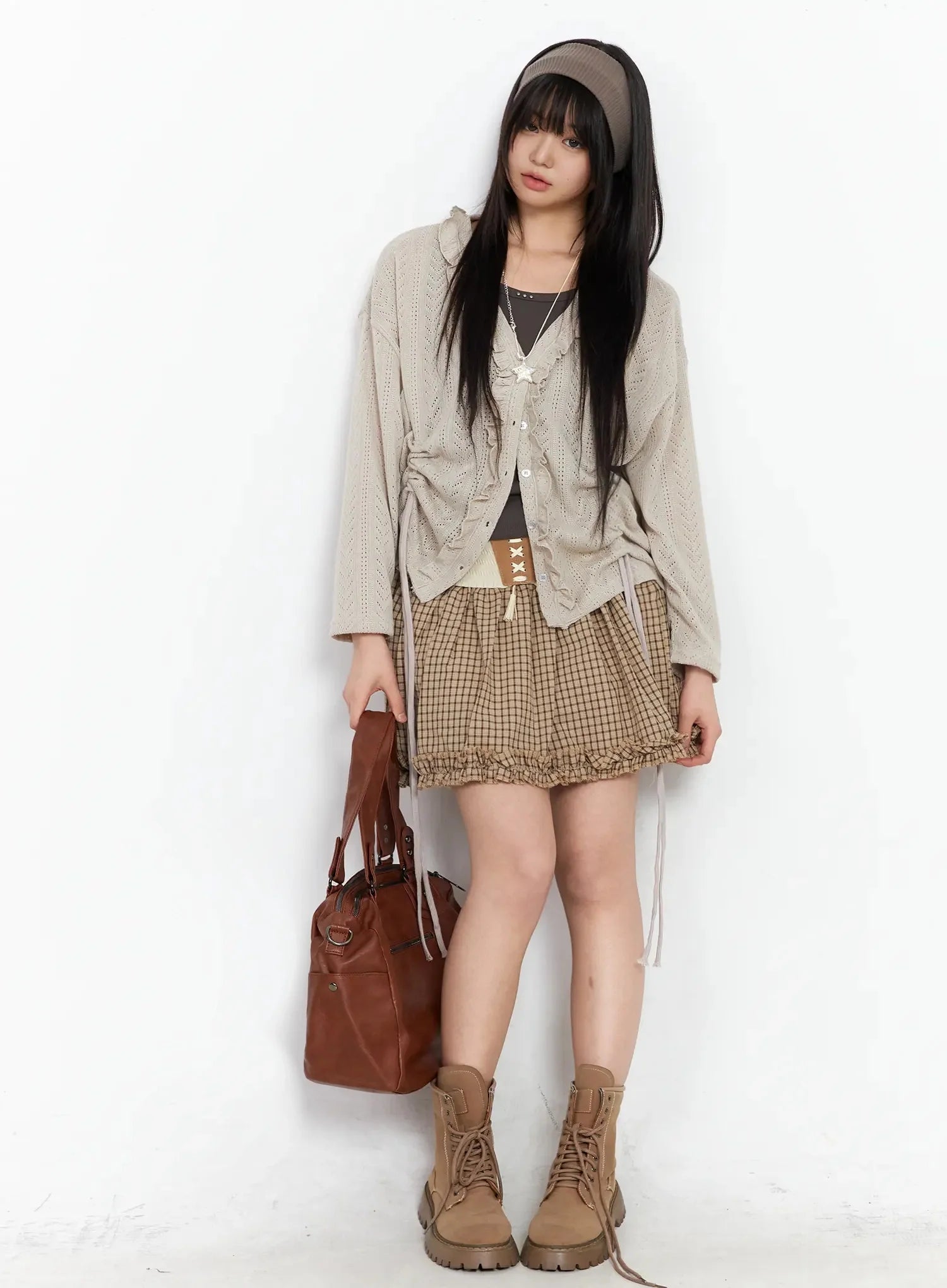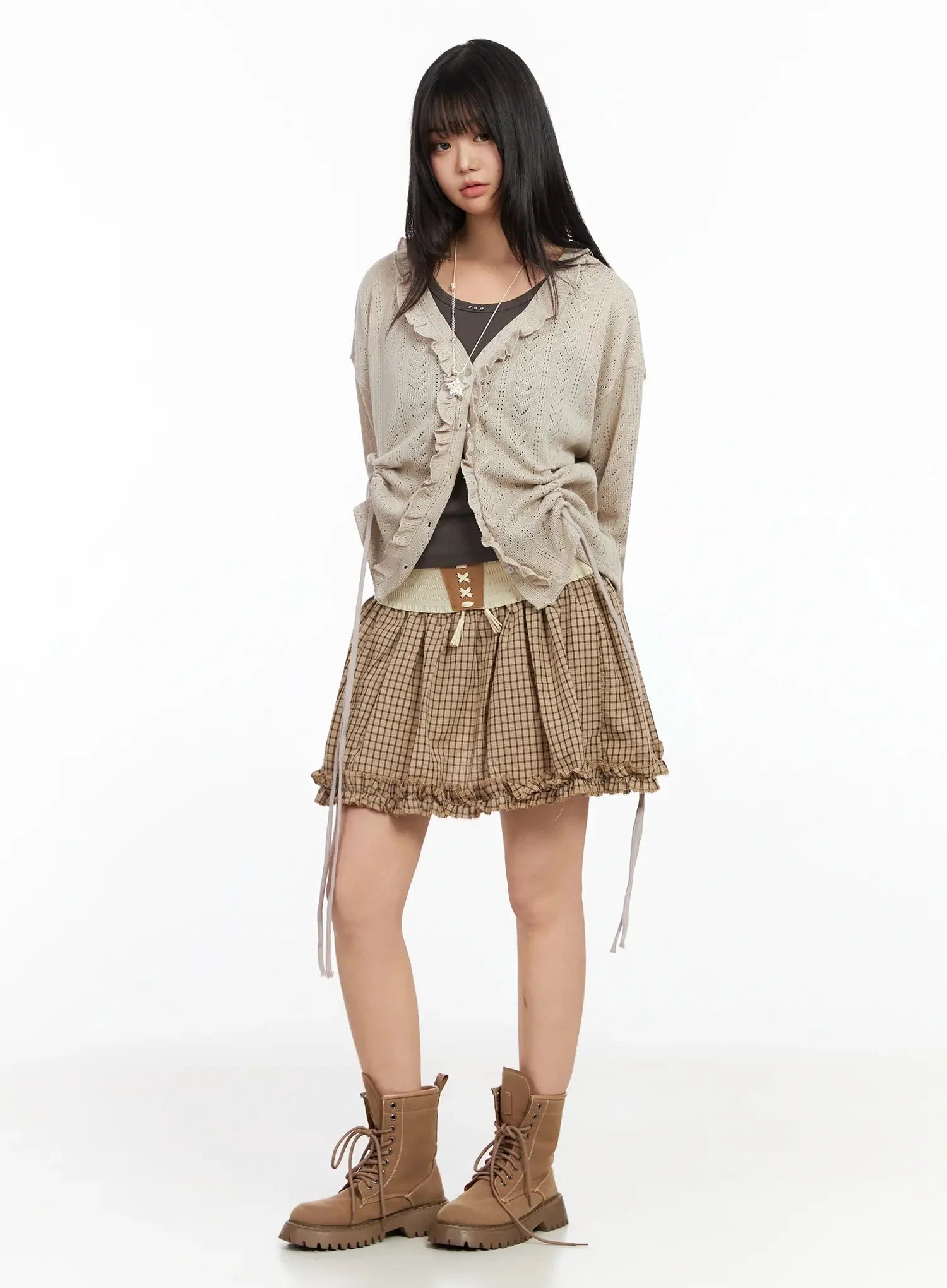 Model is wearing size M/L and the color Beige.
