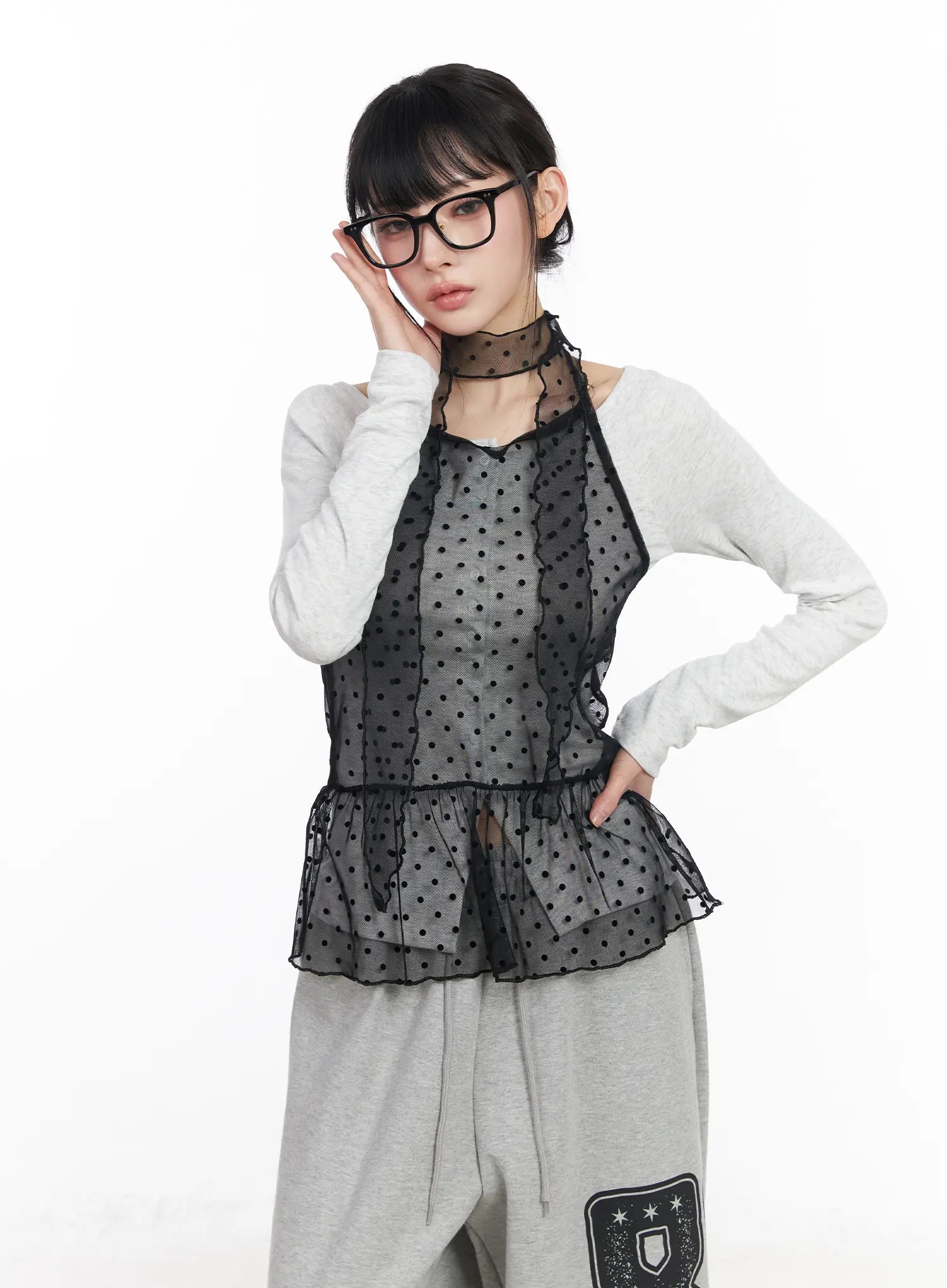 Polka Dot Sheer Tank Top and Scarf CF518