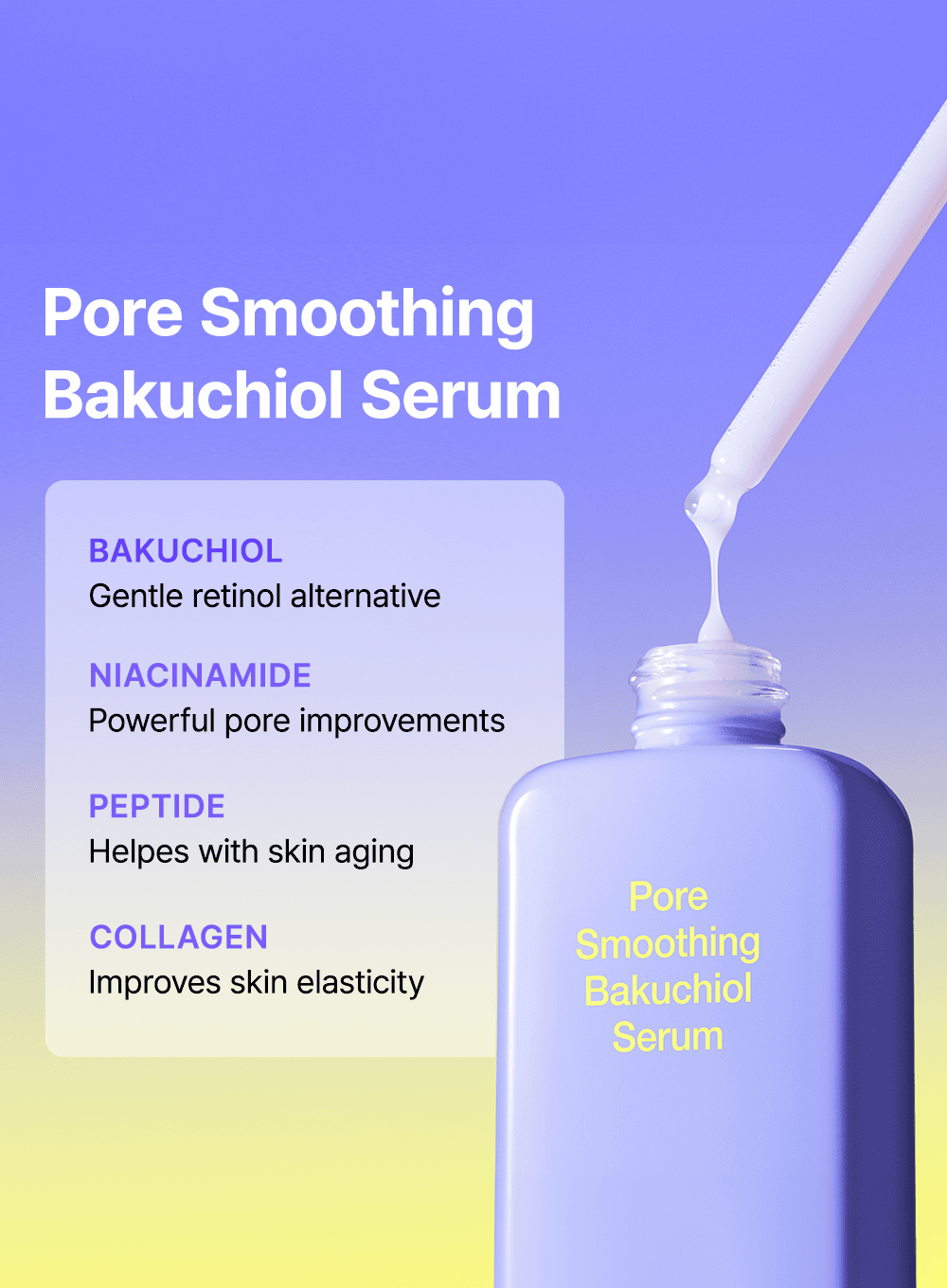 Pore-tightening serum infused with bakuchiol and niacinamide for firm and smooth skin.