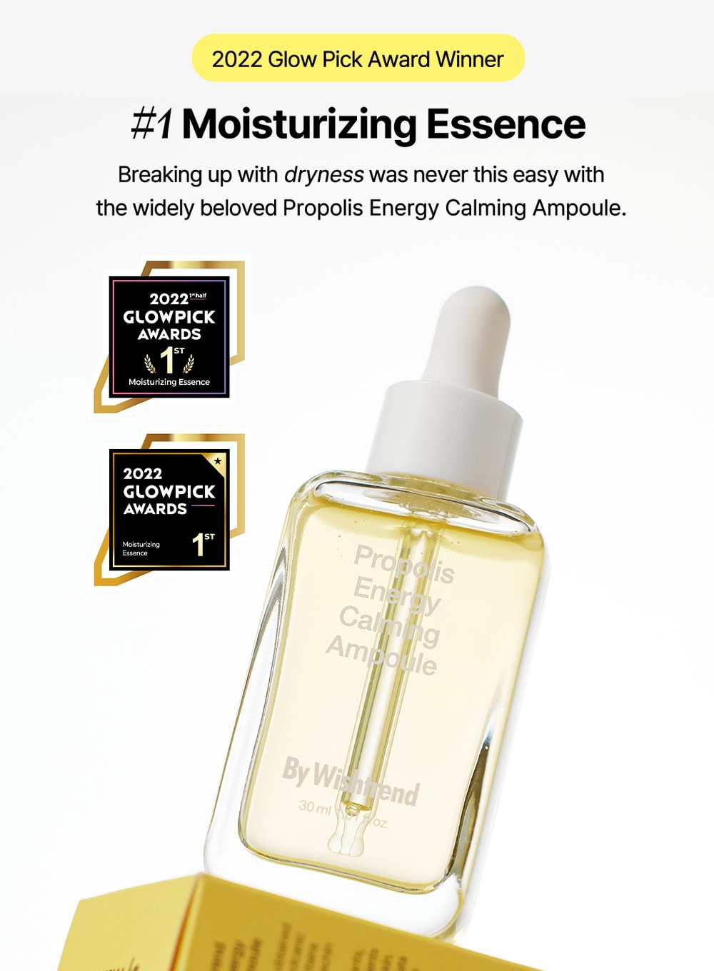 Ampoule with 15% Propolis and Houttuynia to soothe and nourish skin.