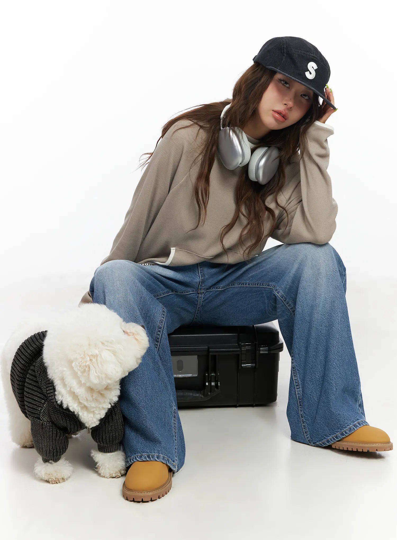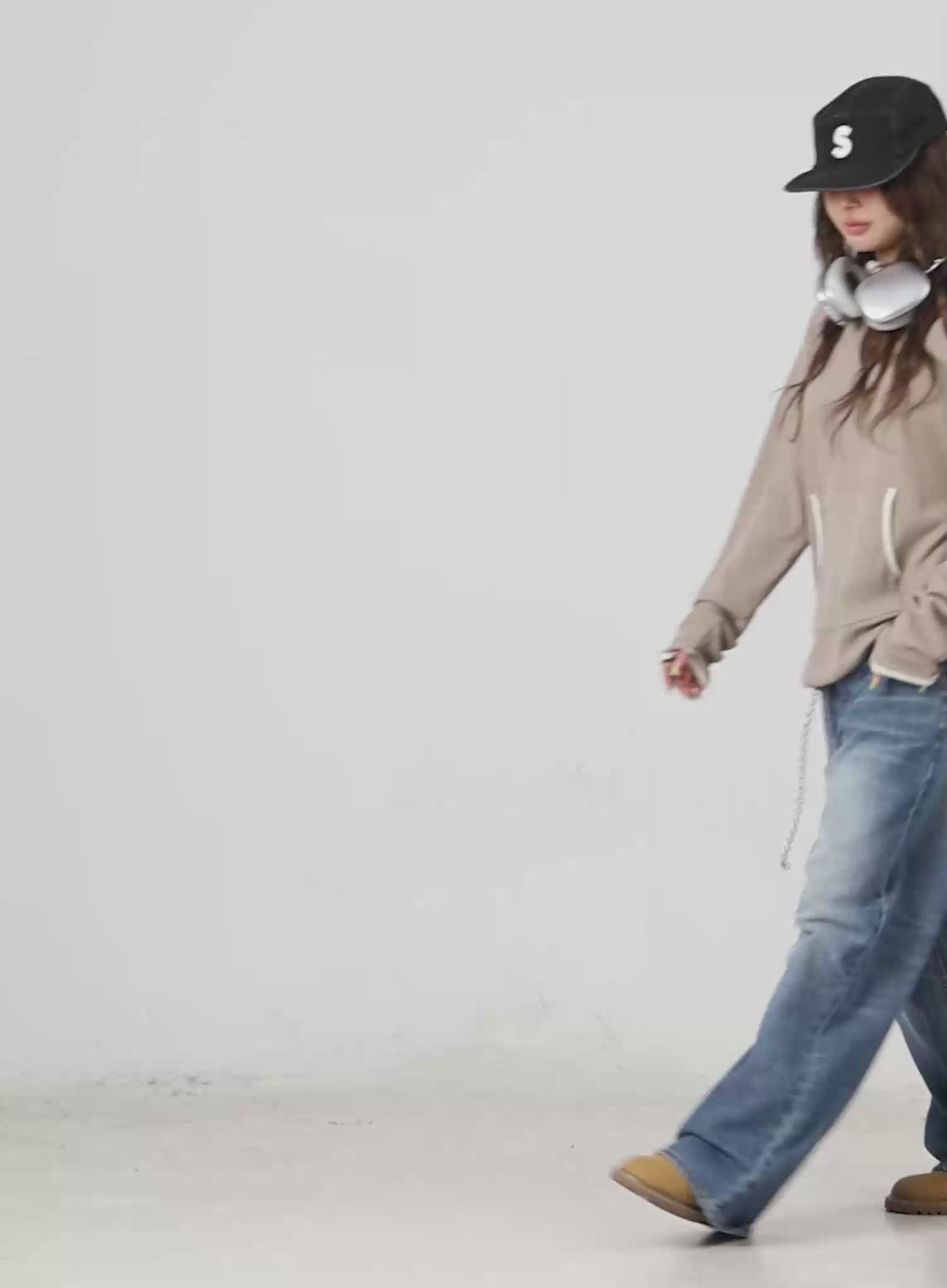 Model is wearing size S/M and the color Beige.
