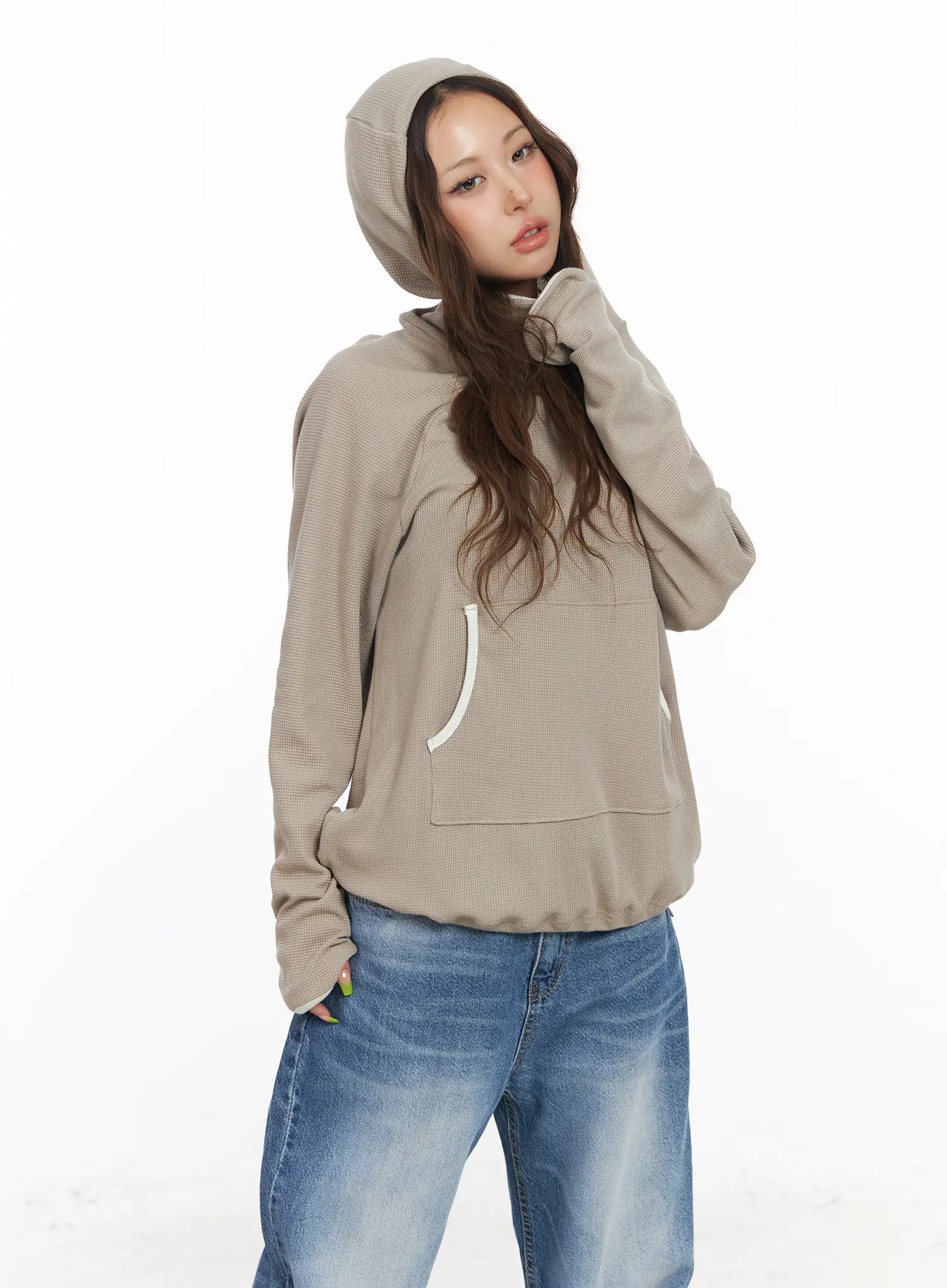 Relaxed-Fit Contrast Hoodie CF513