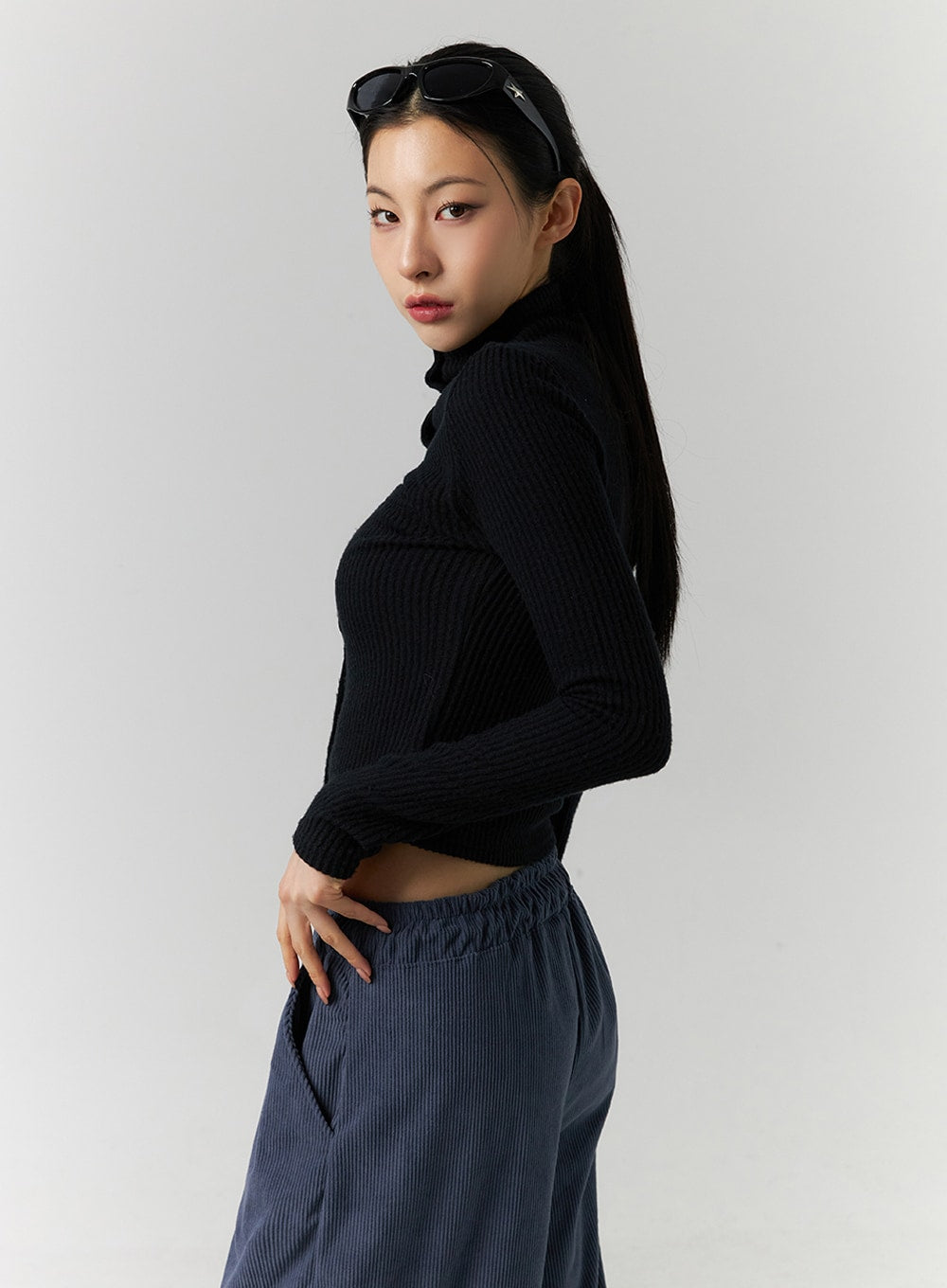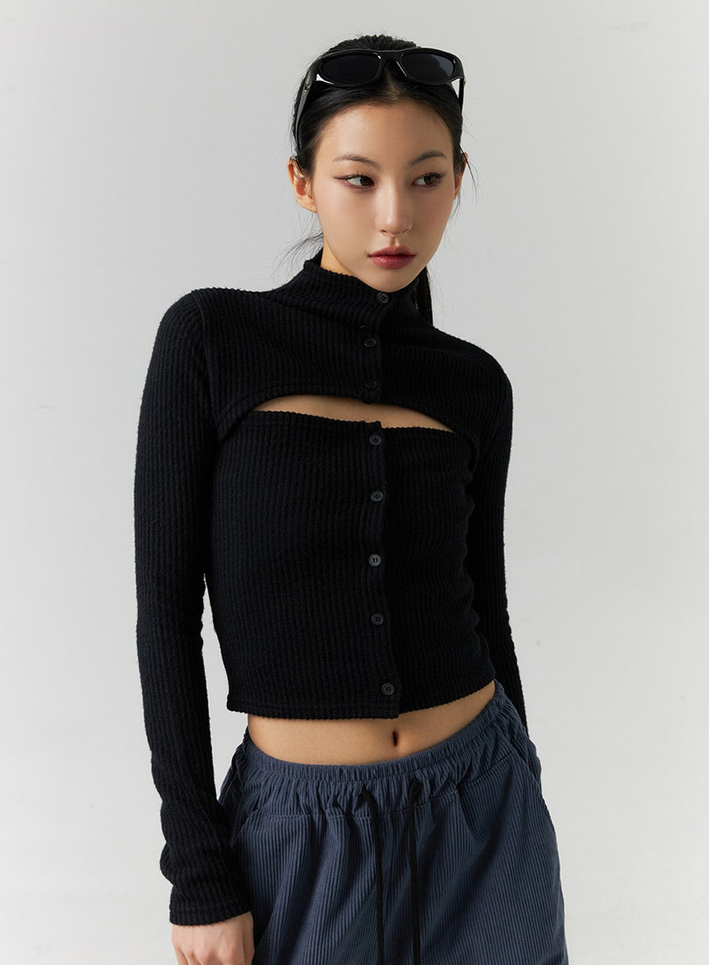 Rib Solid Cut Buttoned Cardigan ID305