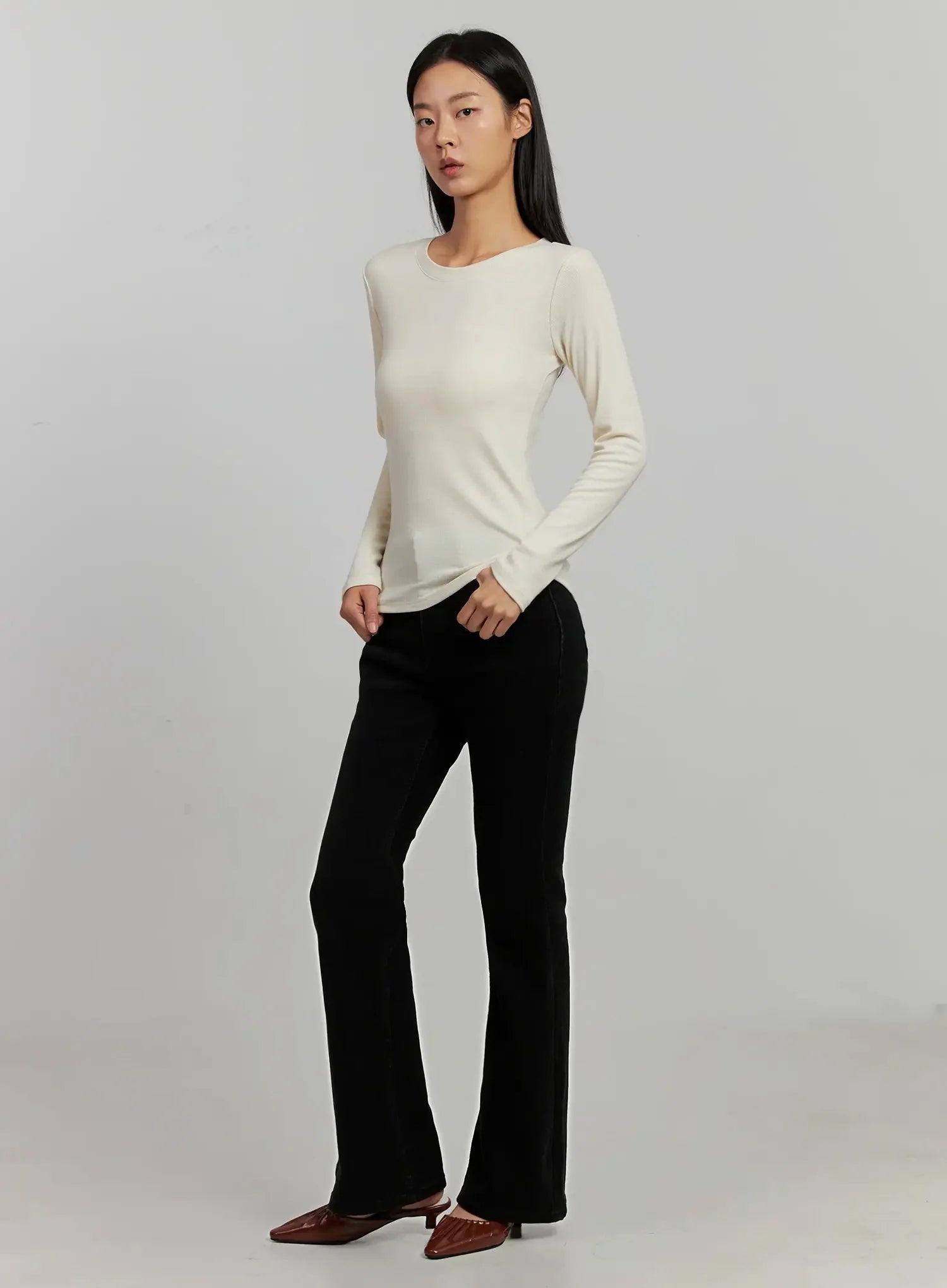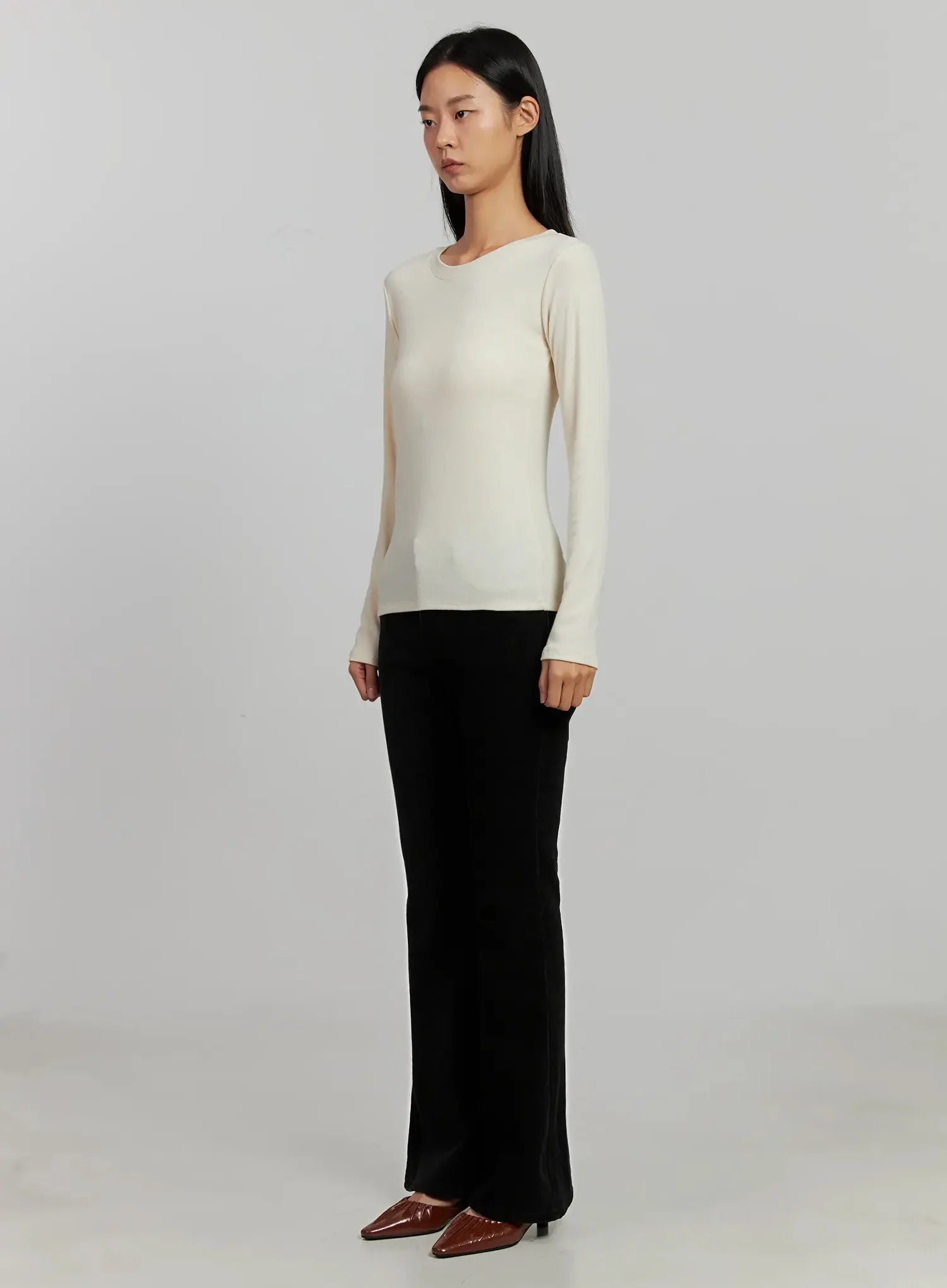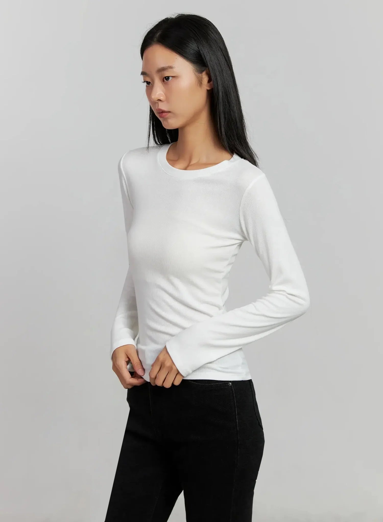 Ribbed Knit Long Sleeve Top IJ505