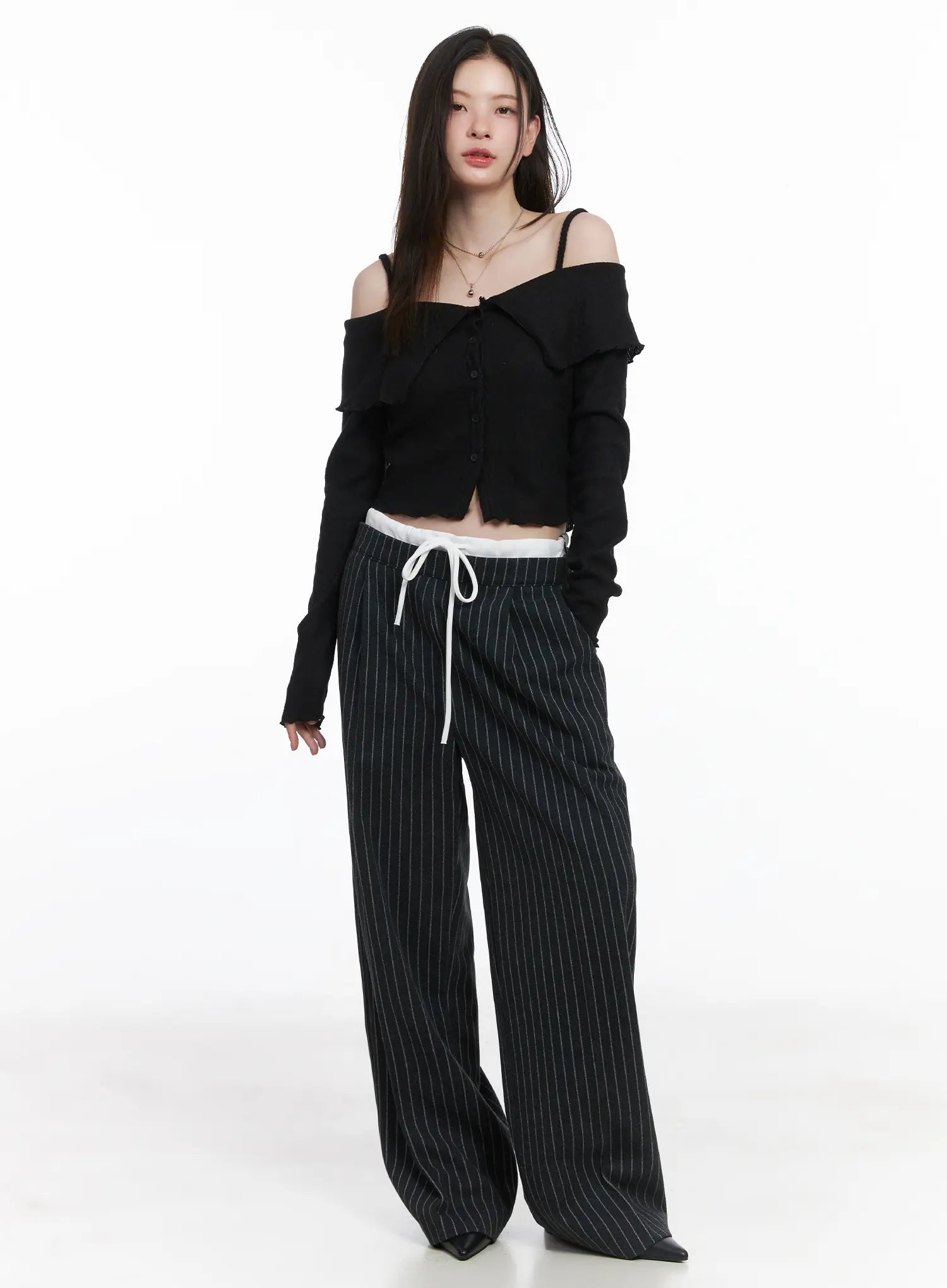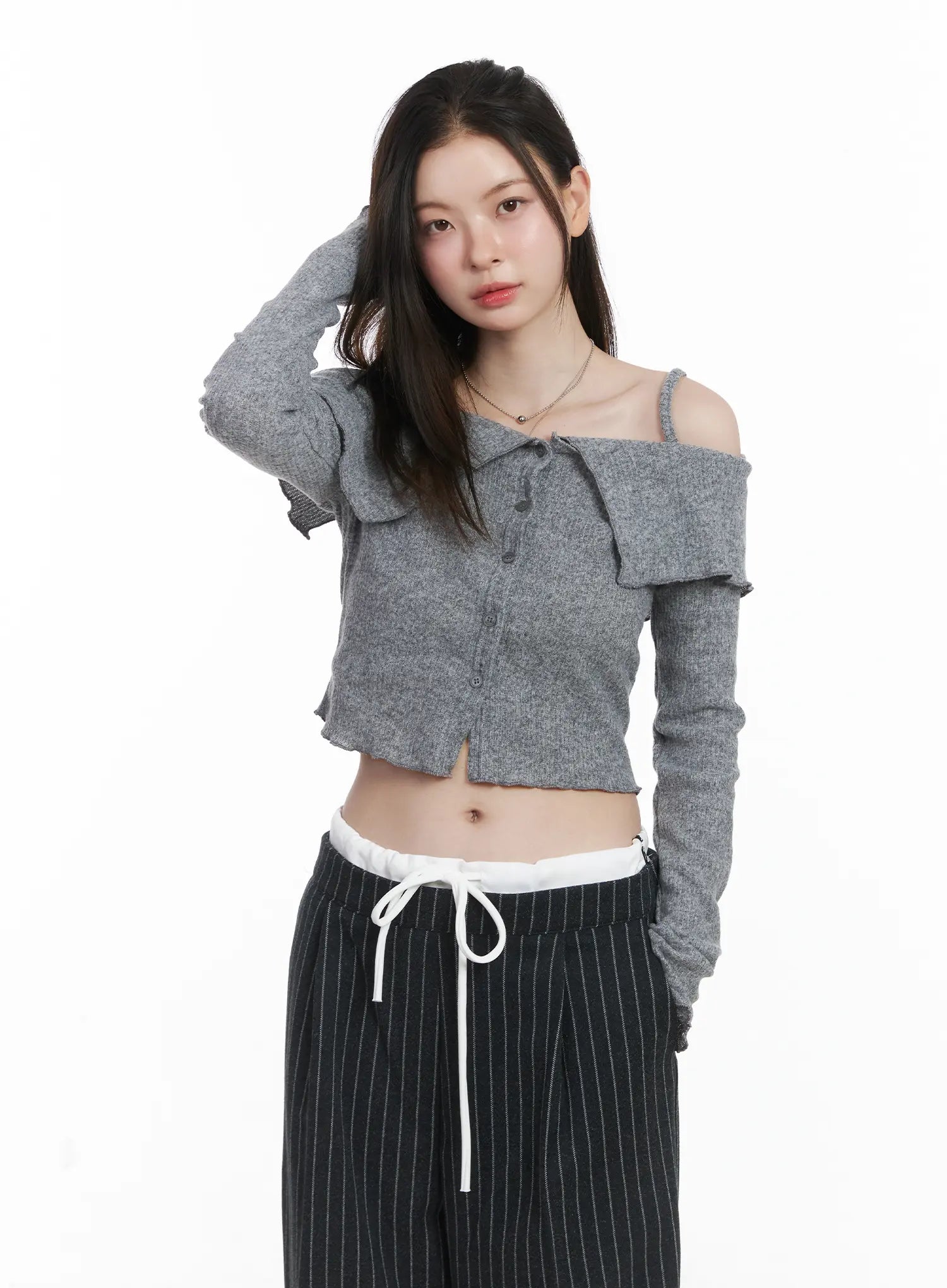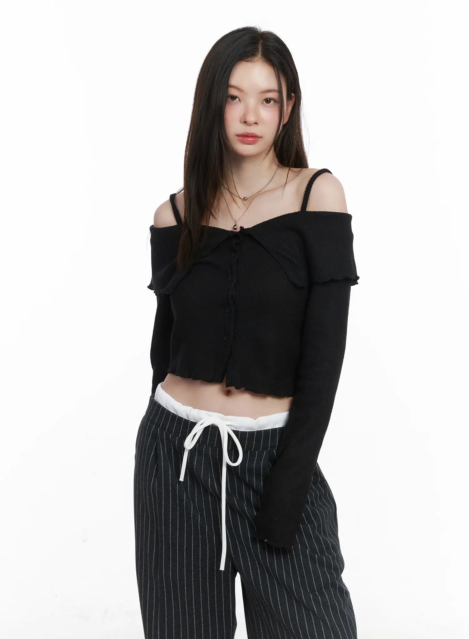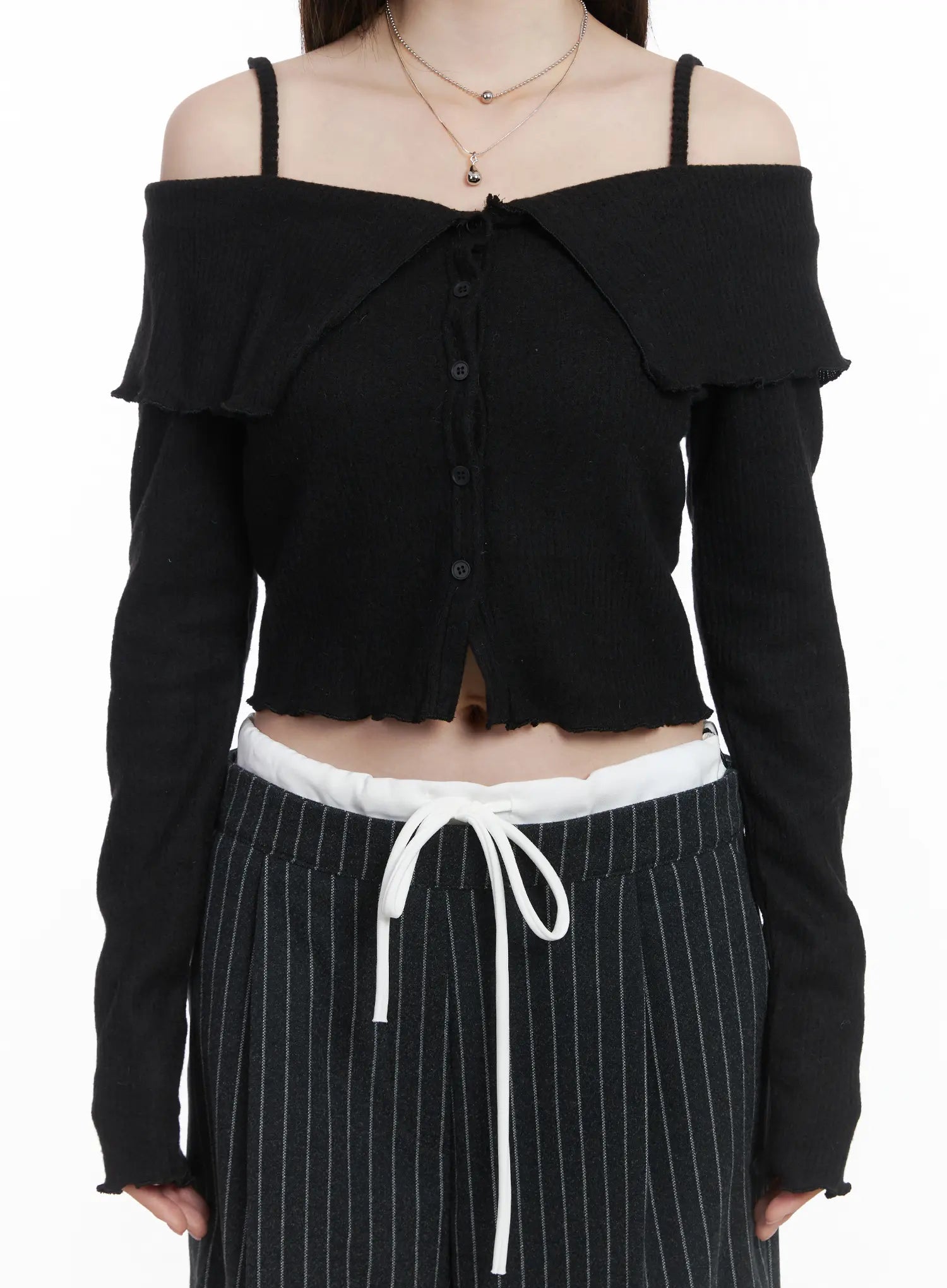 Ribbed Off-Shoulder Crop Cardigan CJ506