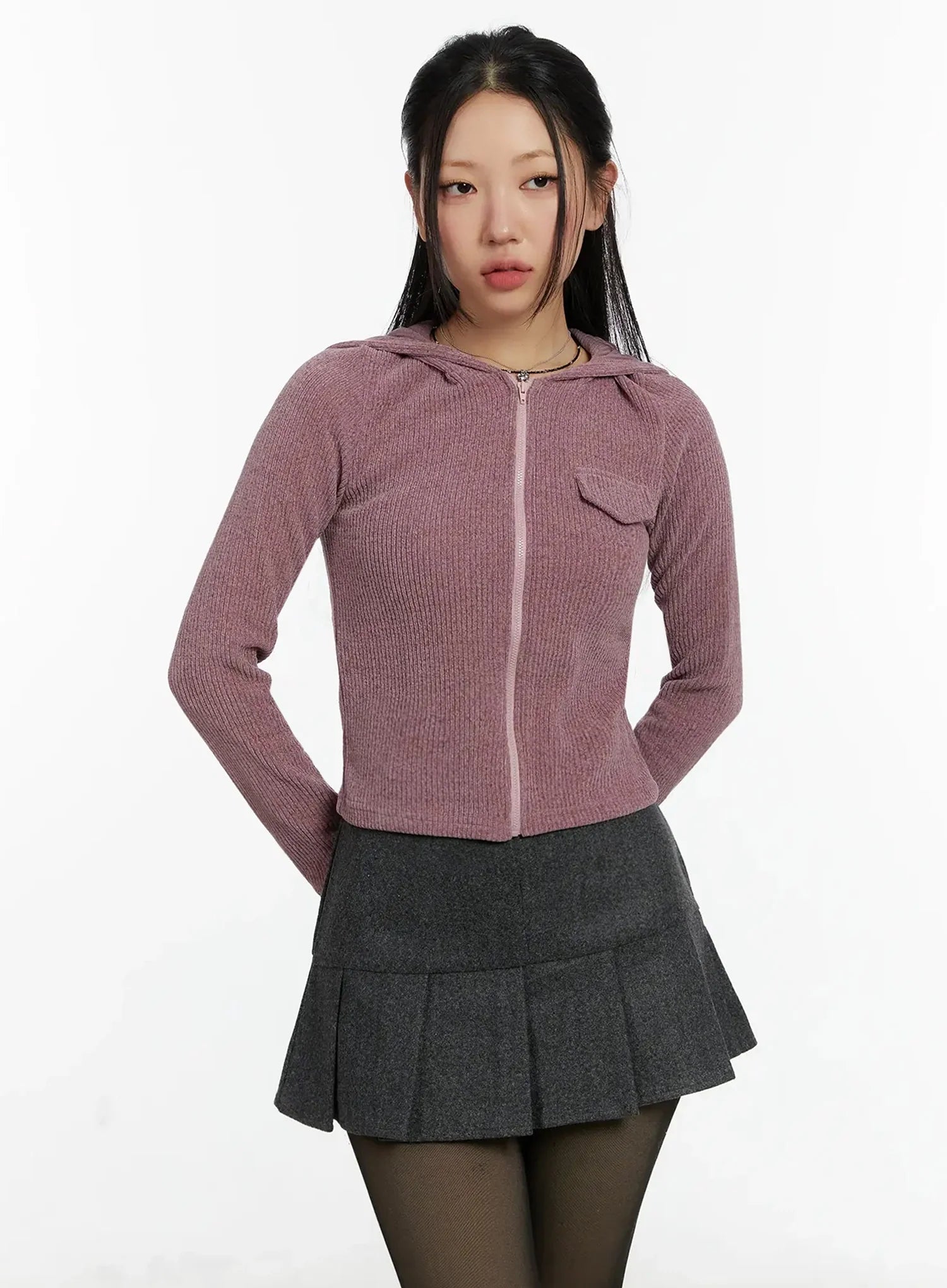 Ribbed Zip-Up Hoodie ID525