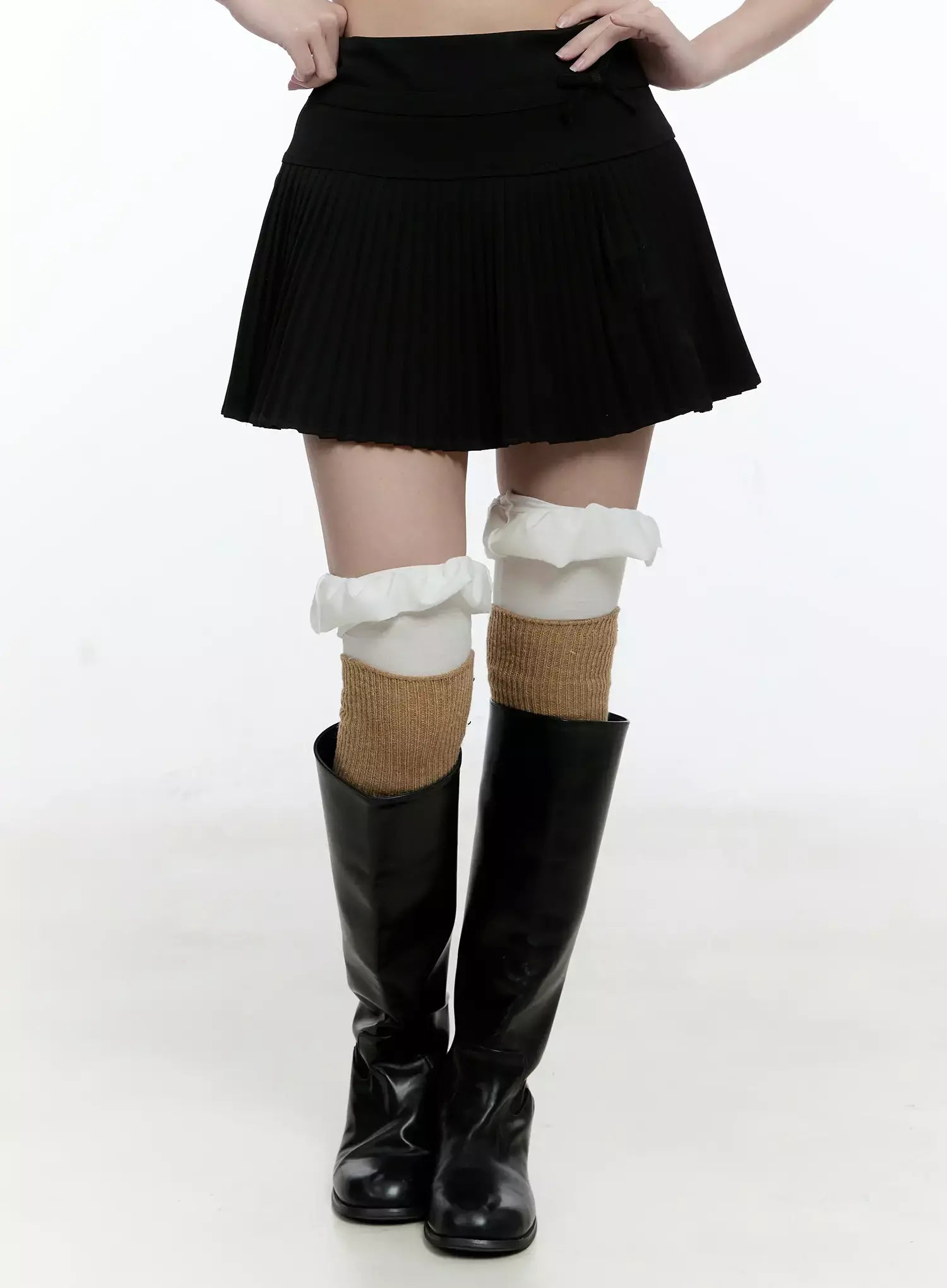 Ribbon Pleated Mini Skirt IO527