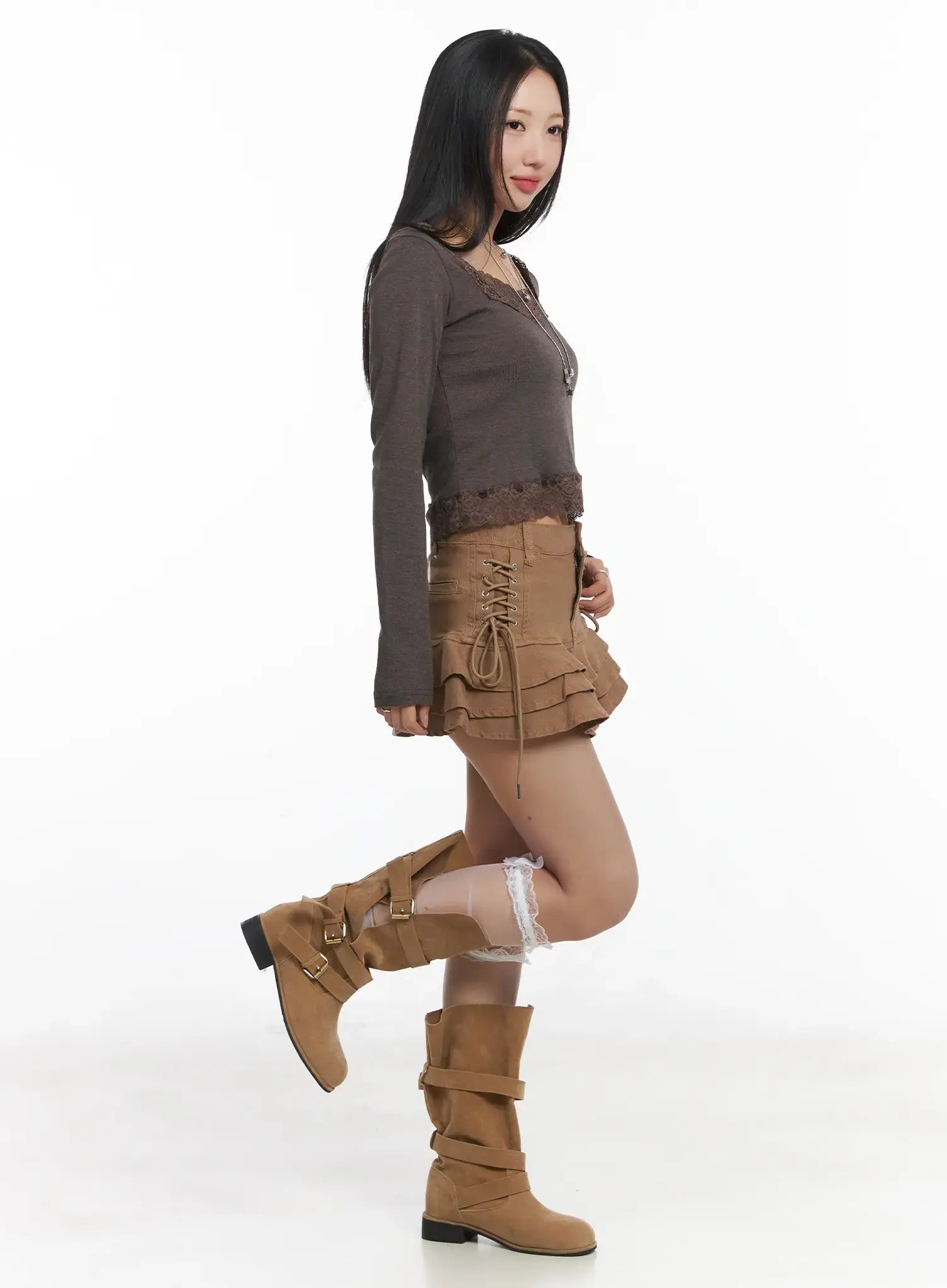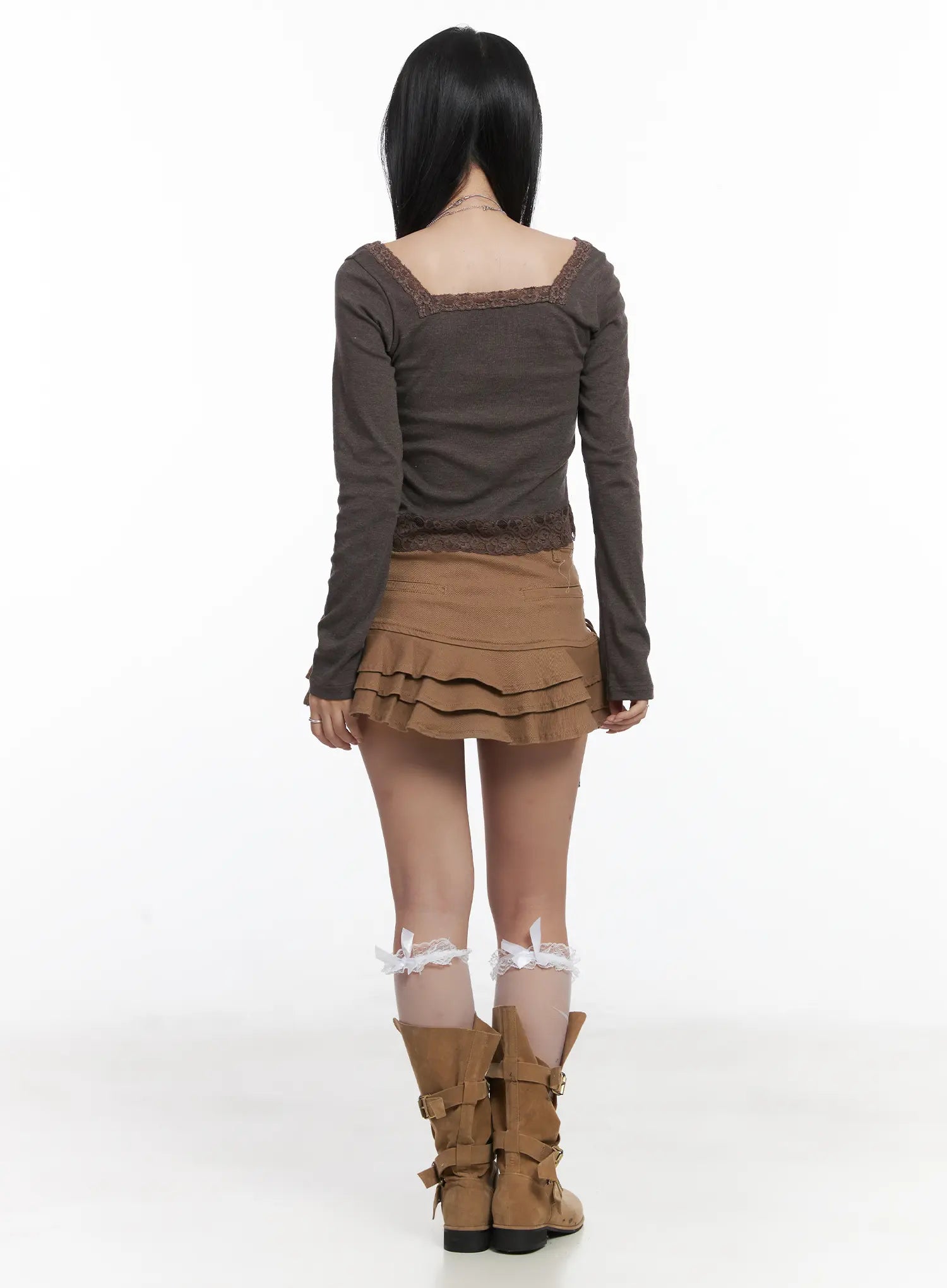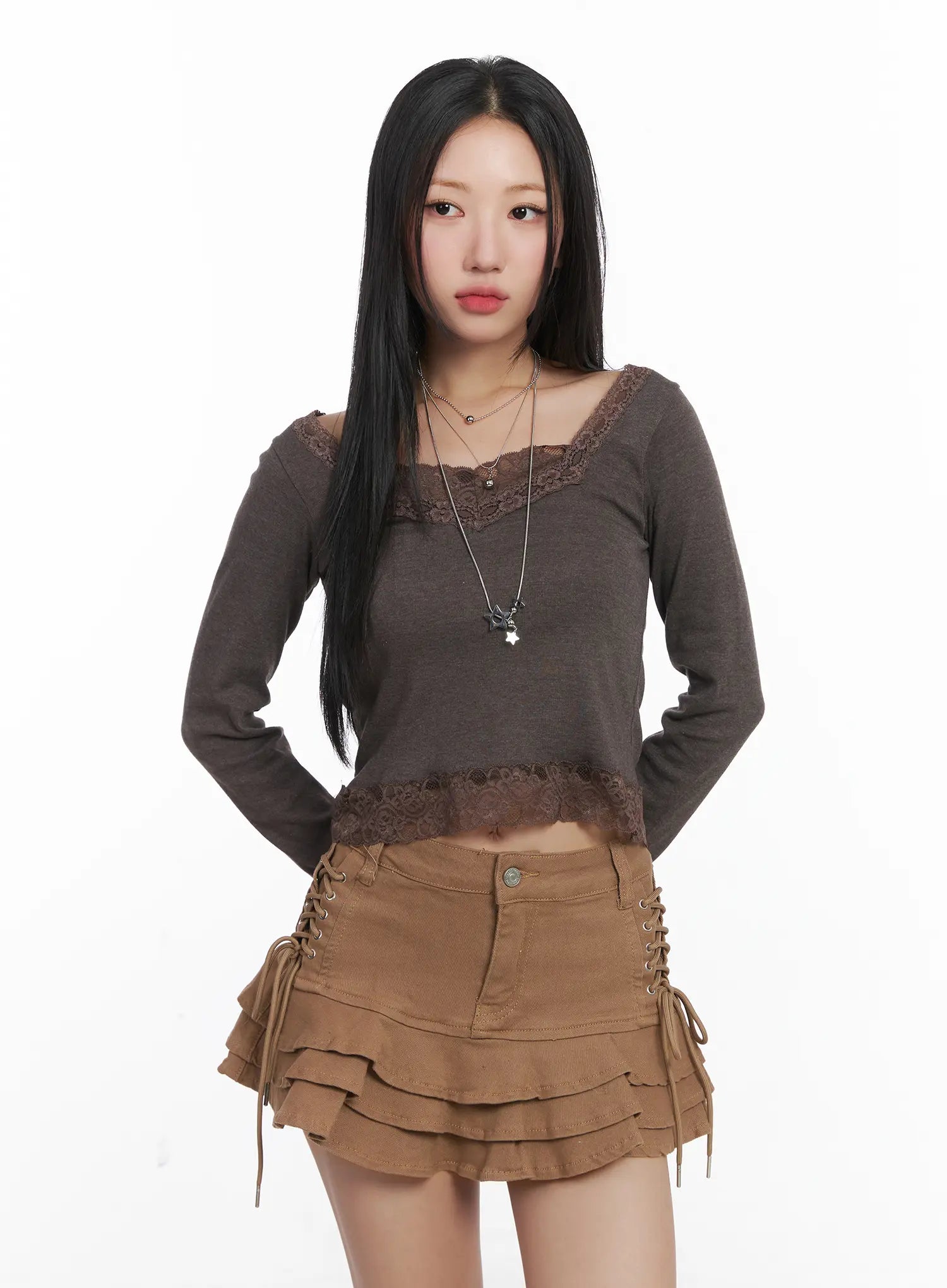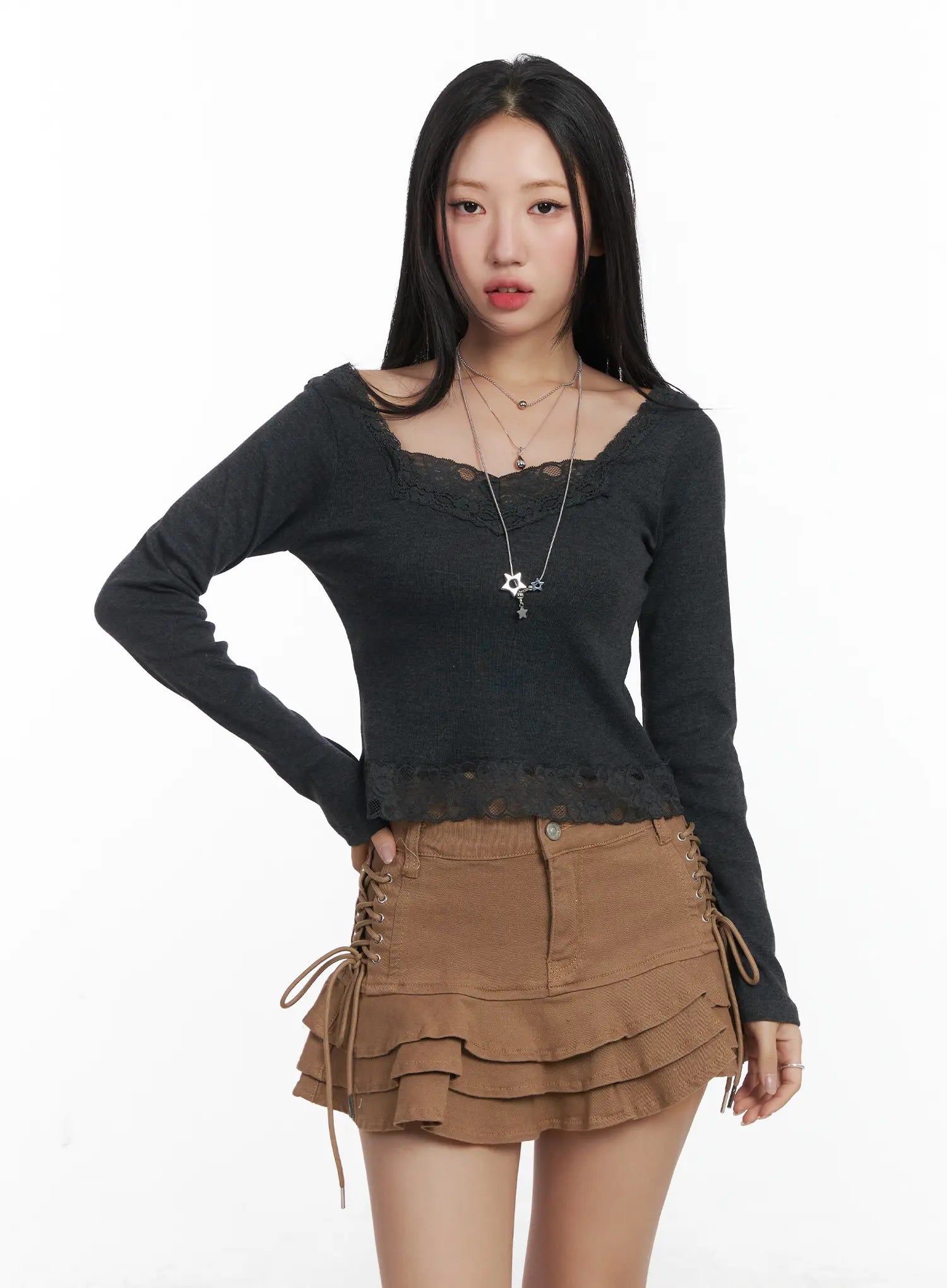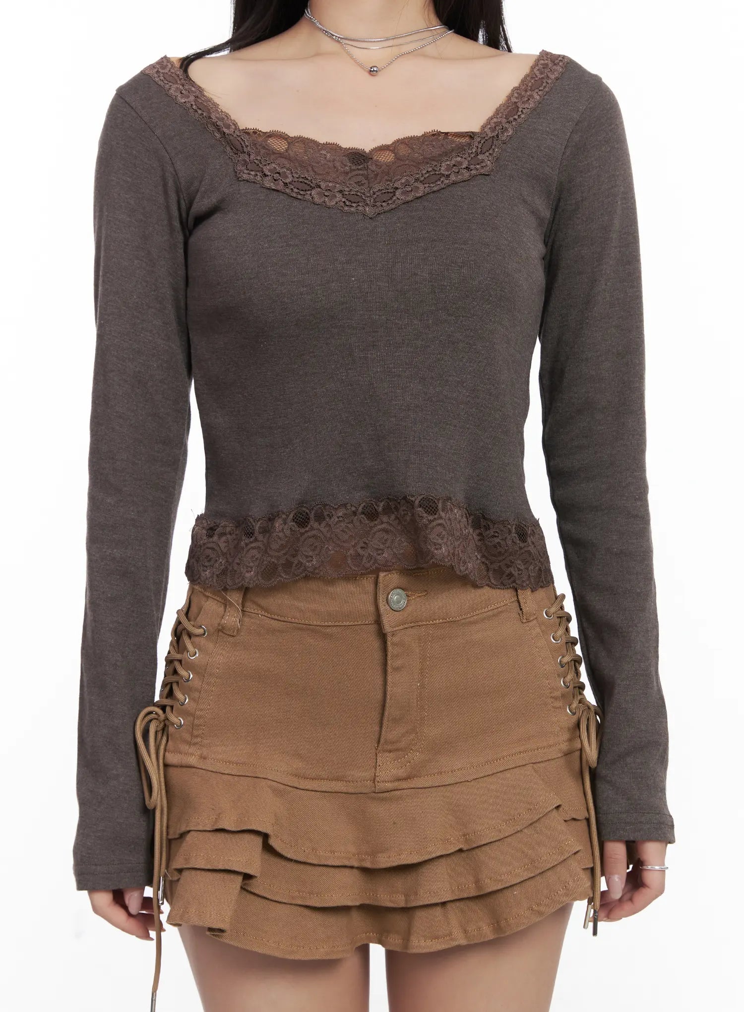 Romantic Lace Trim Sweetheart Neck Long Sleeve Top CD530