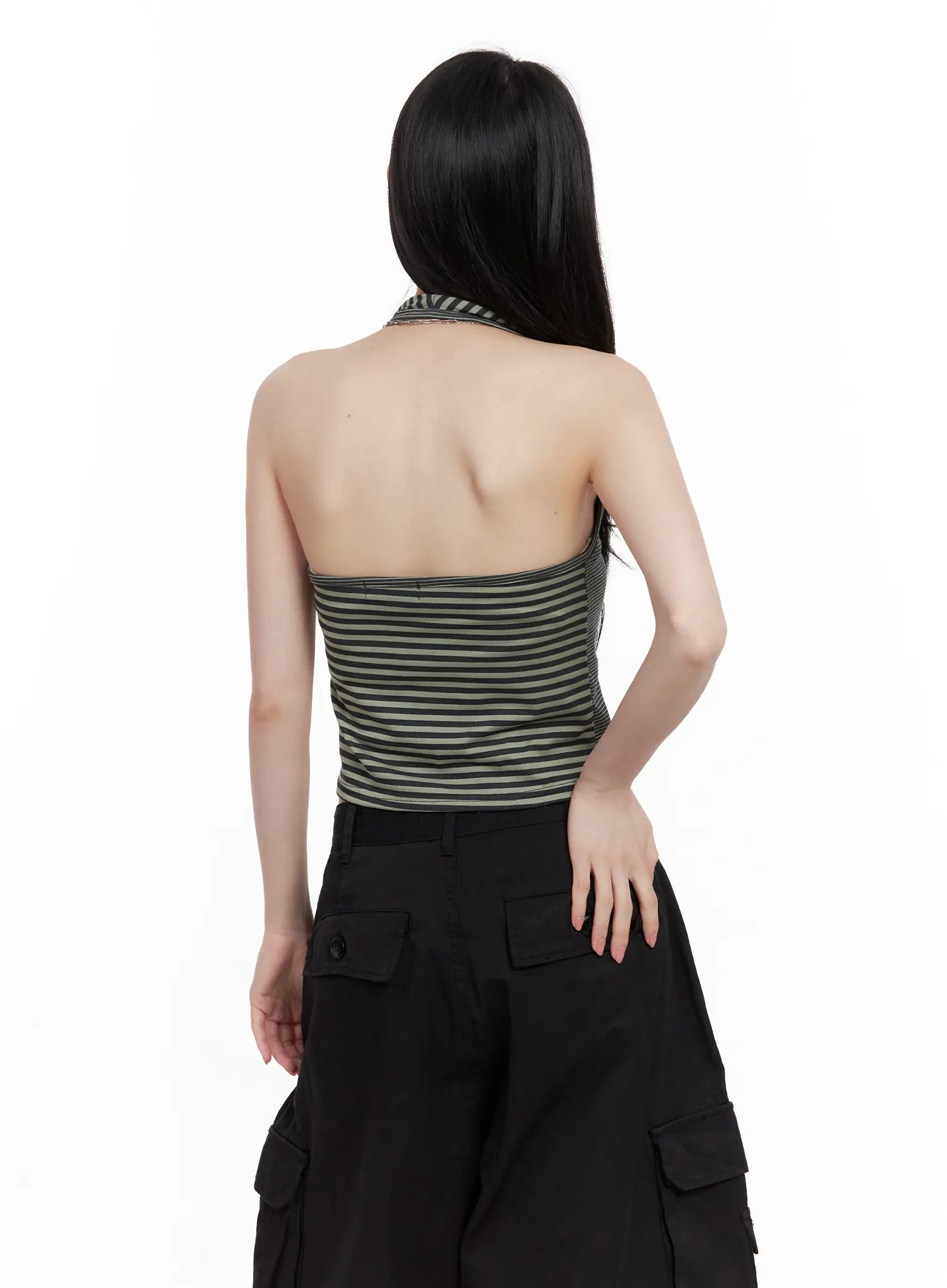 Ruched Striped Halter Top CU530