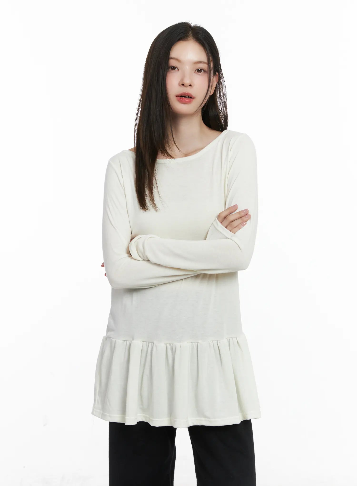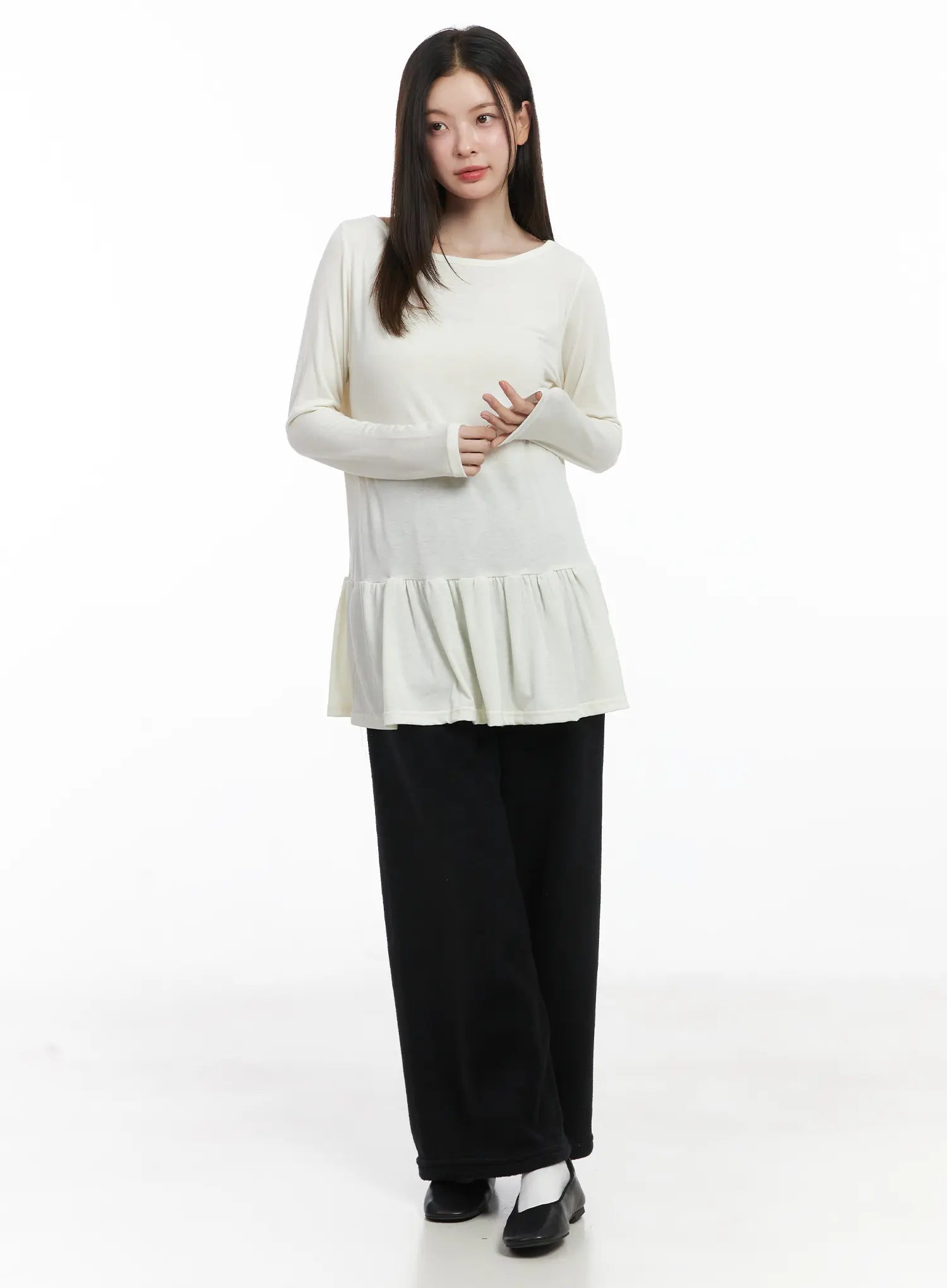 Ruffle Hem Loose Long Sleeve Top CJ506