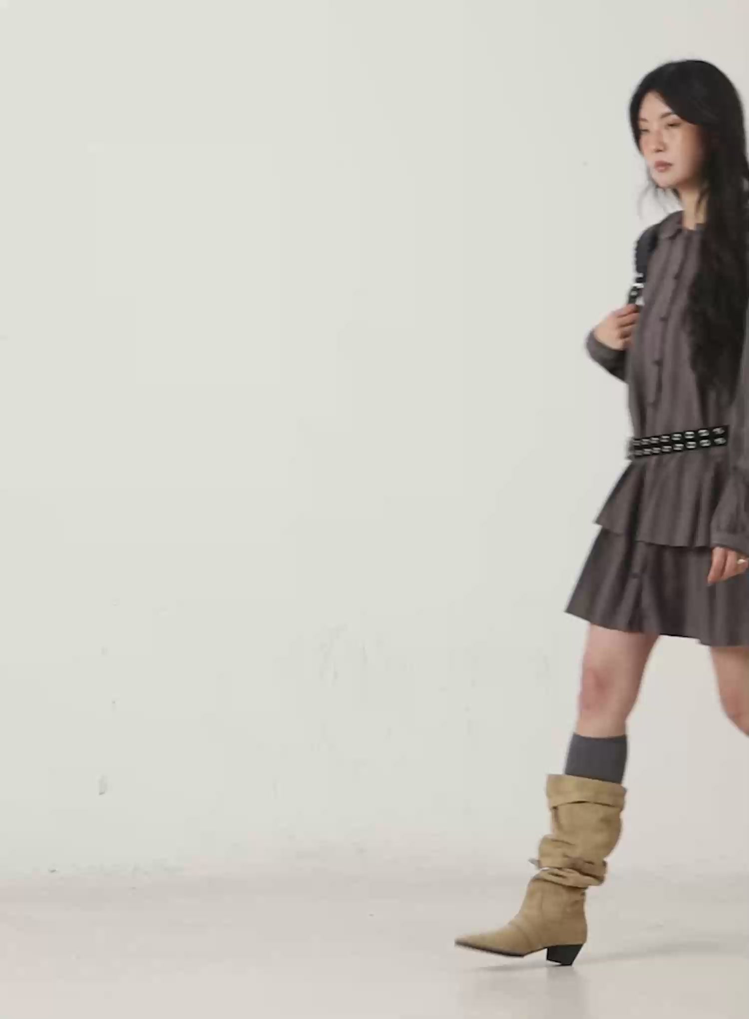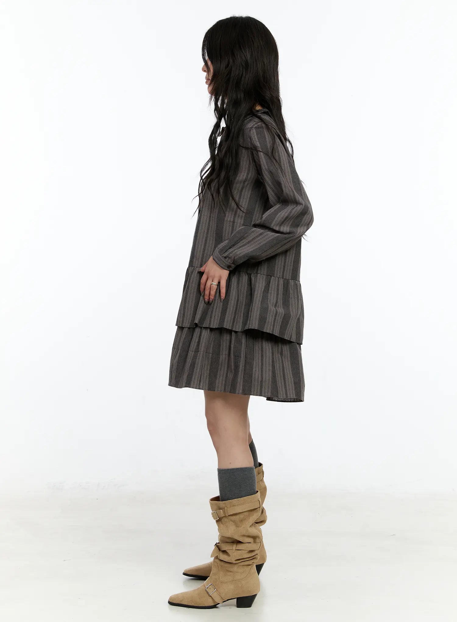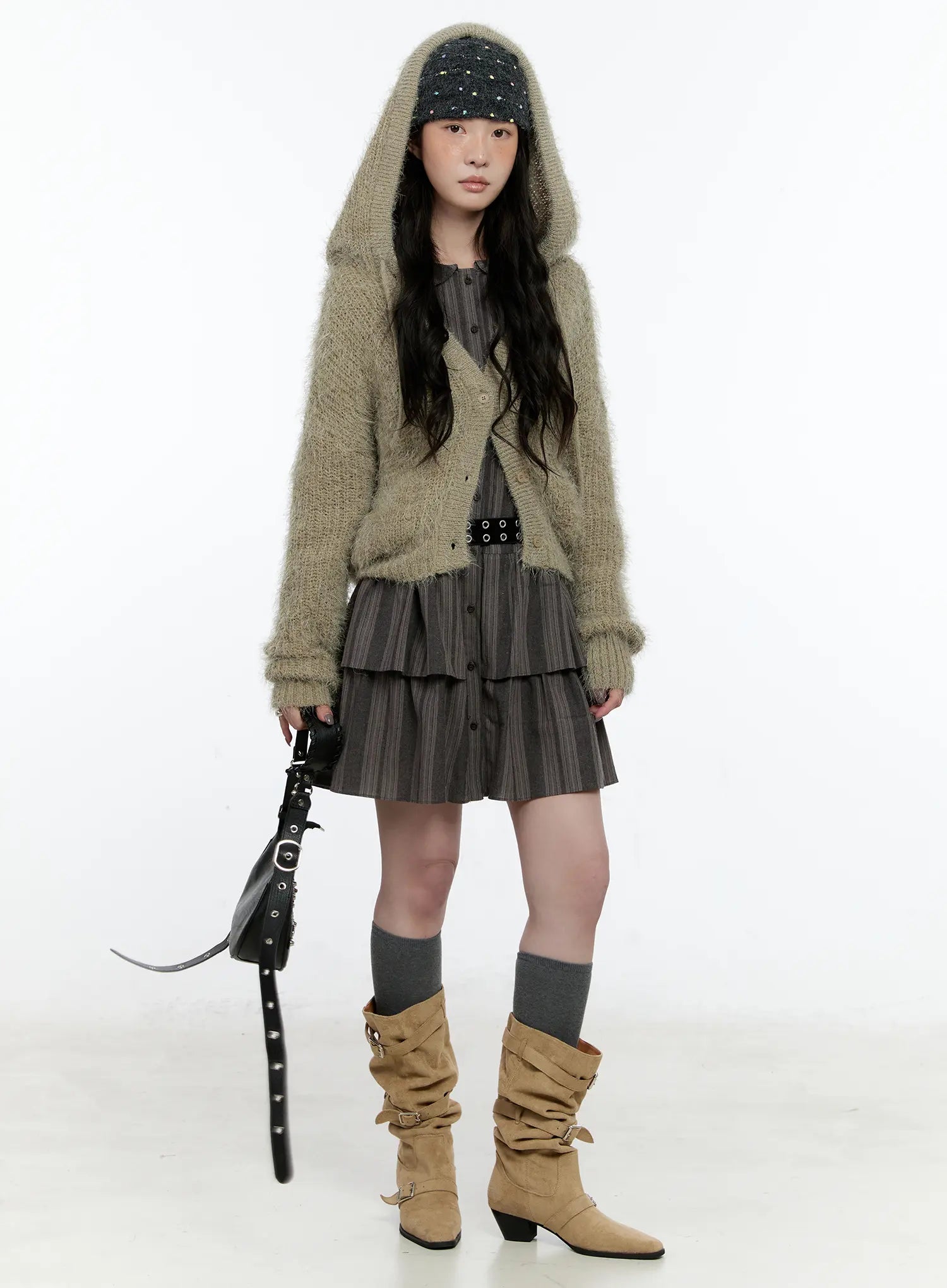 Model is wearing size S/M and the color Dark beige.