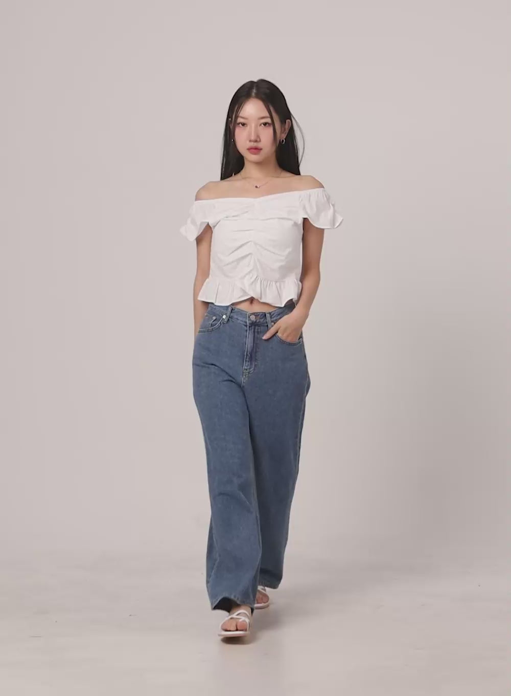 Ruffle Off-Shoulder Crop Blouse OU407