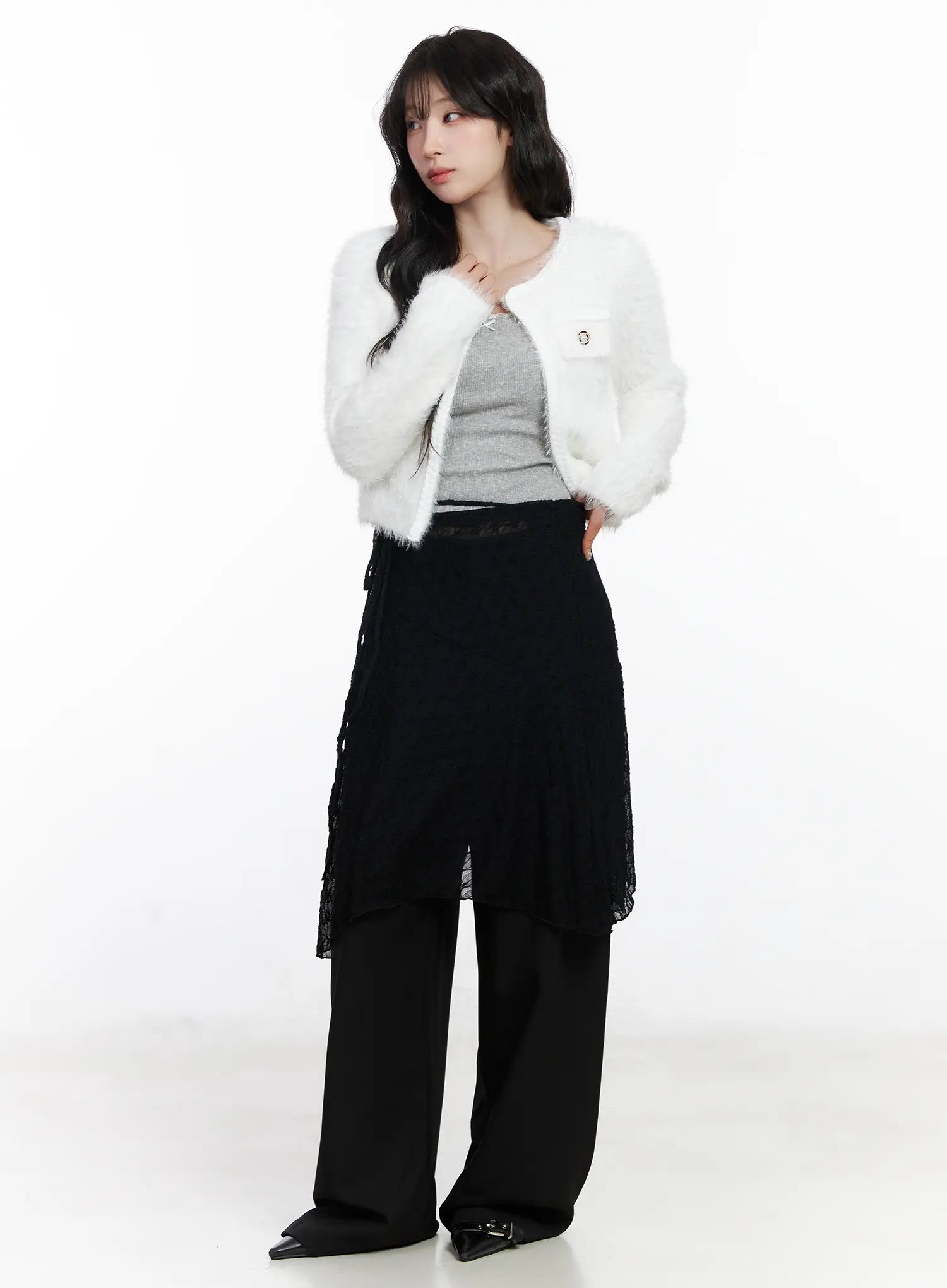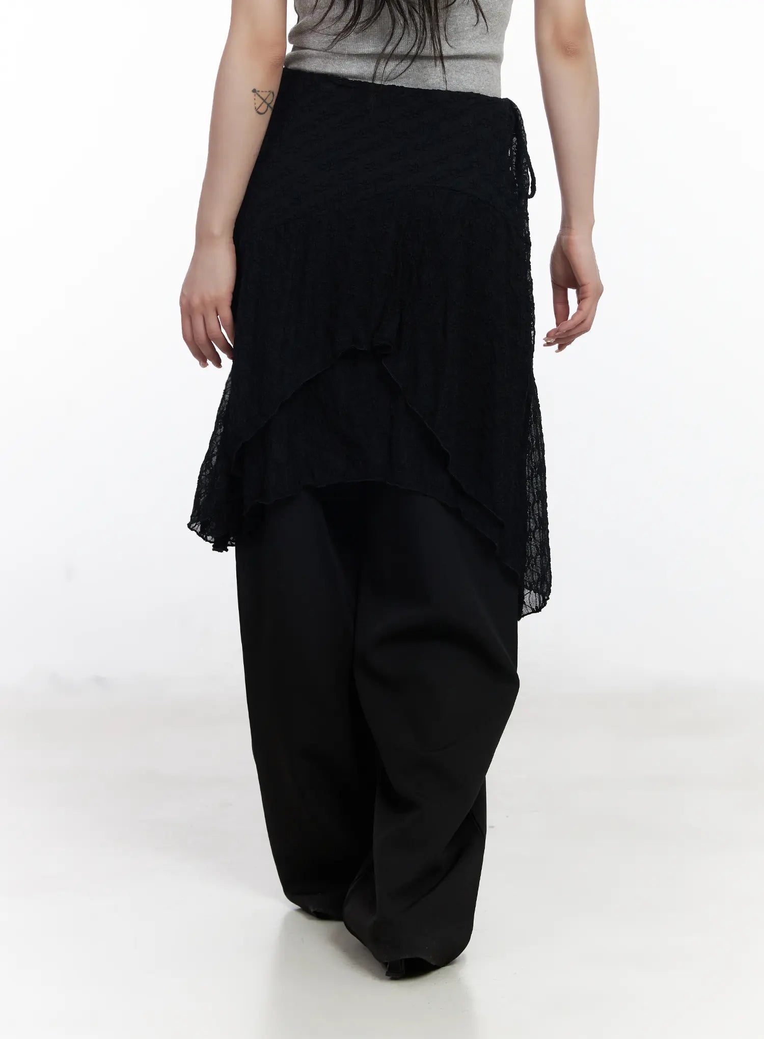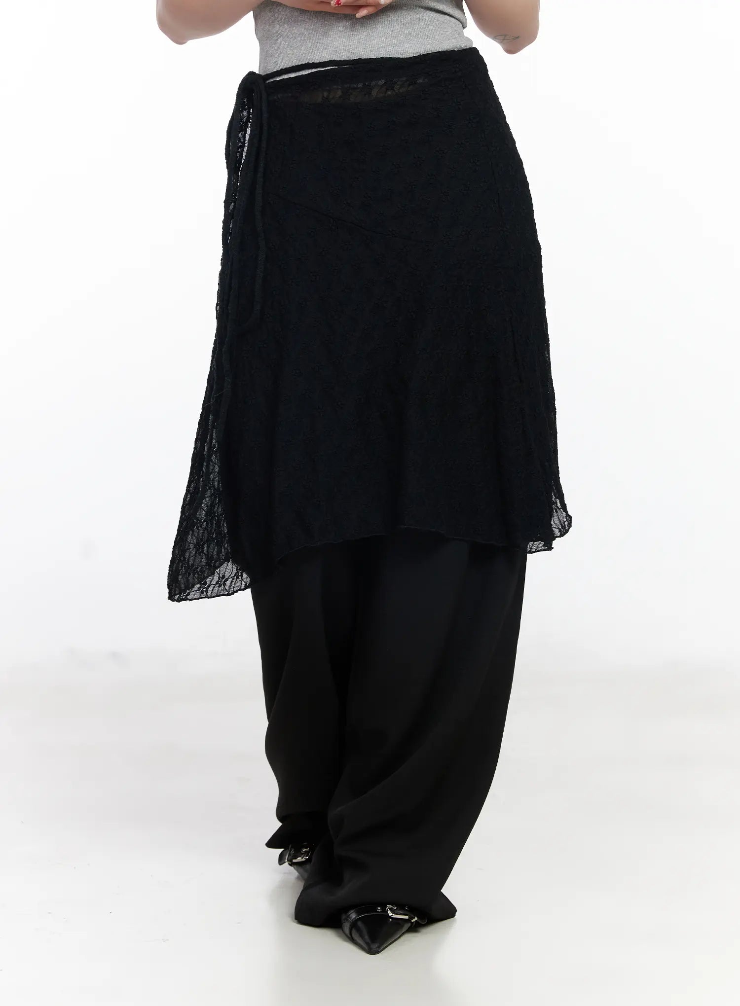 Sheer Floral Wrap Midi Skirt CJ526
