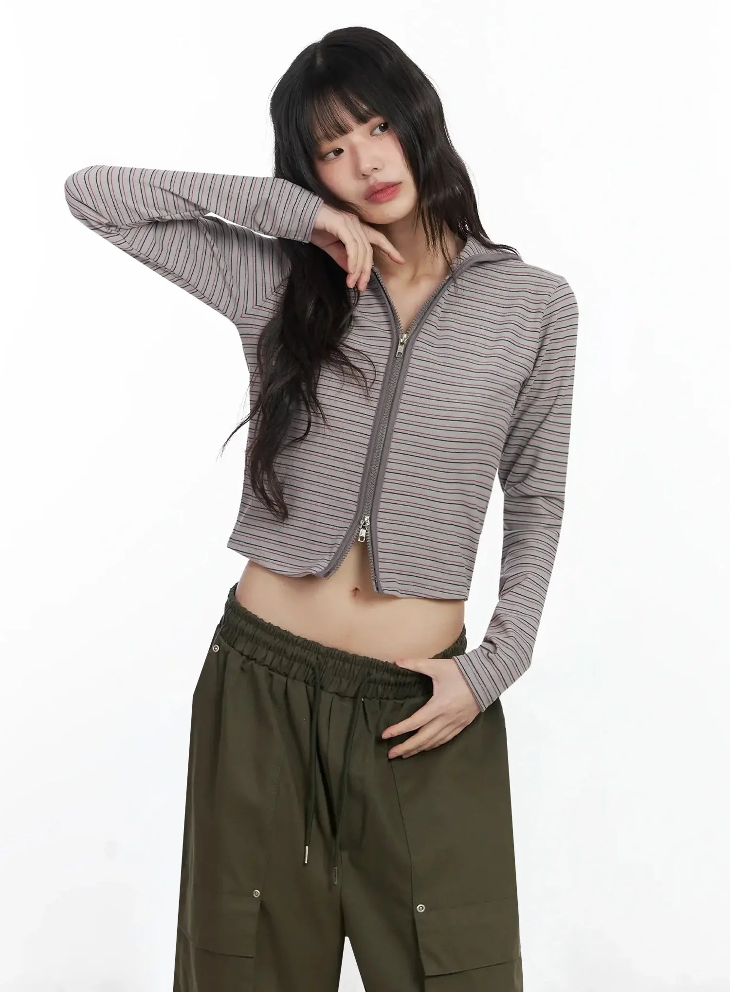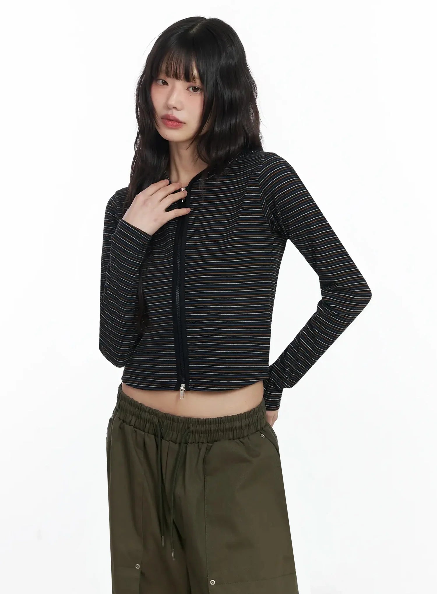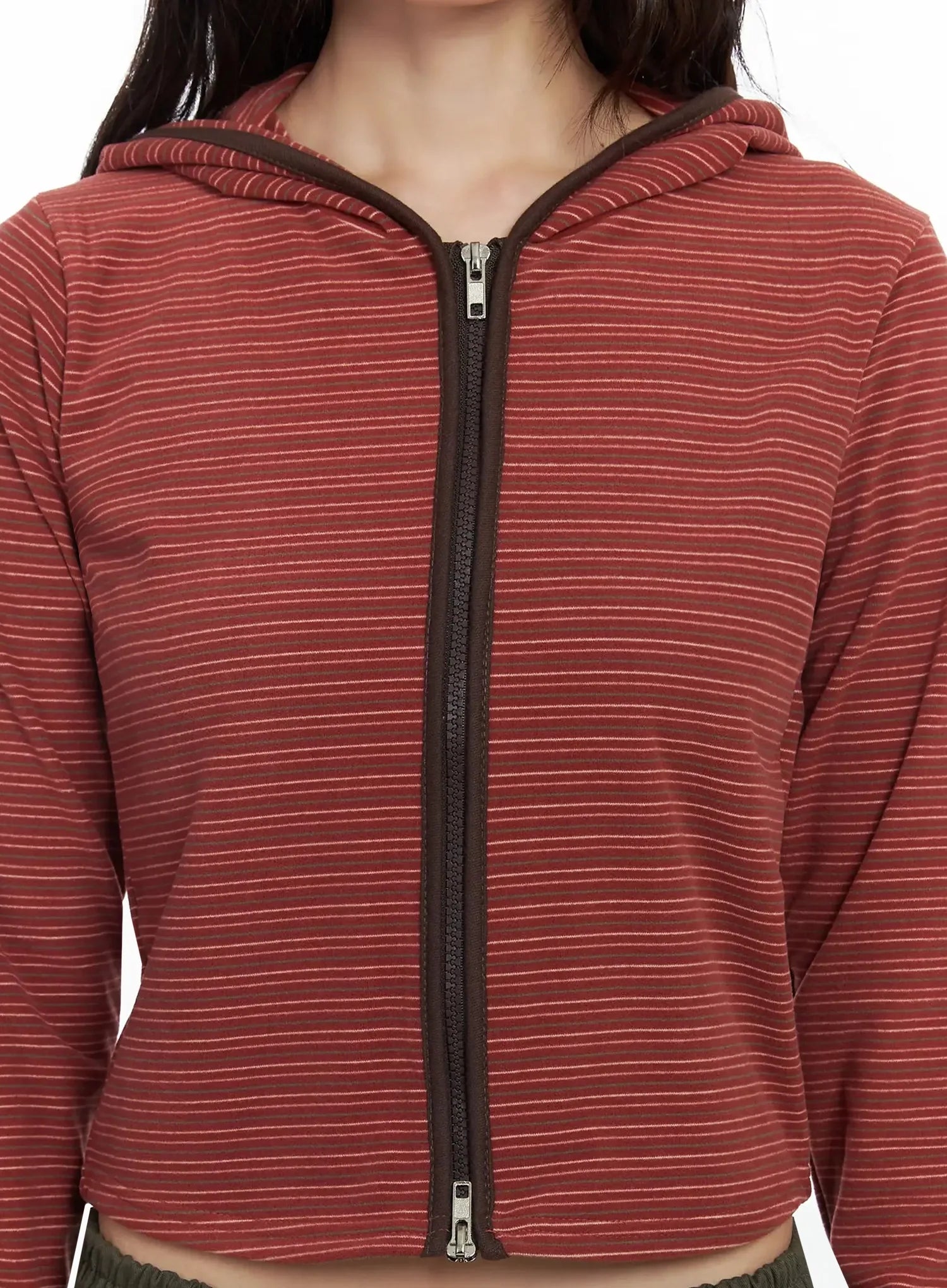 Slim Fit Striped Zip-Up Hoodie F516
