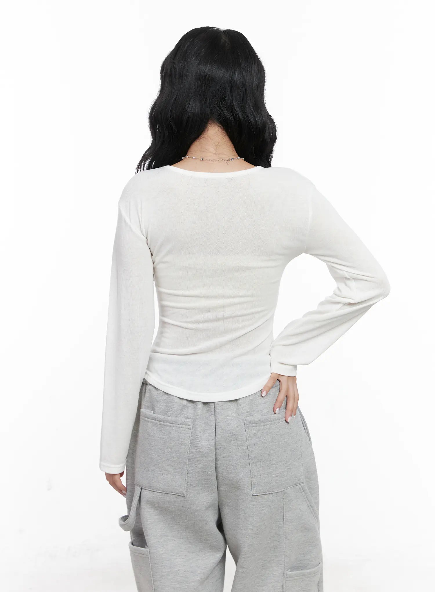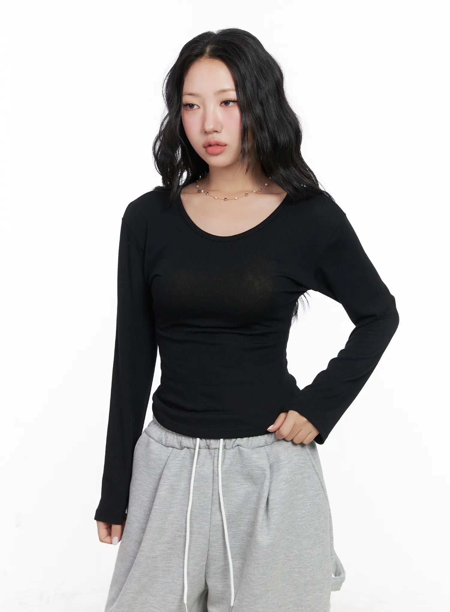 Slim Fit U-Neck Long Sleeve Top CN514