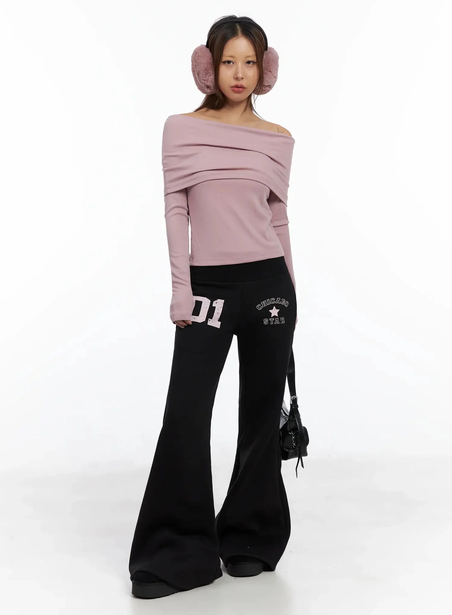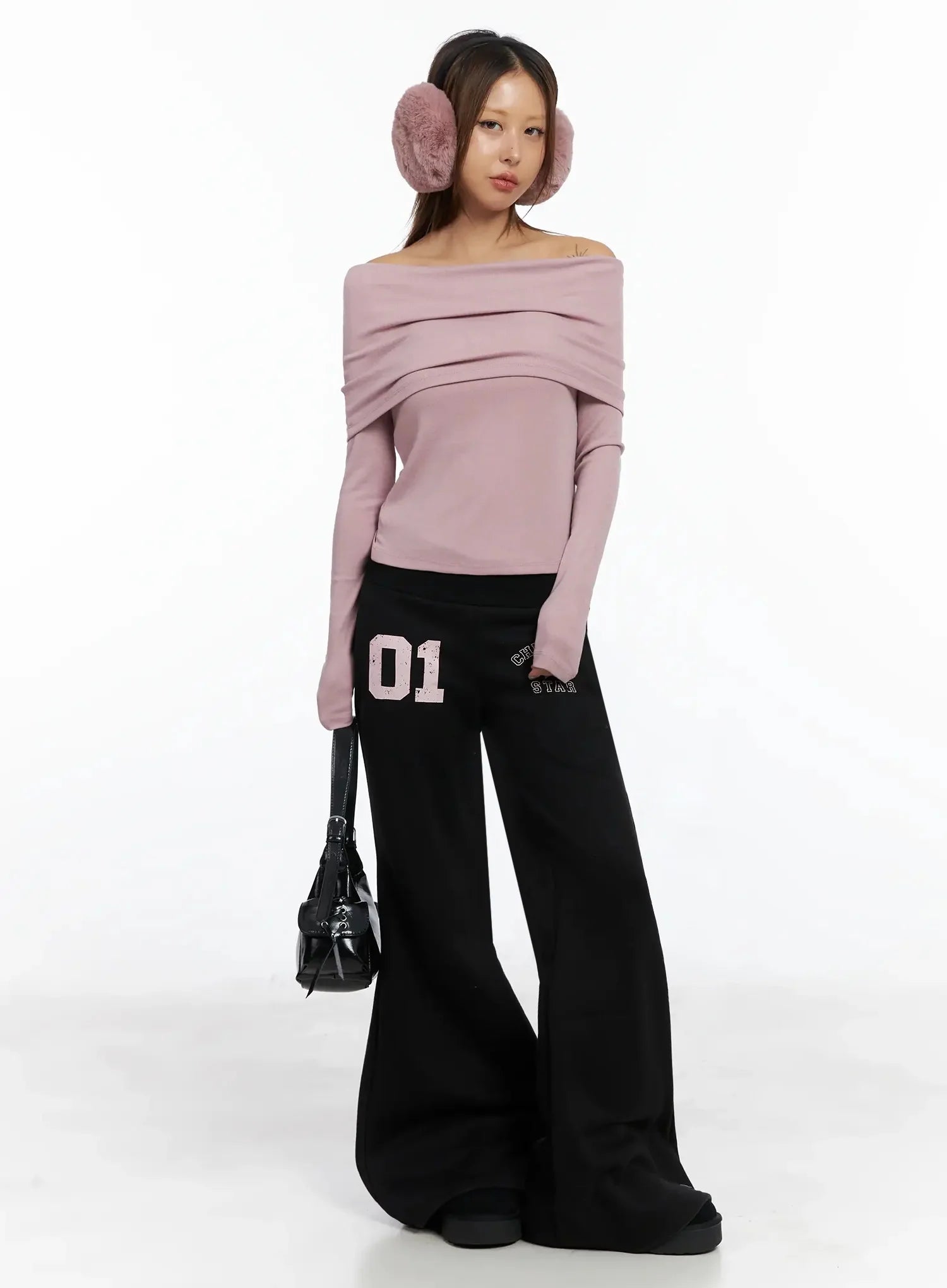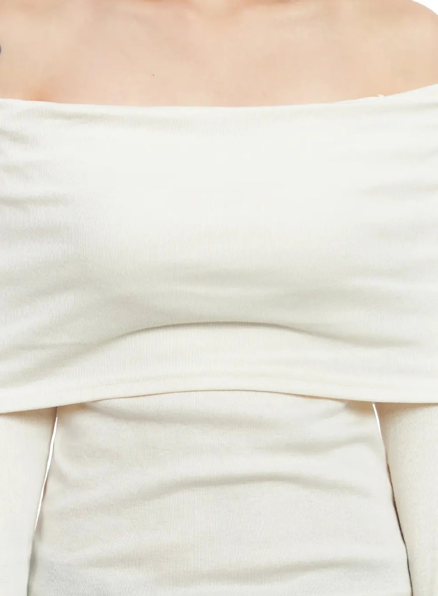 Slim Off-Shoulder Long Sleeve Tee IN528