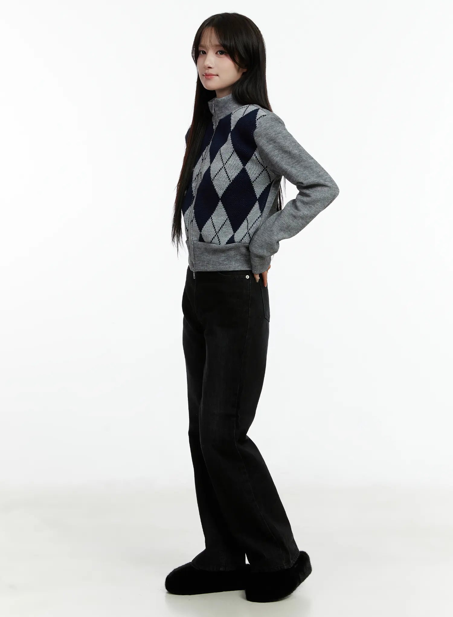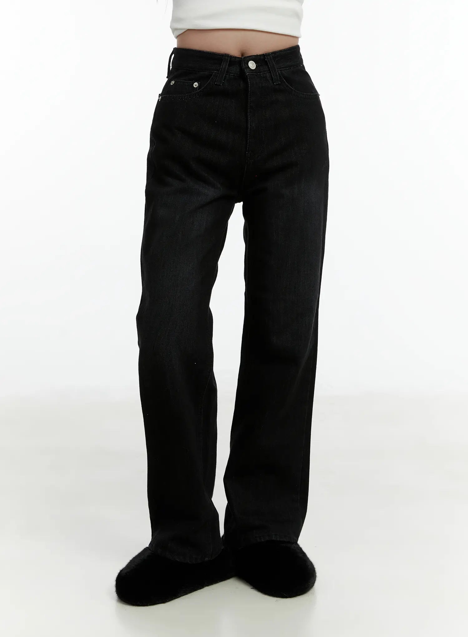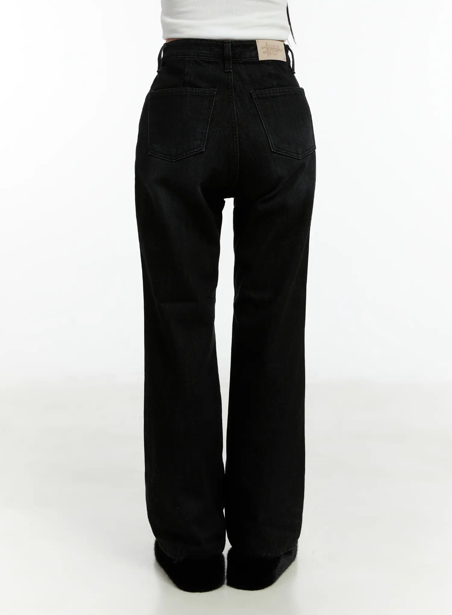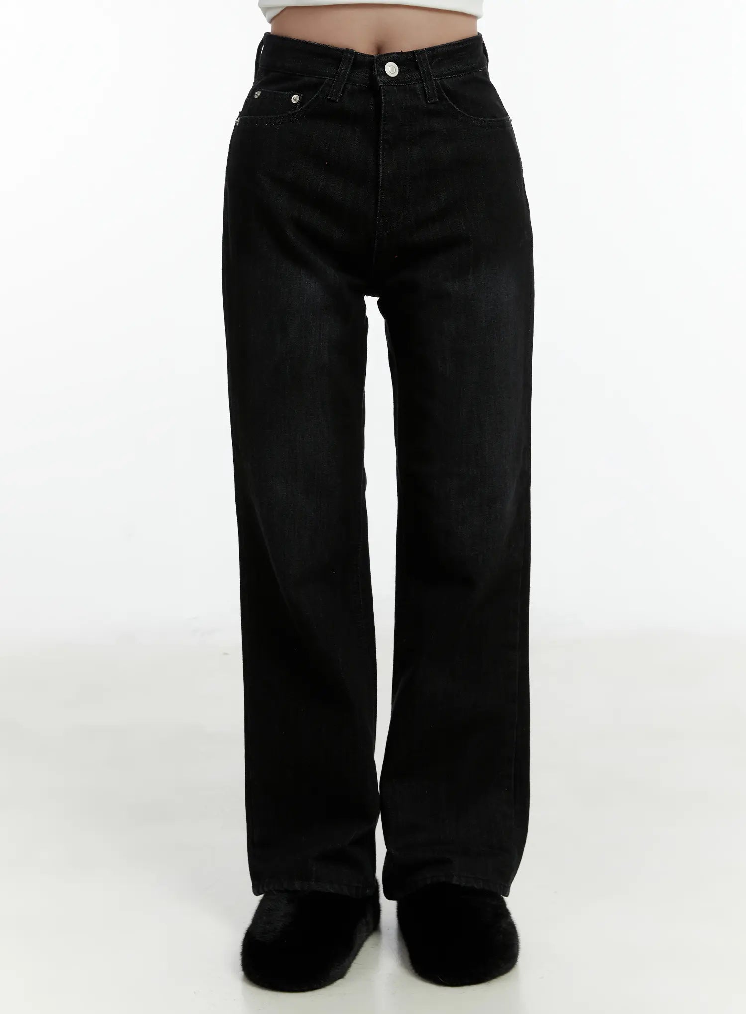 Sole Fleece-Lined Washed High-Waist Bootcut Jeans CD523