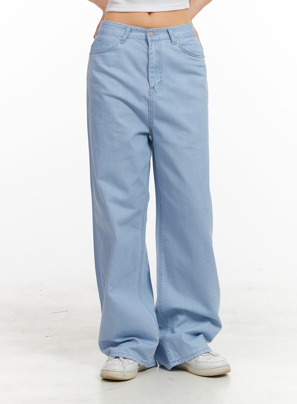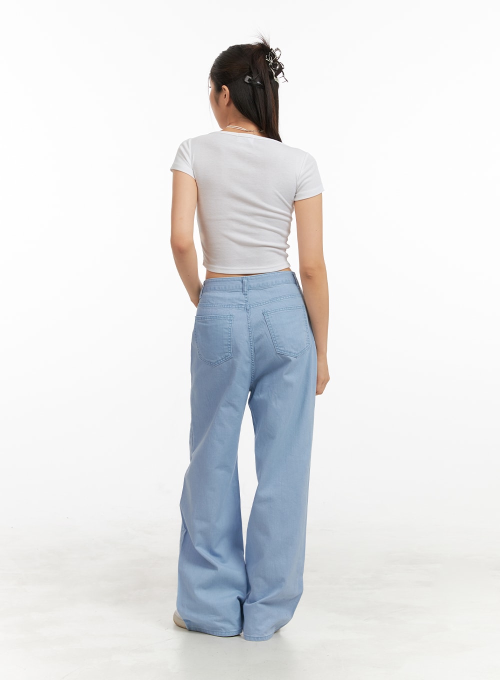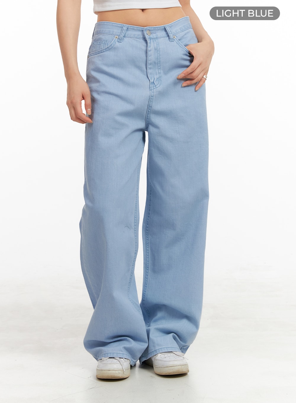 Solid Cotton Loose Fit Straight Jeans OA429