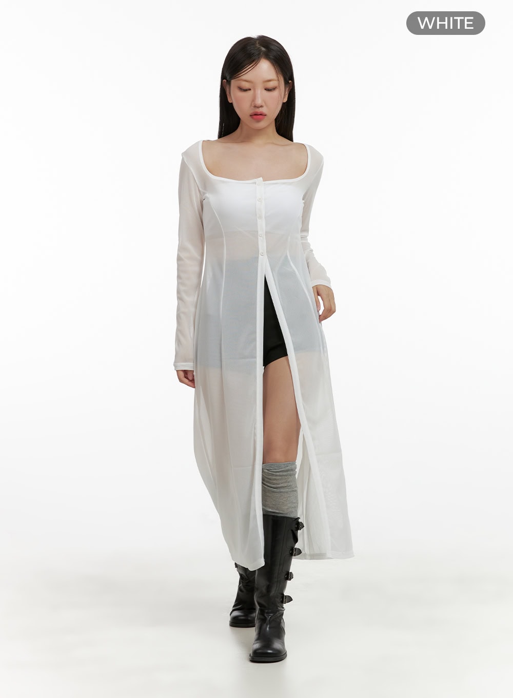 Square Neck Sheer Cardigan CU407