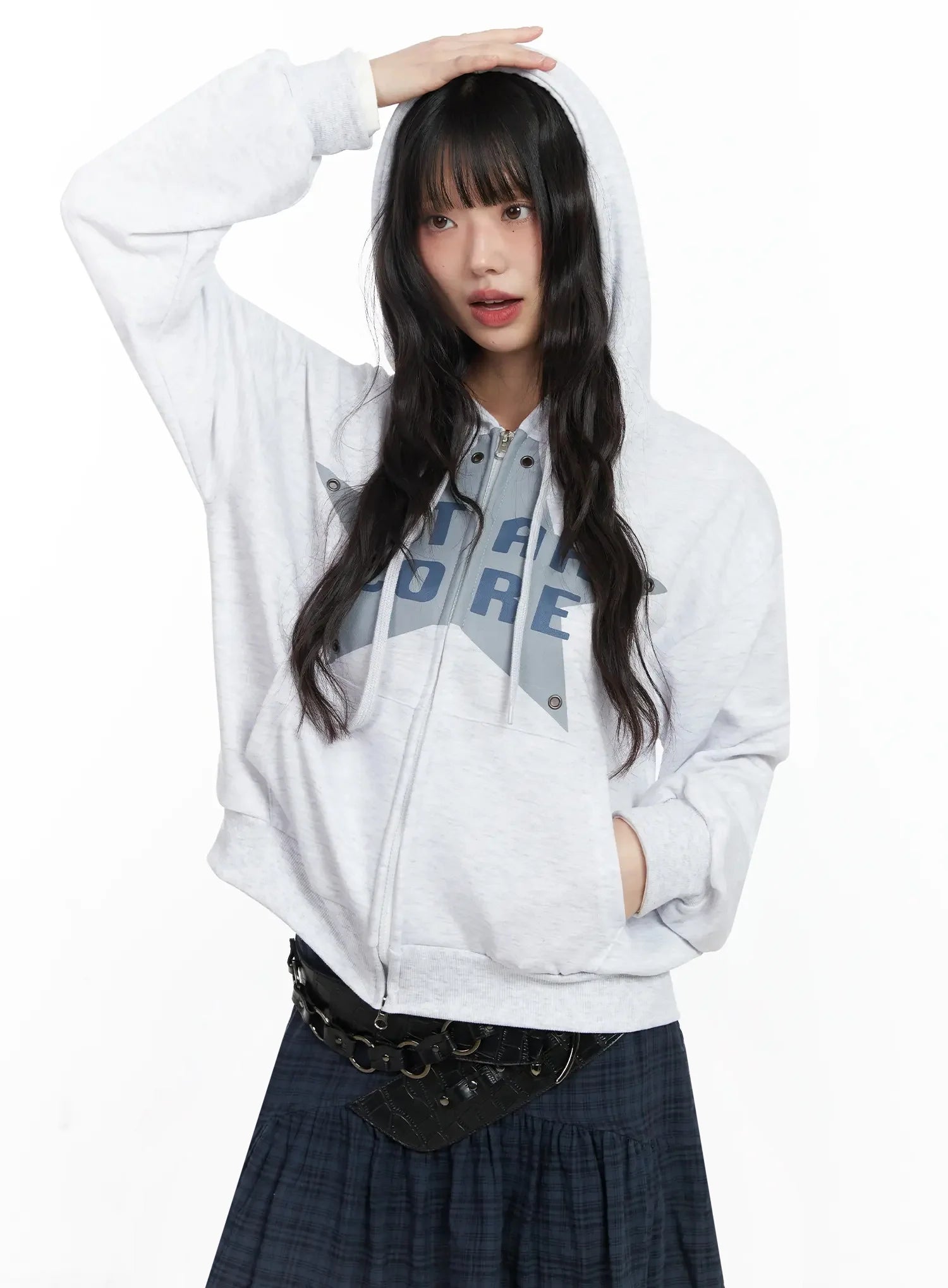 Star Core Eyelet Graphic Hoodie IF505