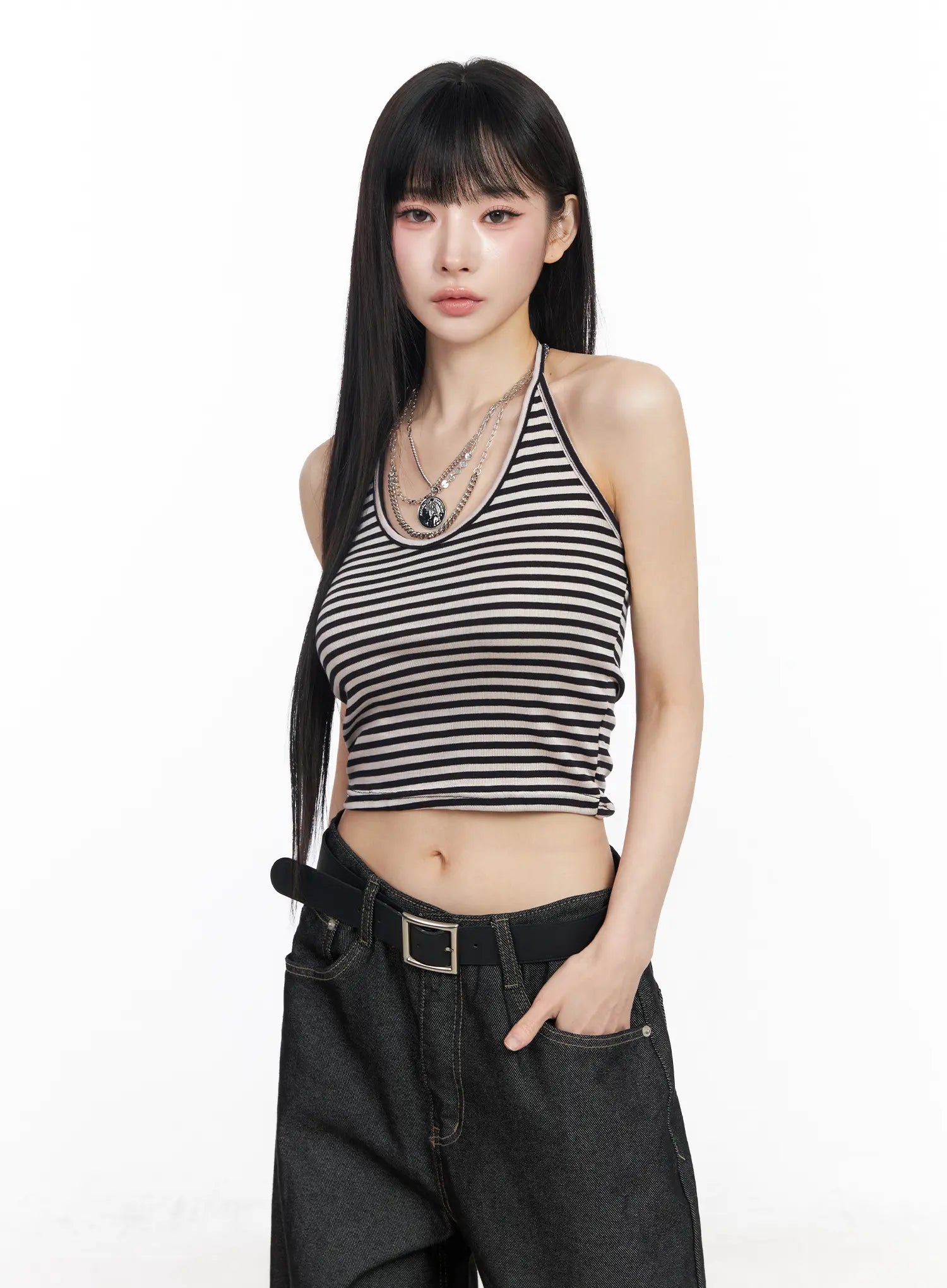 Striped Halter Crop Top CF519