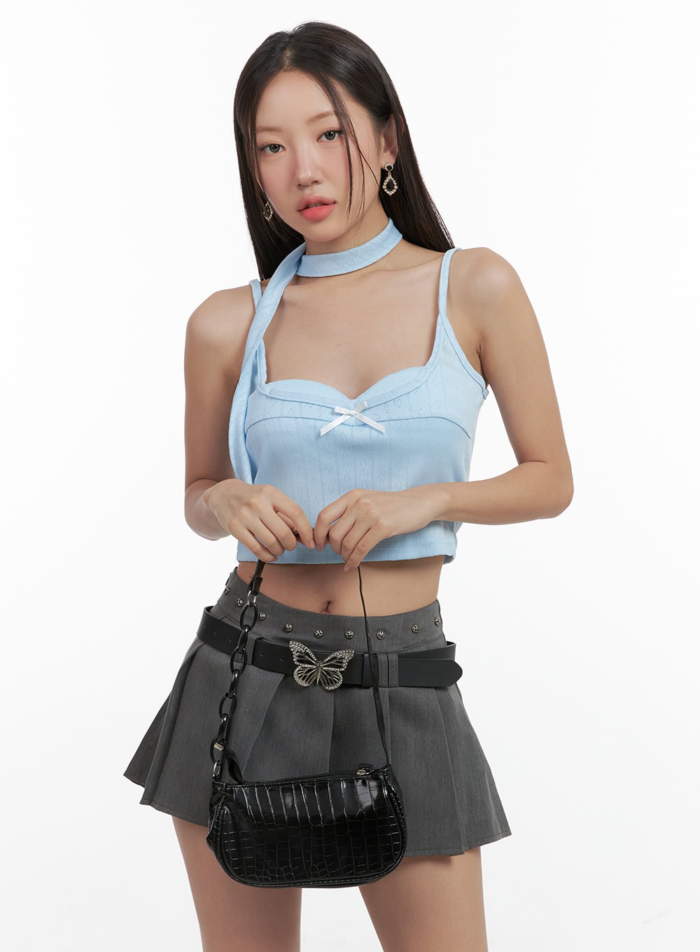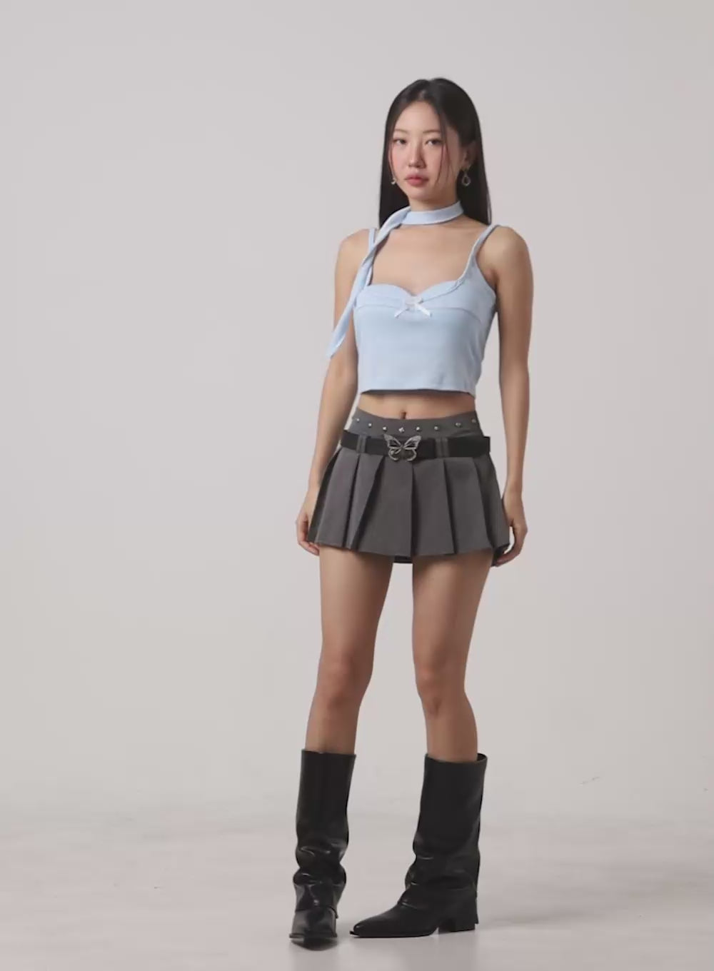 Sweetheart Ribbon Crop Top with Scarf Set OG407