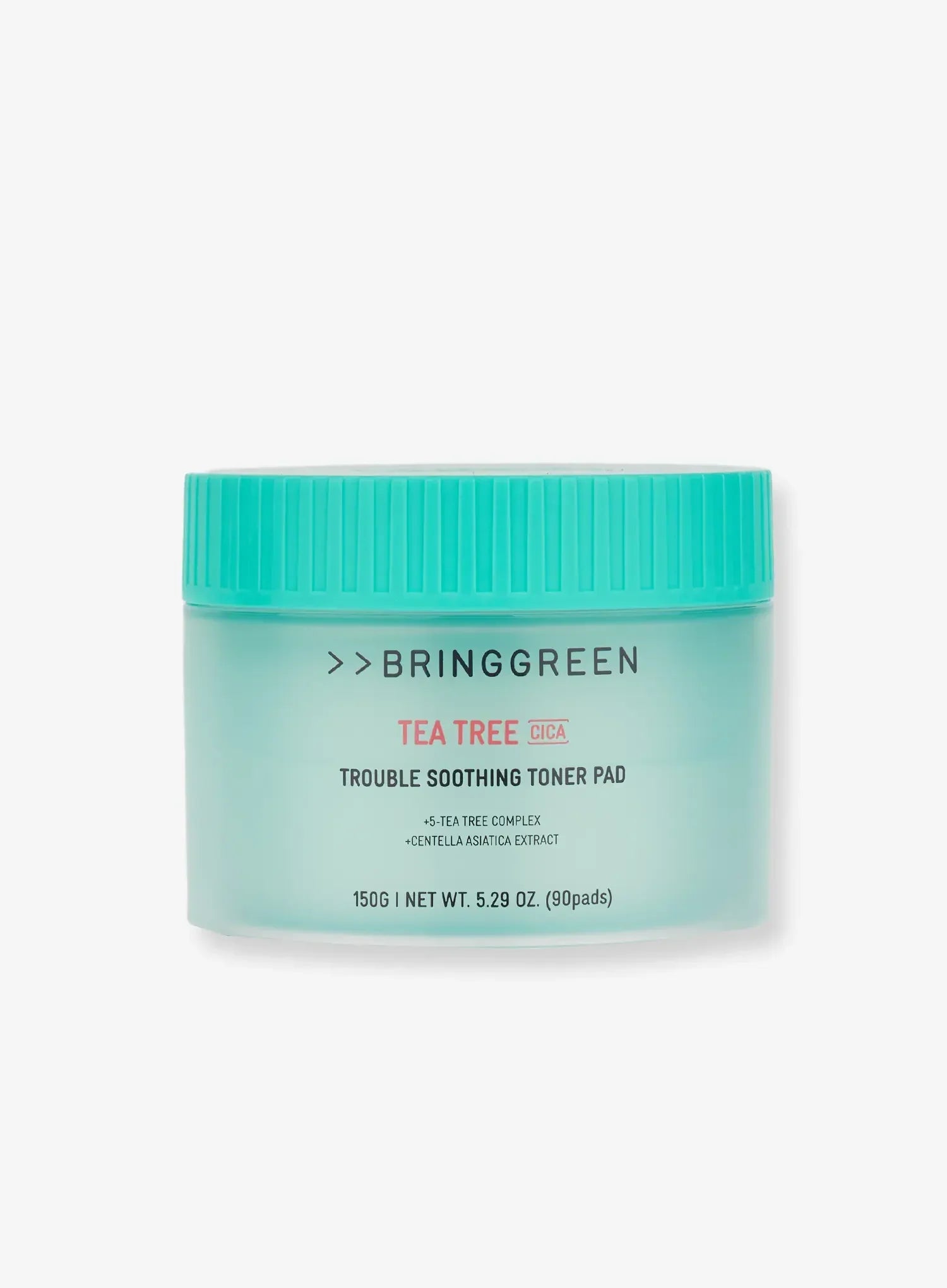 Hydrating toner pads that soothe and cool skin with tea tree and cica.