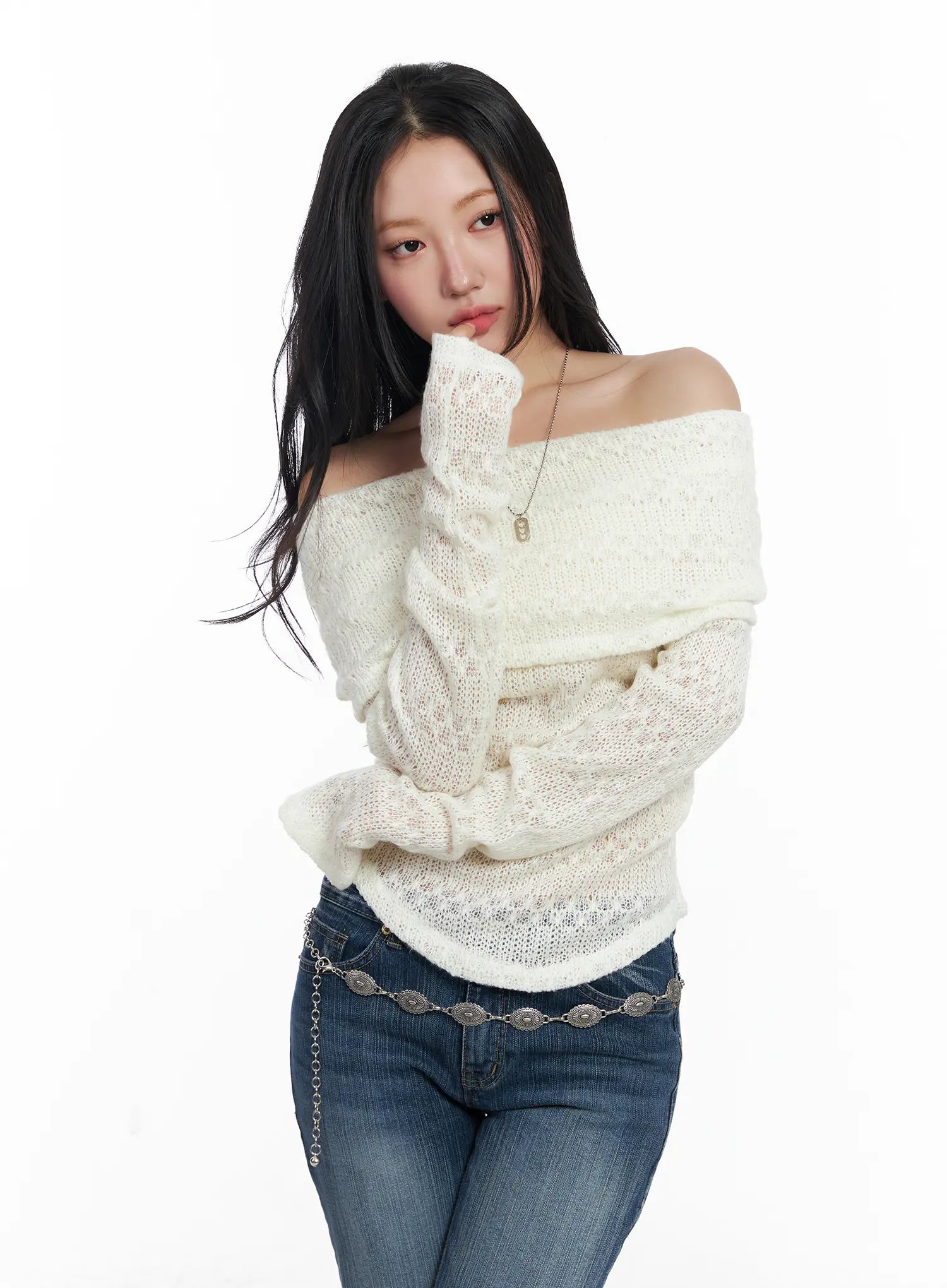 Textured Off-Shoulder Knit Top CJ514