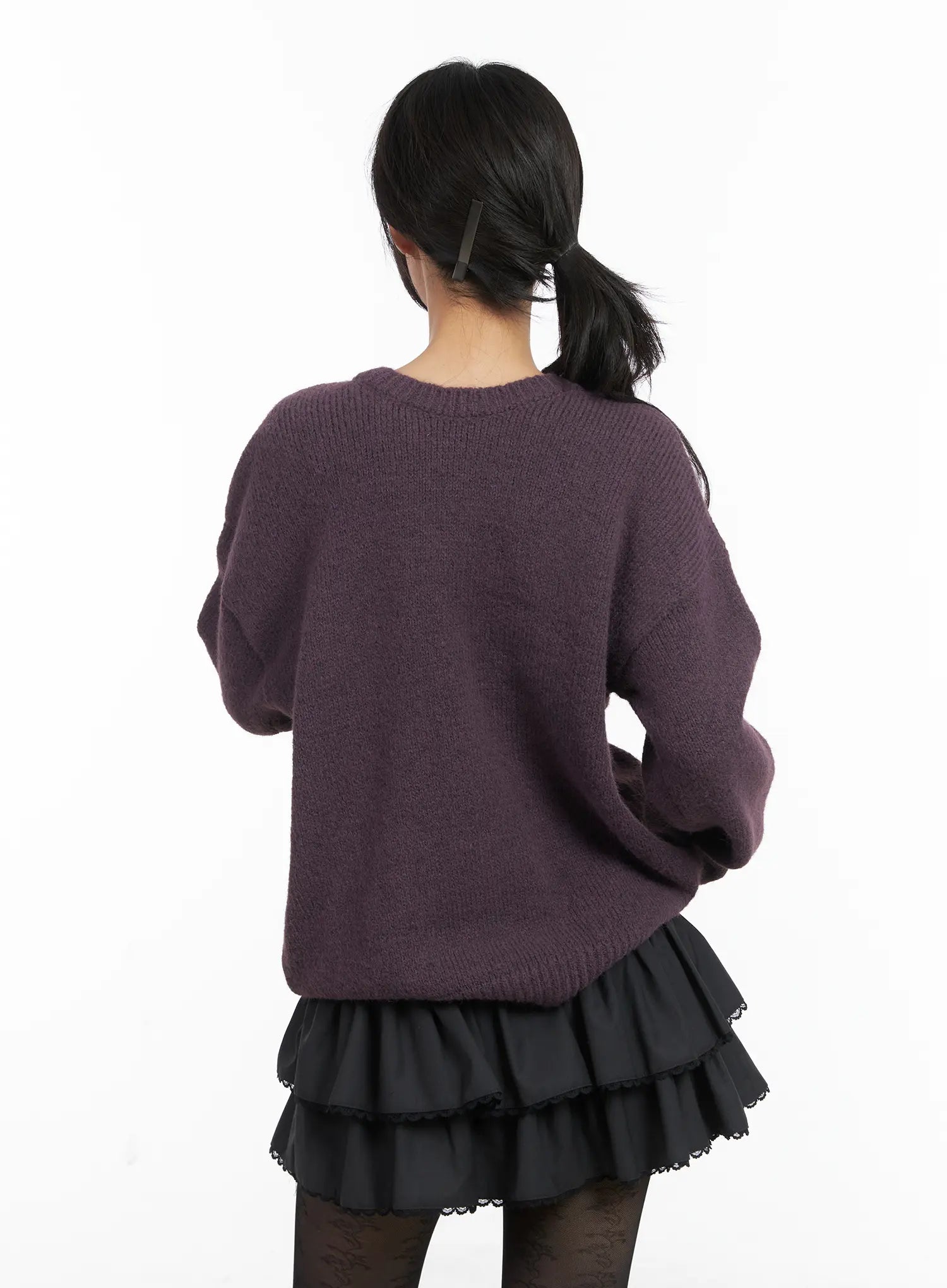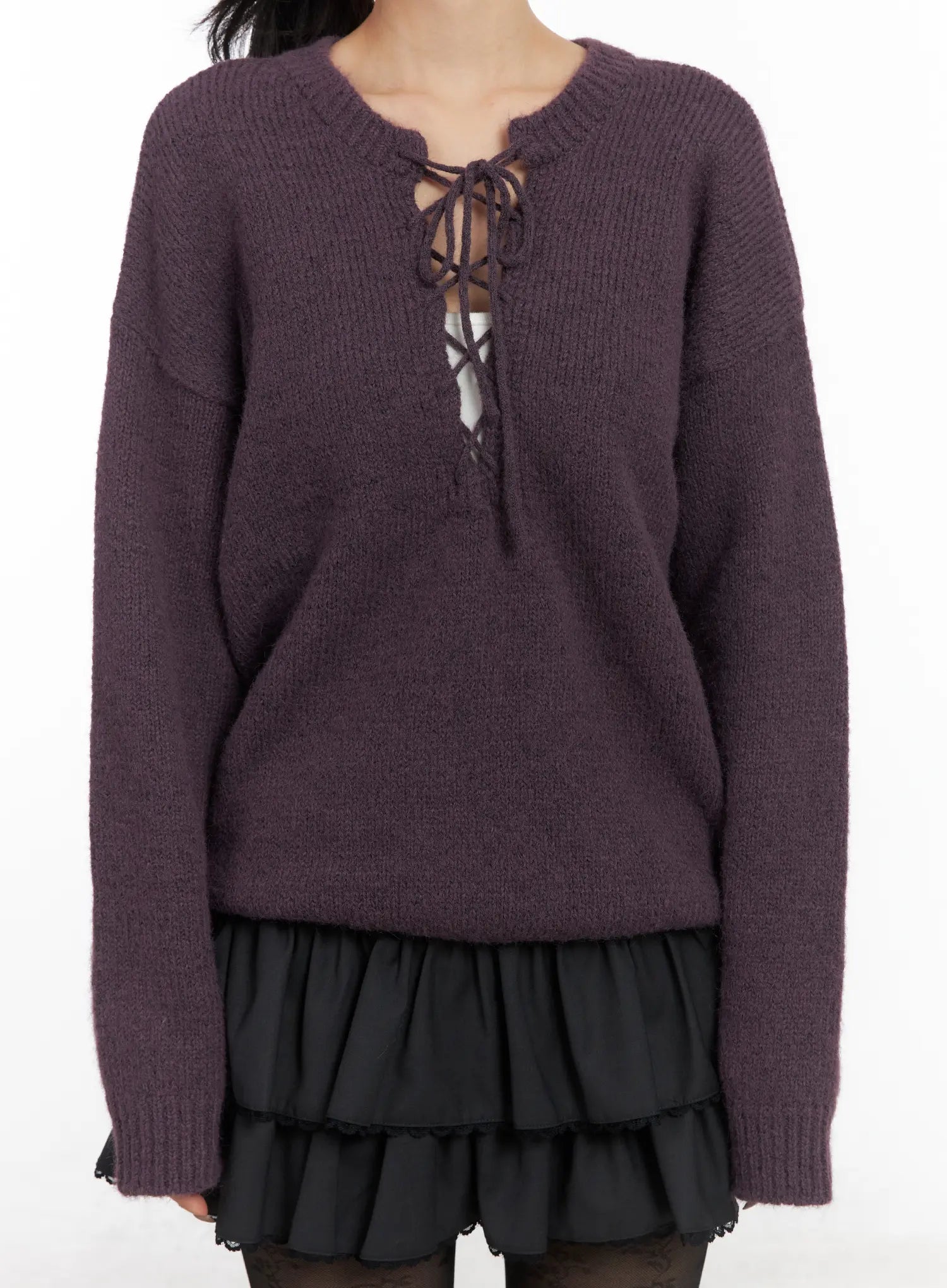 Two-Way Eyelet Lace-Up Knit Sweater CD505
