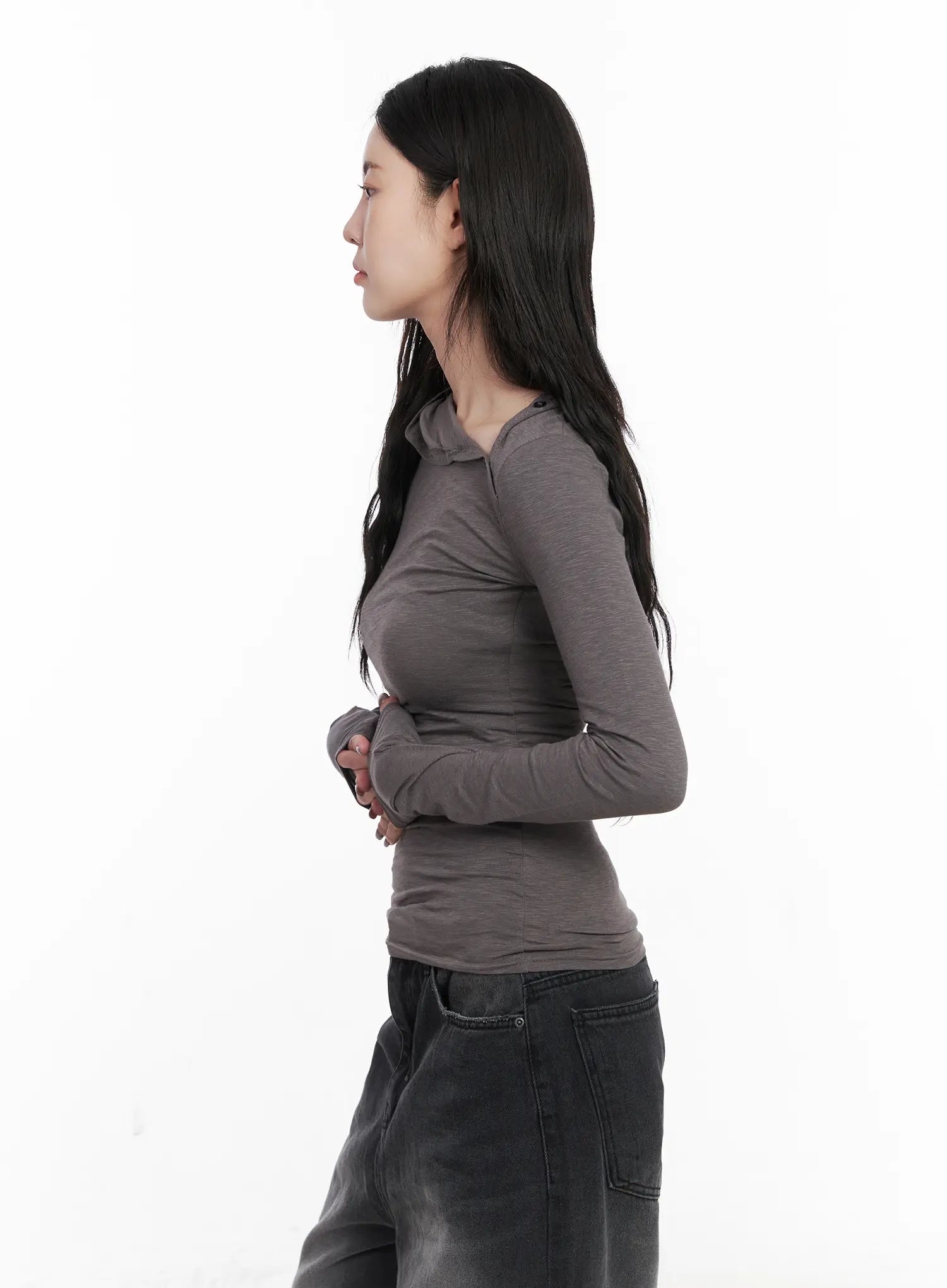 Unsymmetrical Neck Long Sleeve Tee CN513