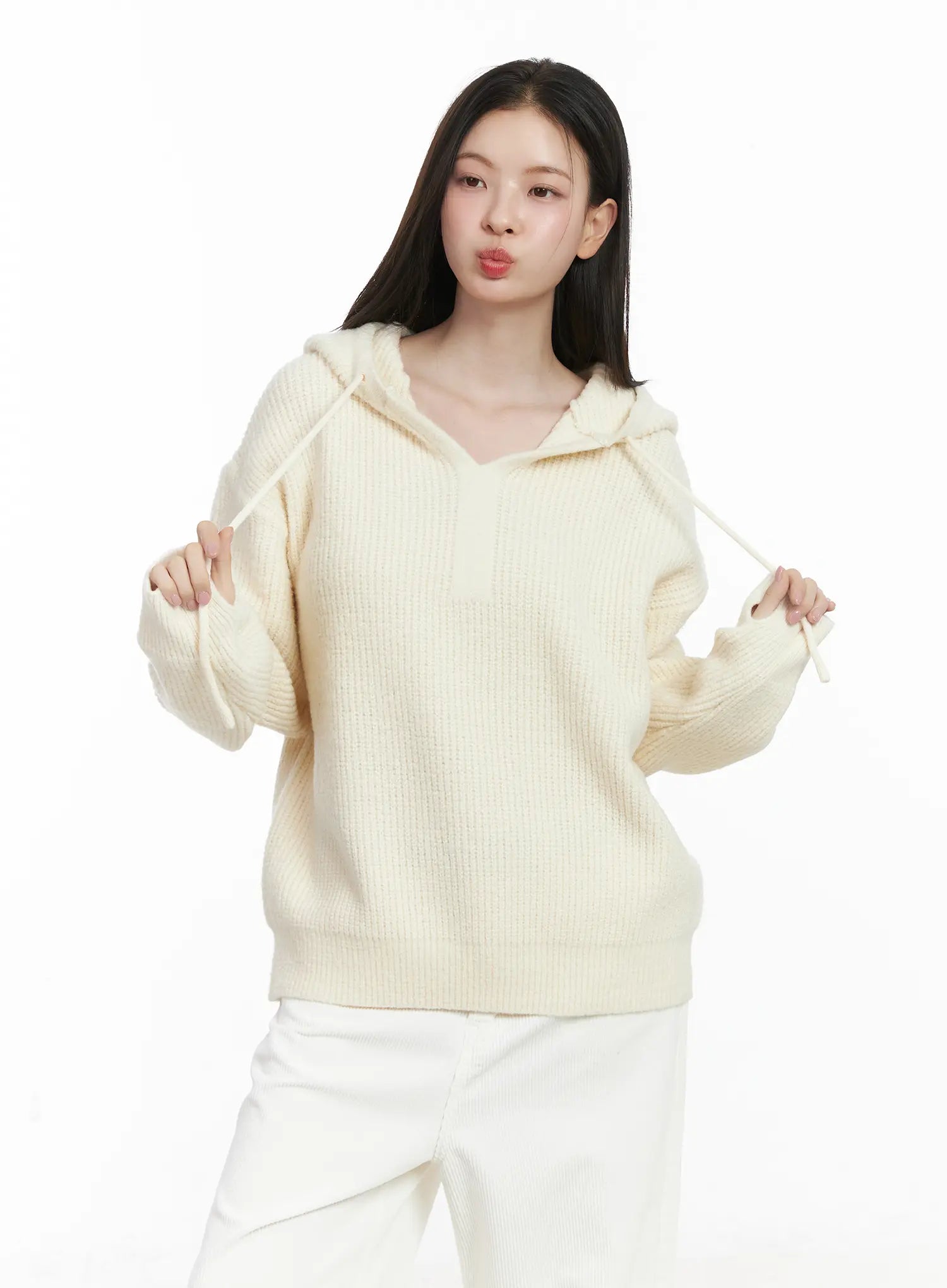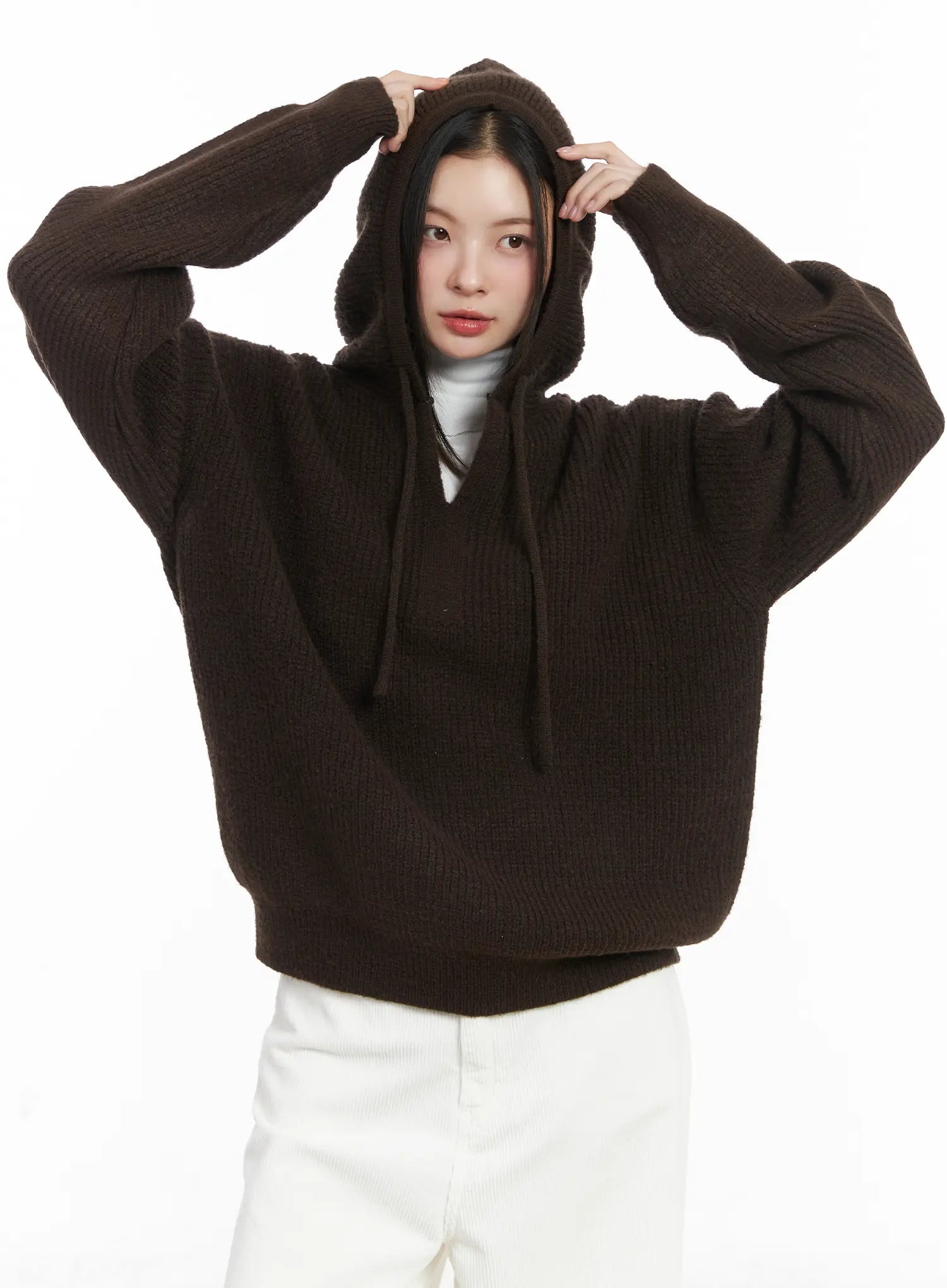 V-Neck Knit Hoodie CJ507