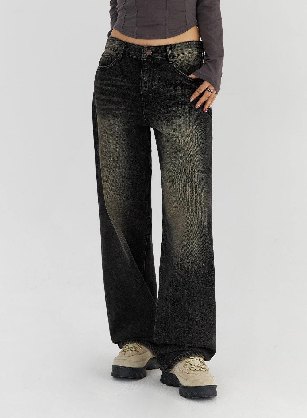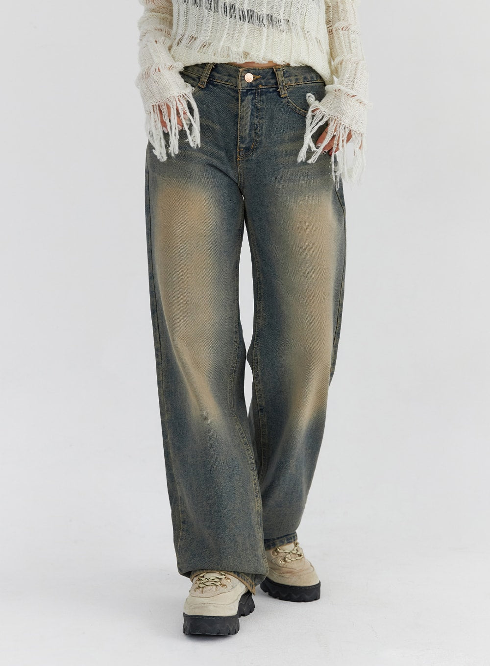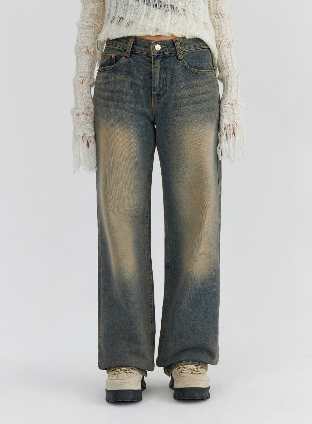 Washed Straight Leg Jeans CS326