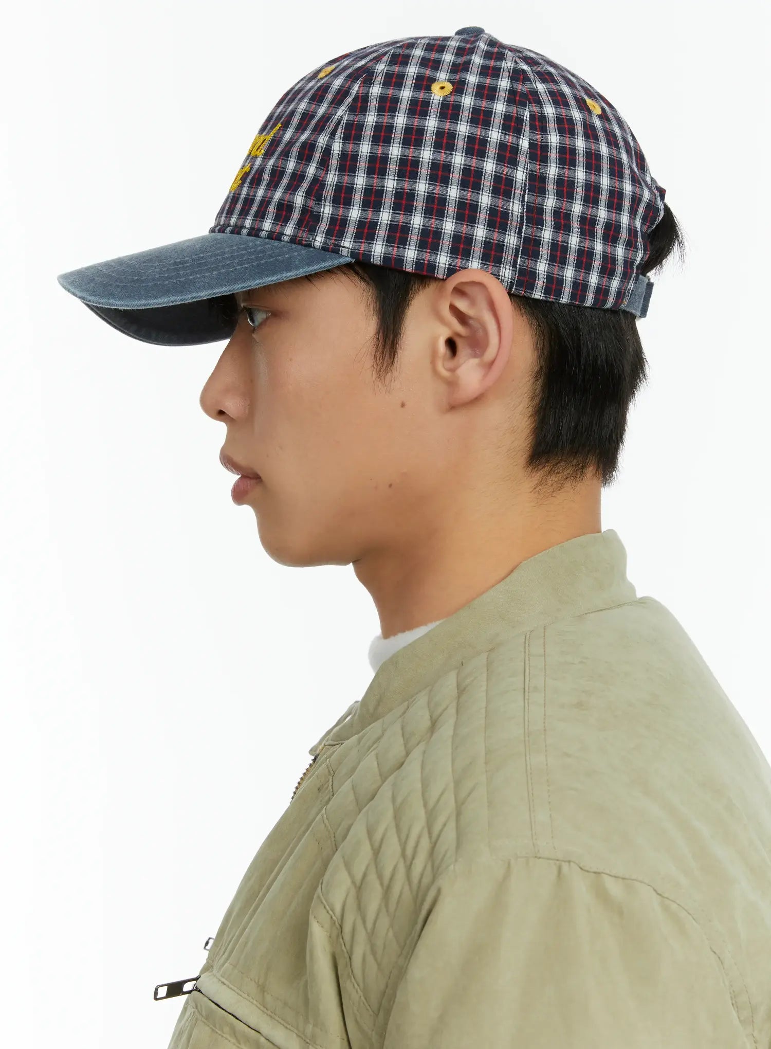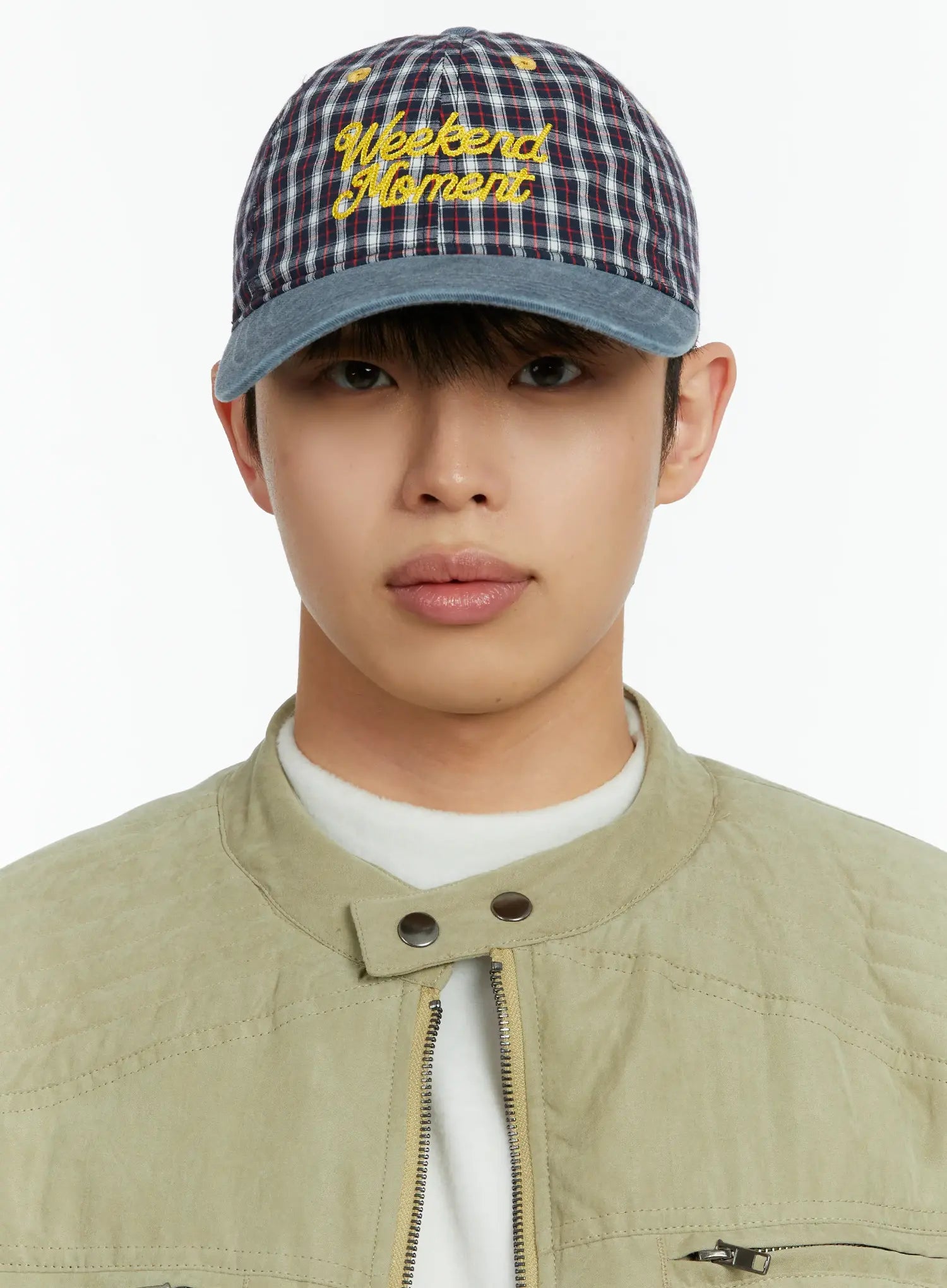 "Weekend Moment" Embroidered Denim Plaid Baseball Cap IF511