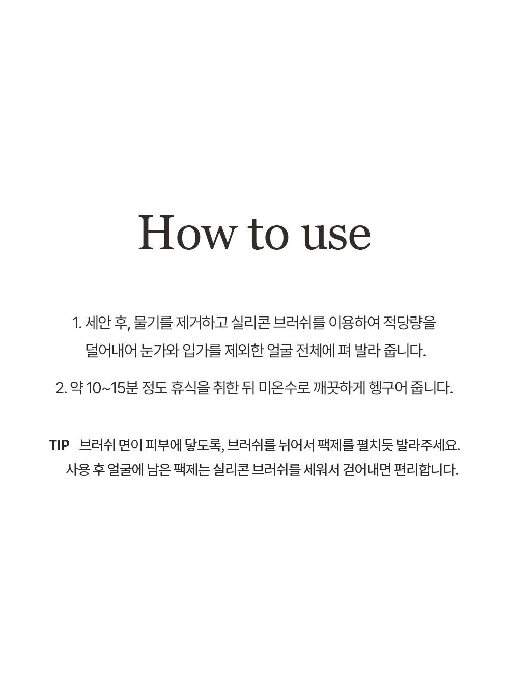 1. After washing your face, remove the moisture from your face and using a silicone brush, take an appropriate amount and spread it over your entire face except for around the eyes and mouth.
