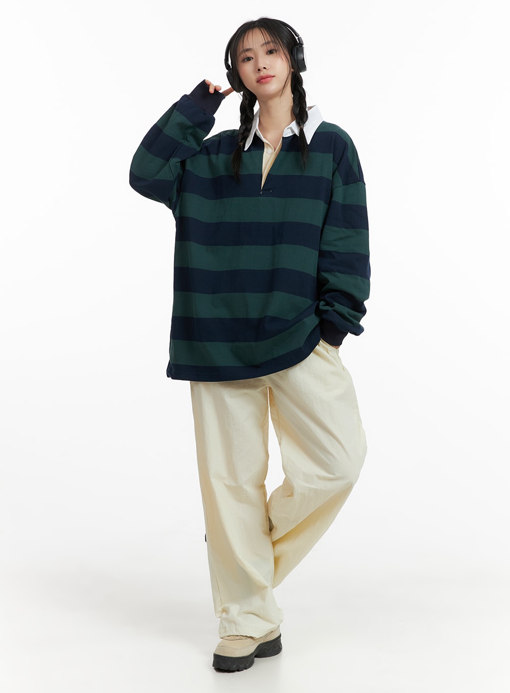 Wide Leg Drawstring Parachute Jogger Pants OM408