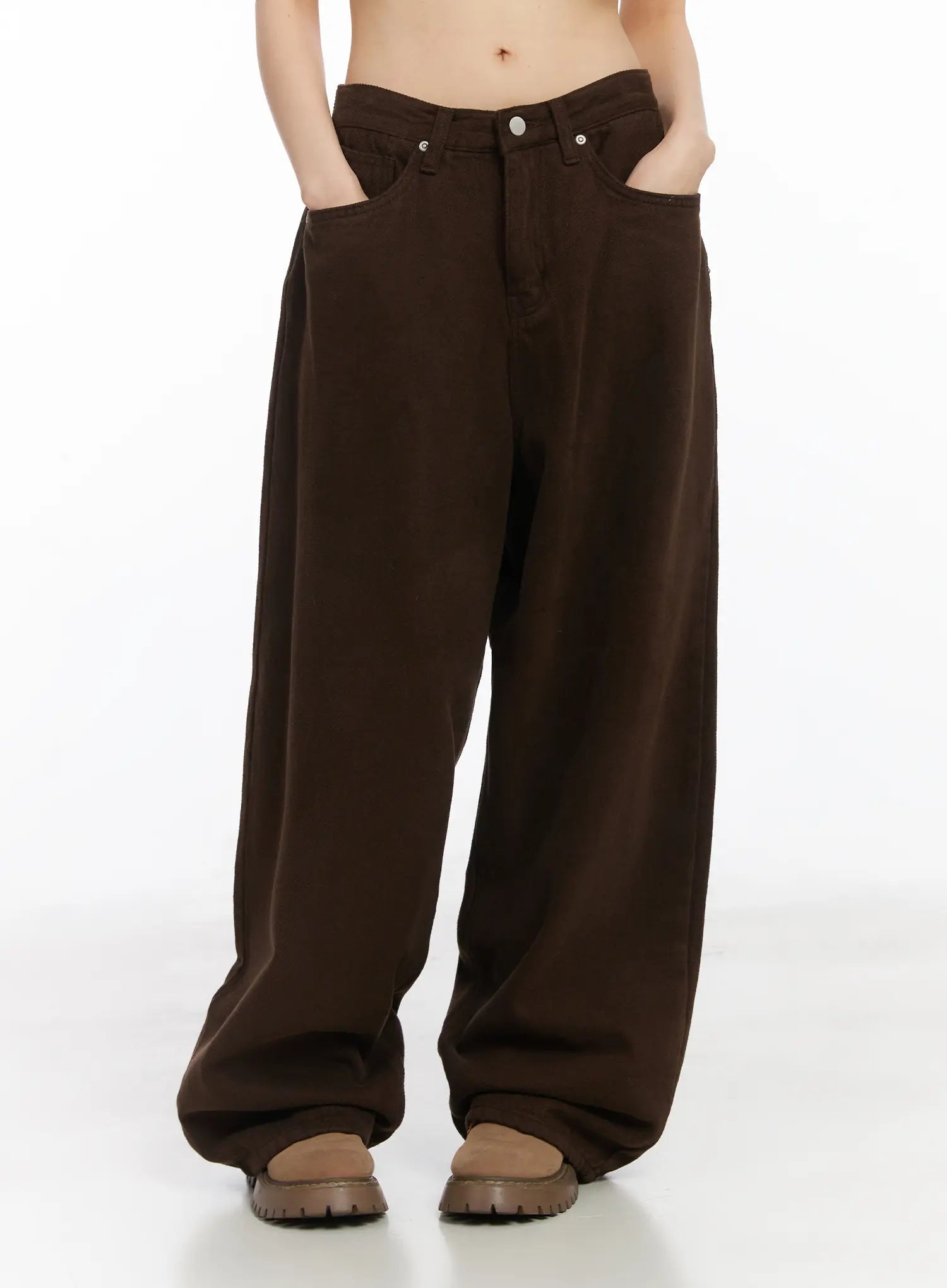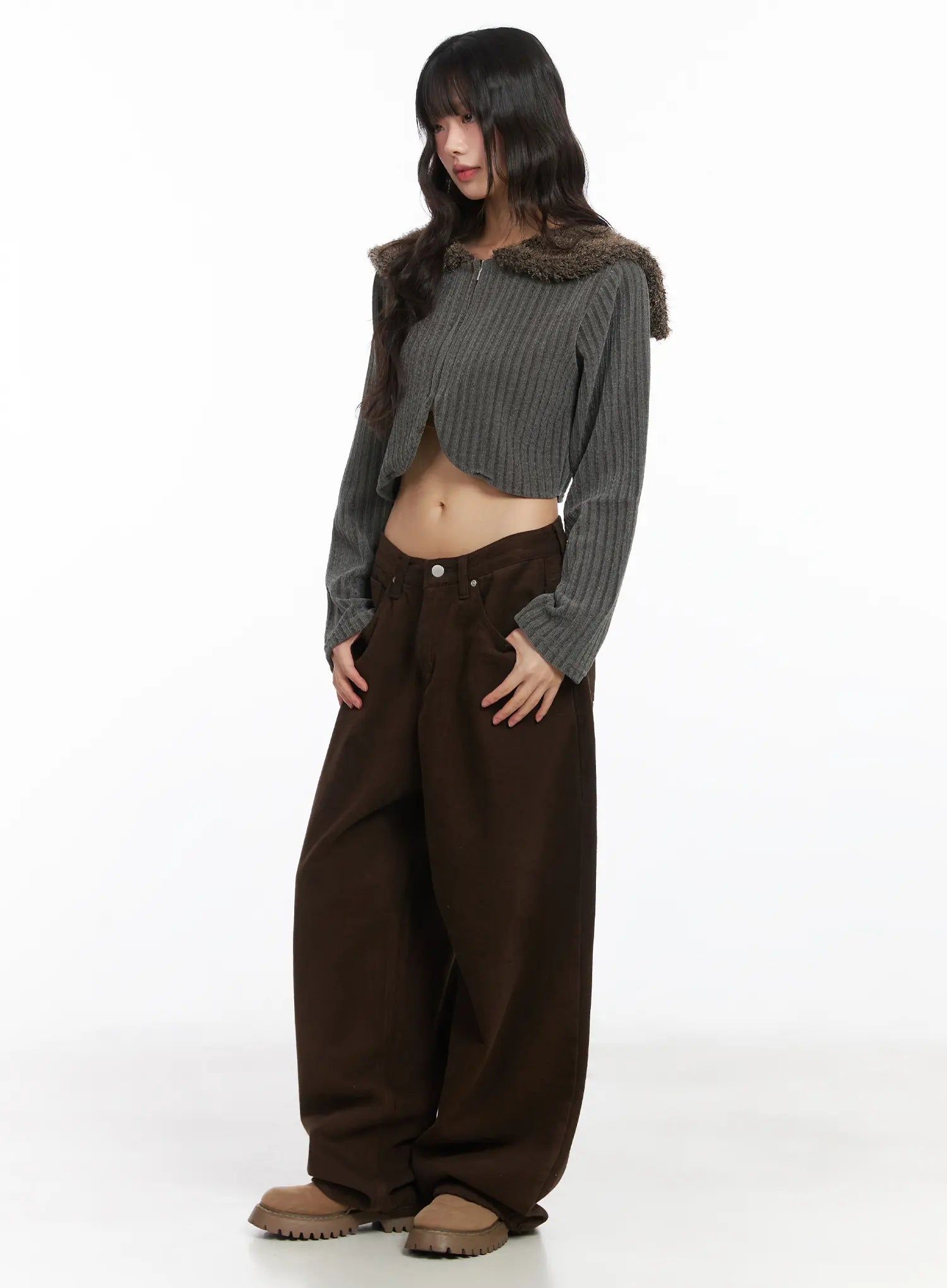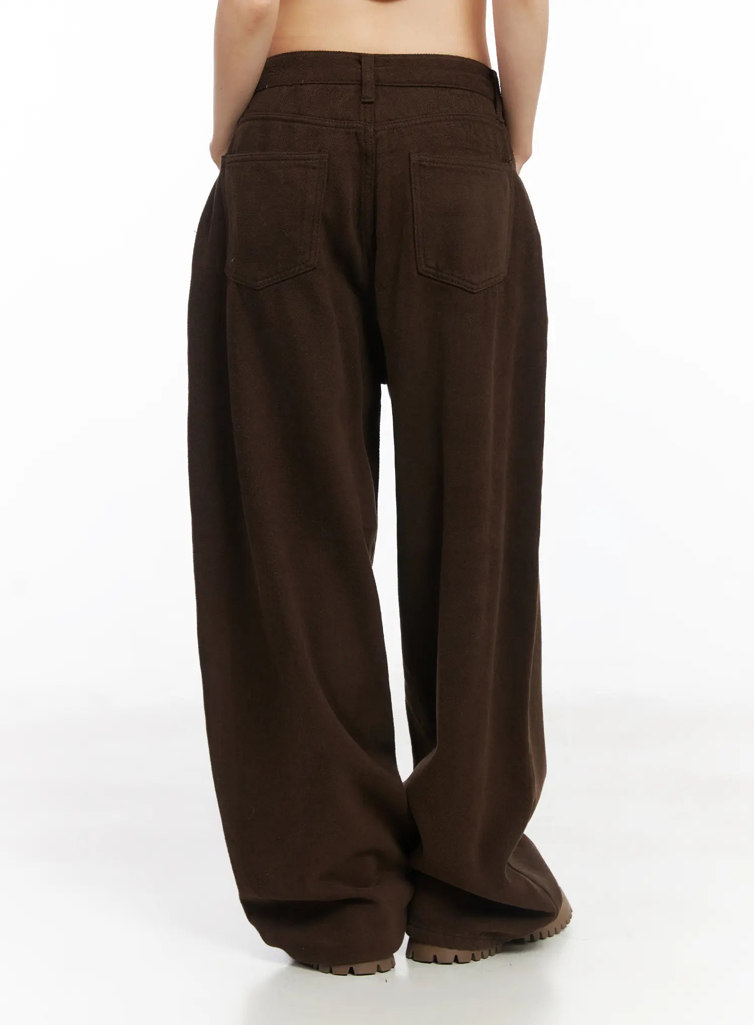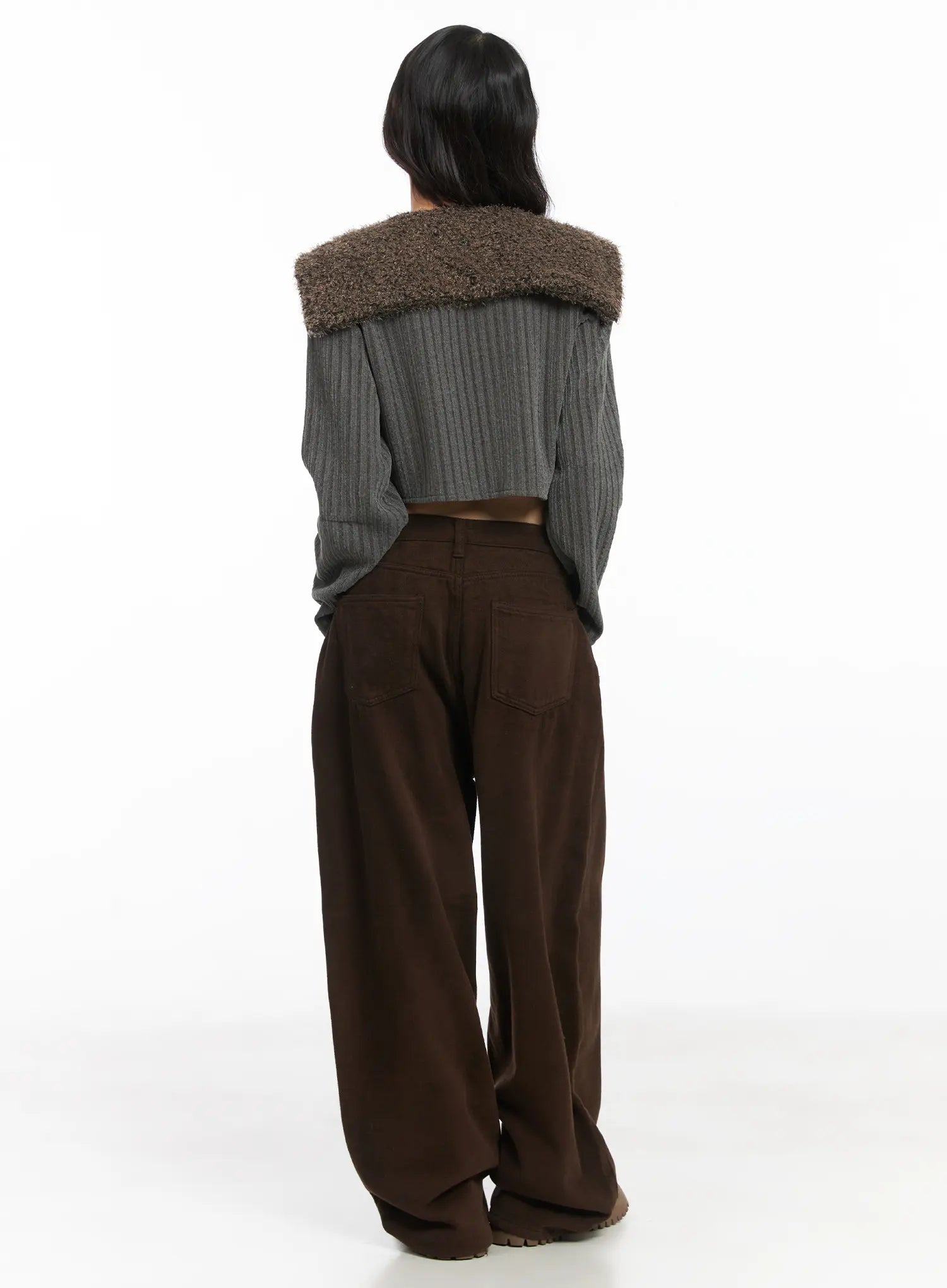 Wide Leg Fleece-Lined Cotton Pants CD531