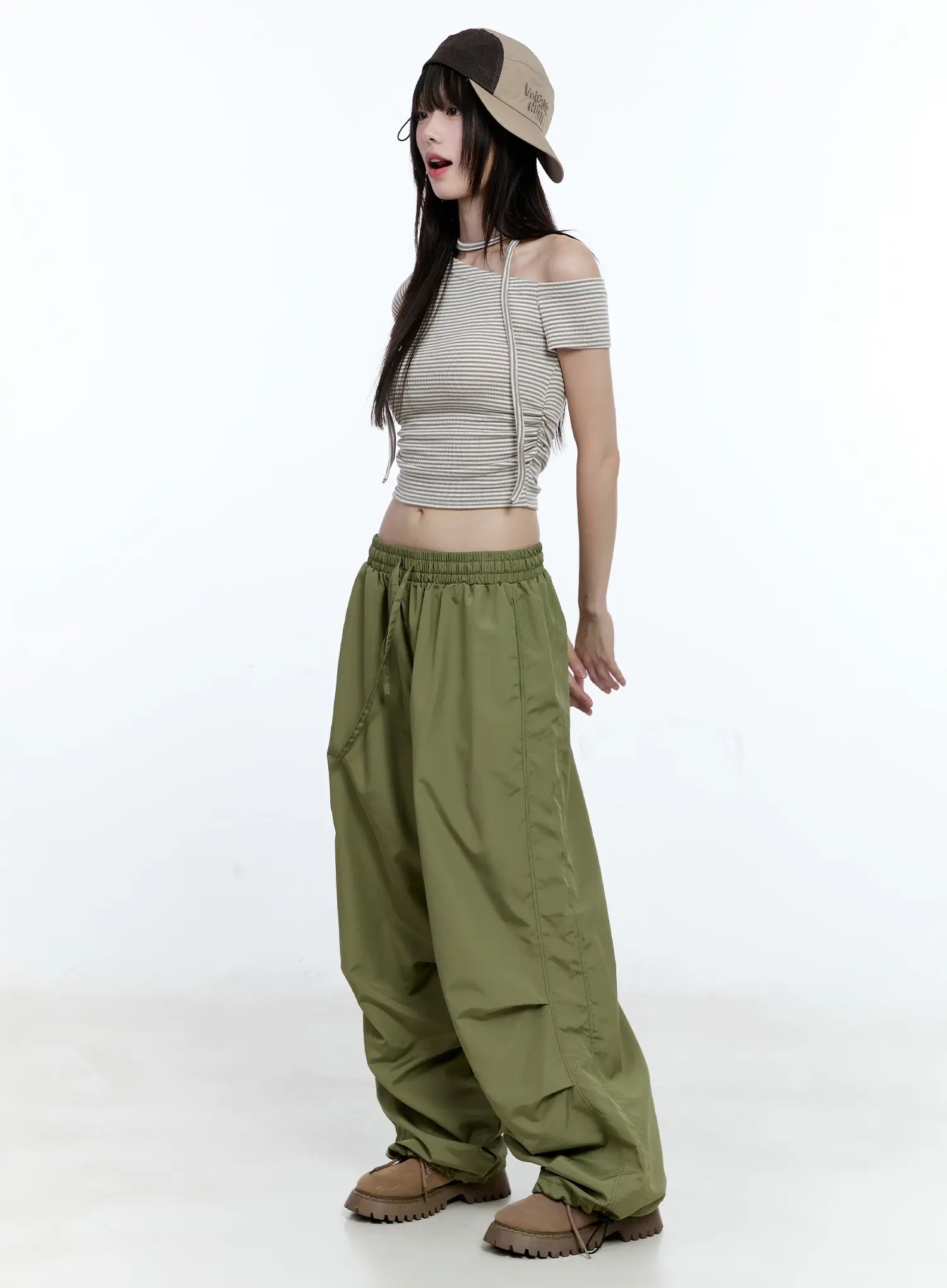 Wide-Leg Nylon Pintuck Pants CG507
